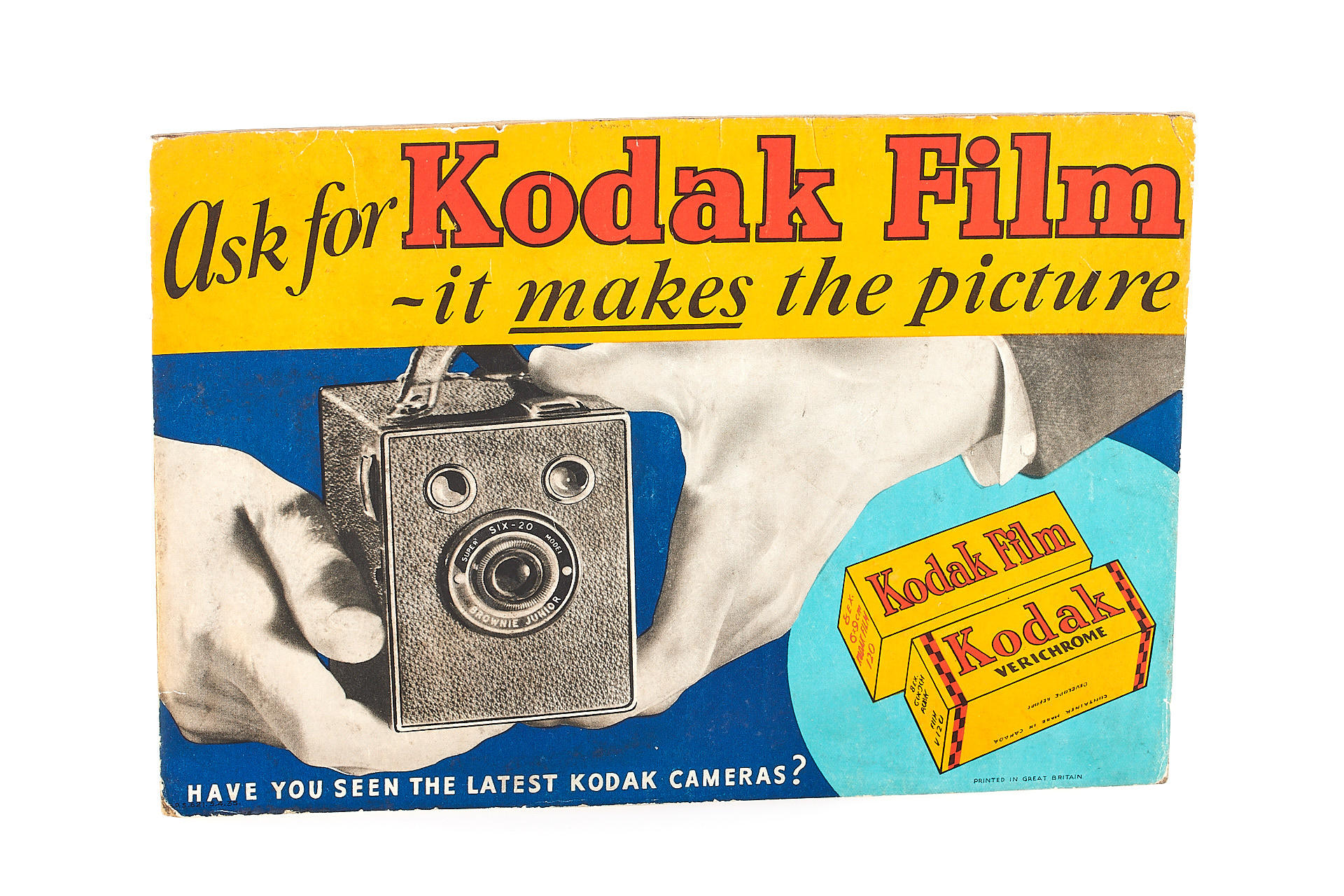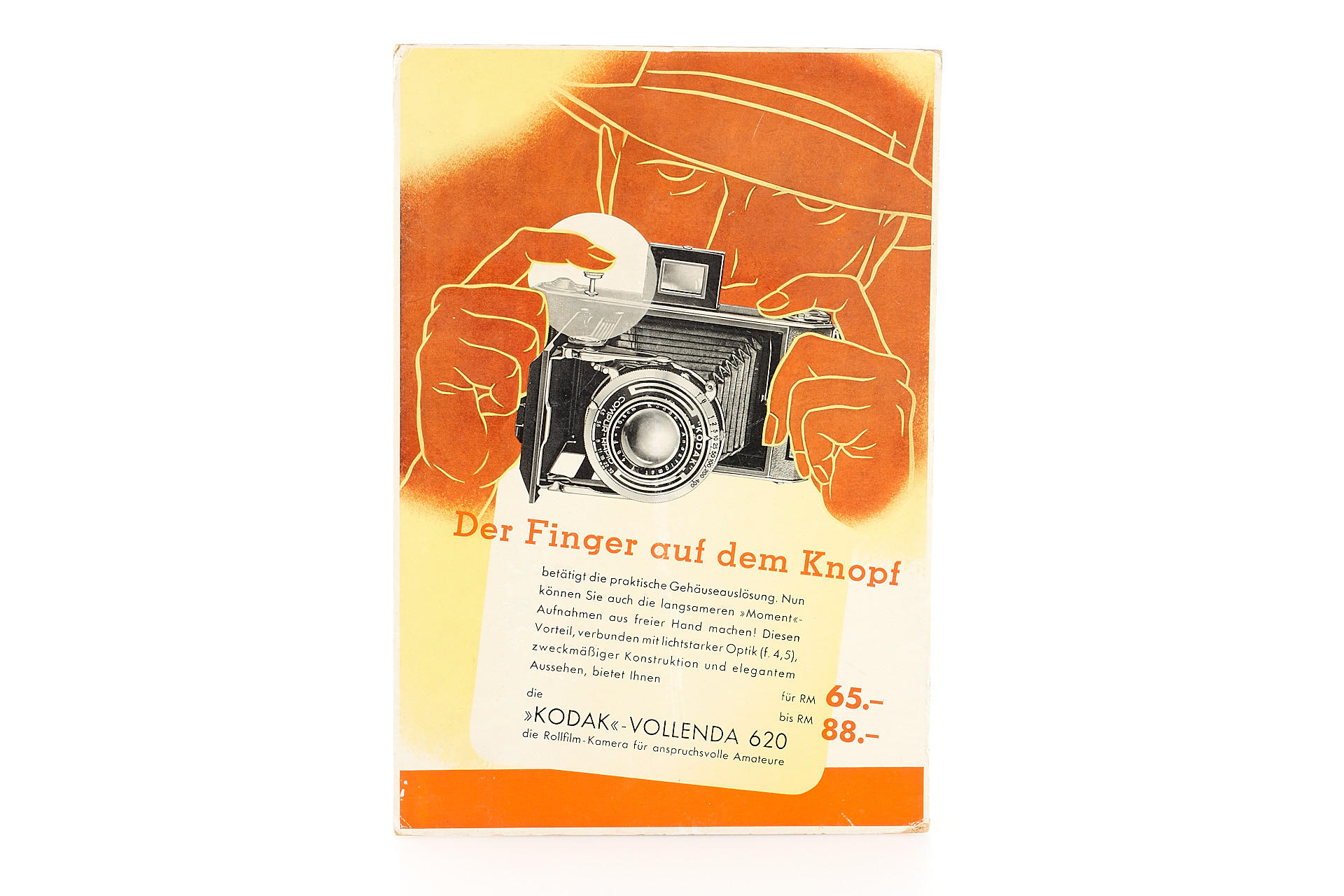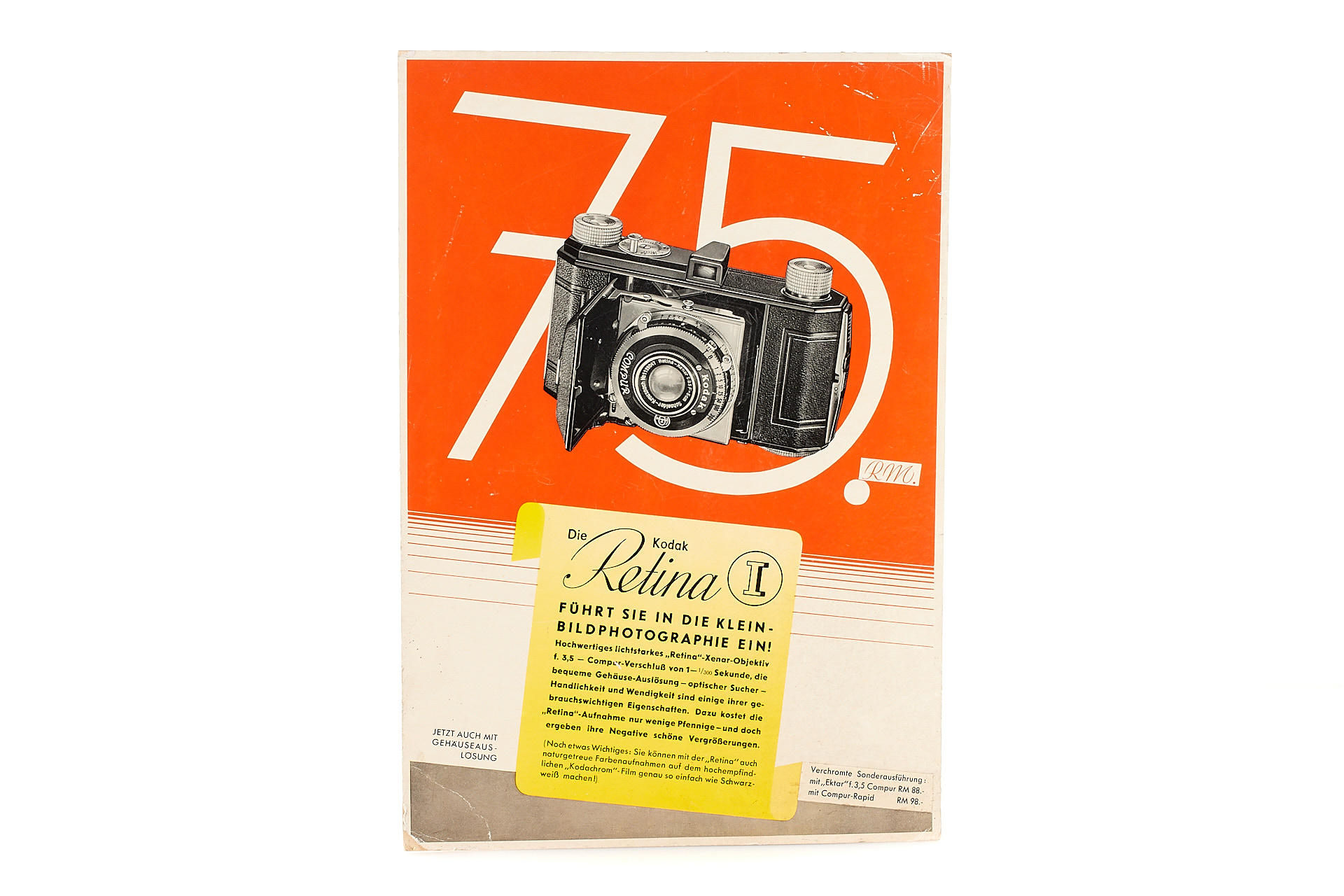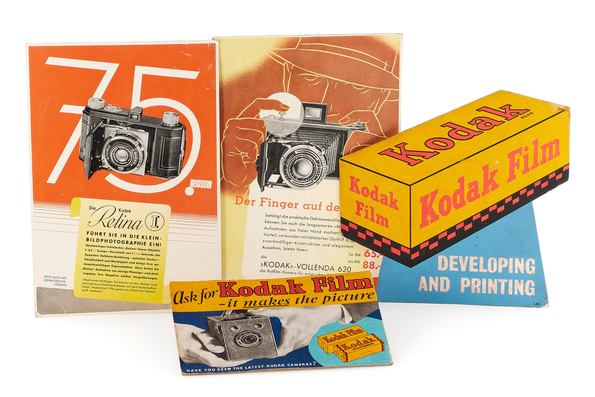 nice original Kodak advertising from around 1937, including 29 x 28cm and 18 x 25cm printed cardboards (Kodak Films), two 24 x 35cm printed cardboard for Retina I and Vollenda 620, all in very good condition