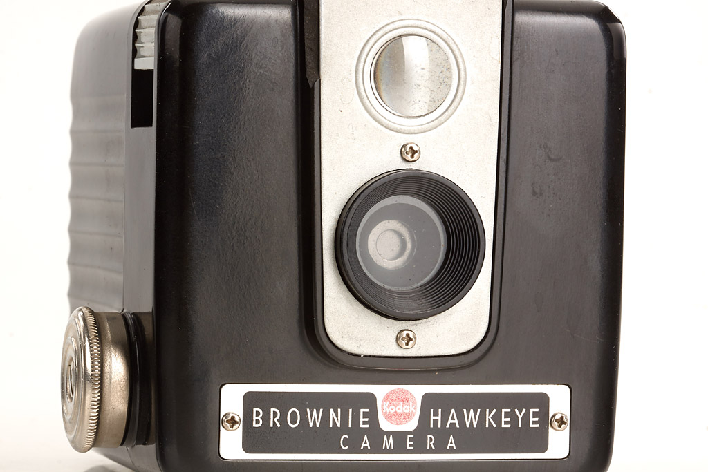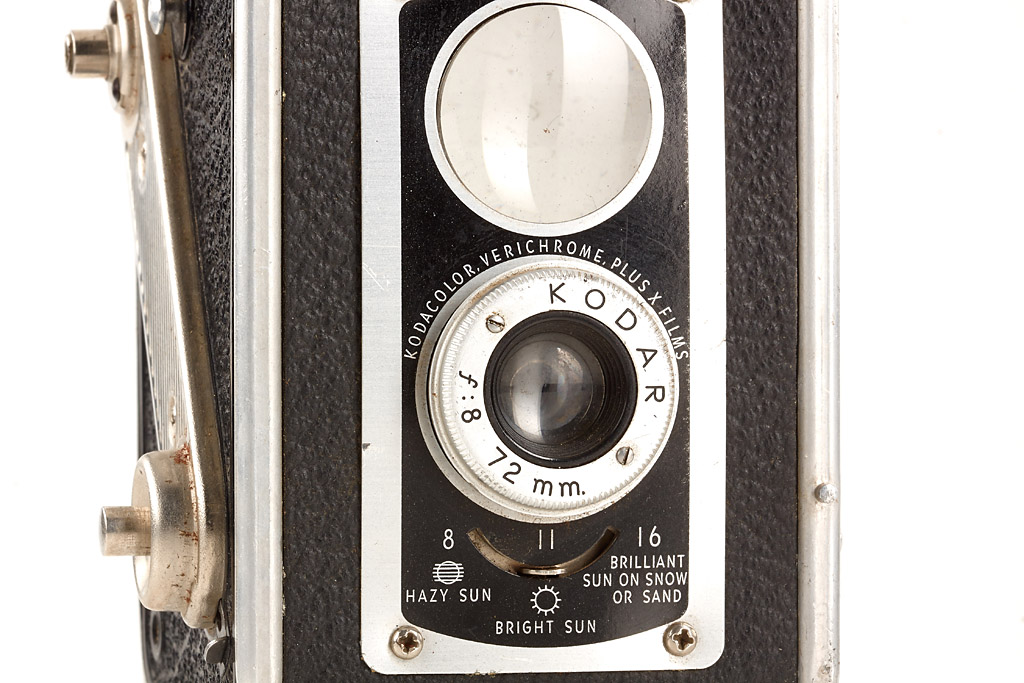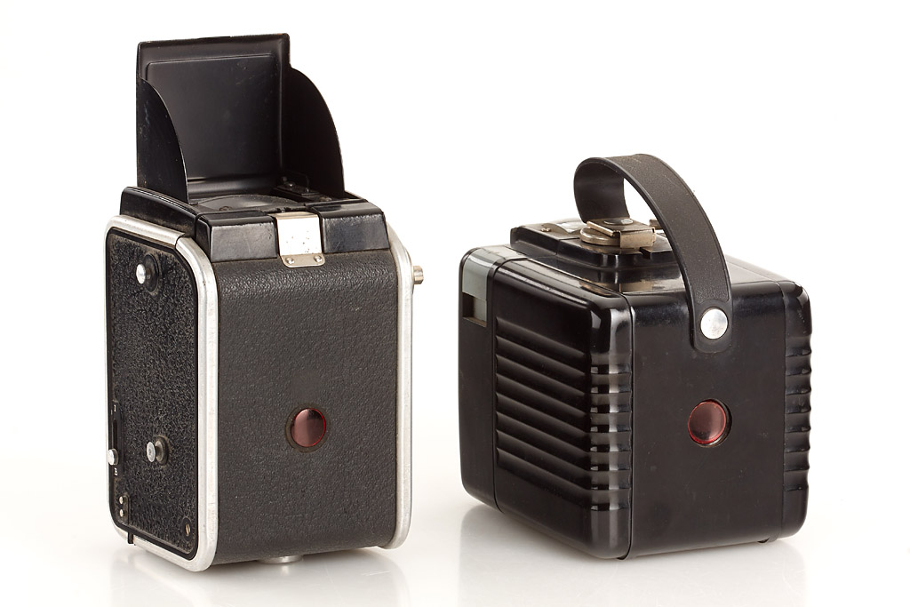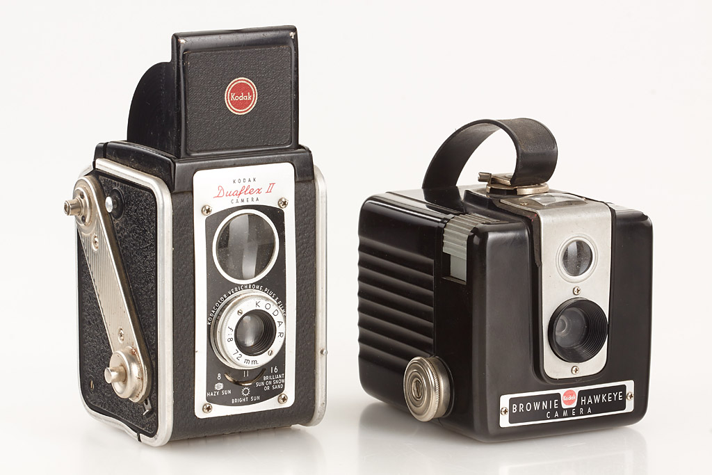 very nice coloured French Kodak cardboard sign, 'Appareils Kodak et Brownie SIMPLES ET SÙRS!.., 39x50.5cm, including Kodak Duaflex II and Brownie Hawkeye