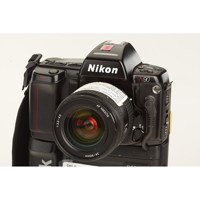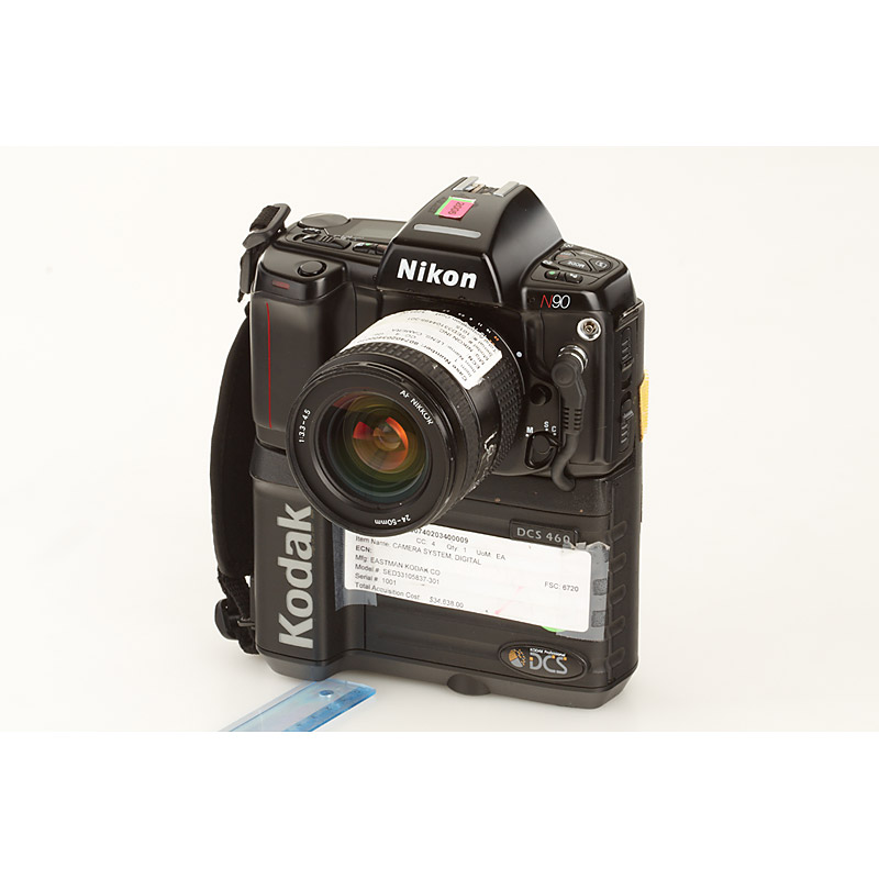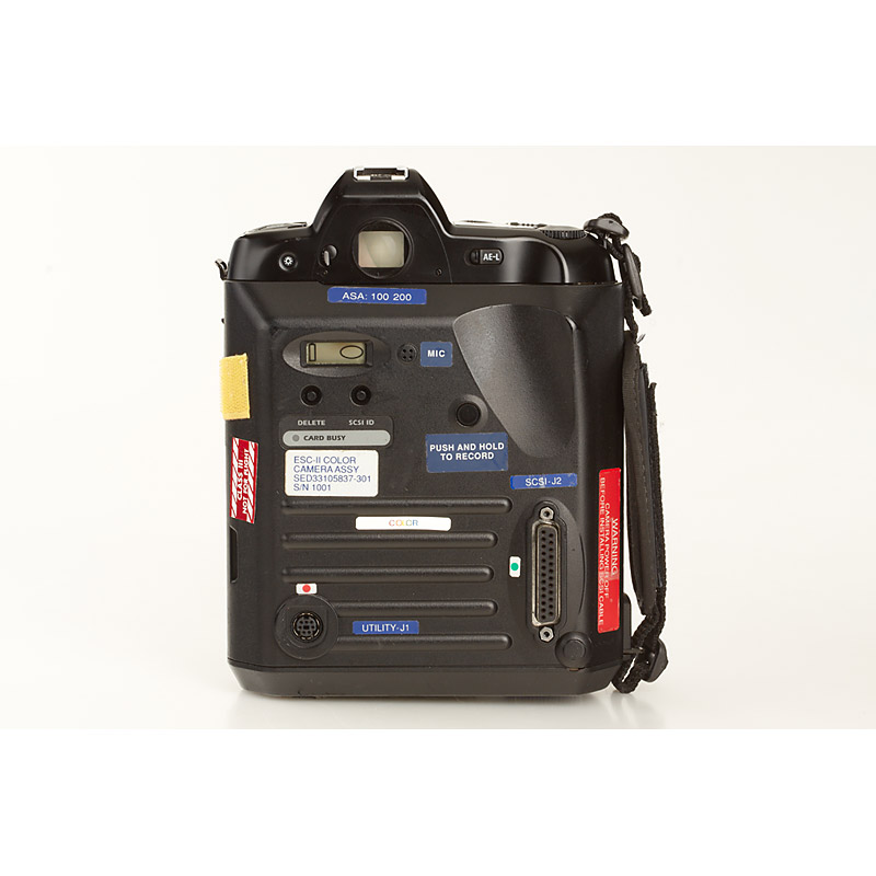 Kodak digital camera outfit used by NASA, body with NASA sticker written: ESC-II COLOR camera ASSY SED33105837-301 S/N 1001, with matching AF Nikkor 3.3-4.5/24-50mm S/N 1015 with NASA numbers P/N SED33104495-301 and S/N 1015, inventory sticker, cap