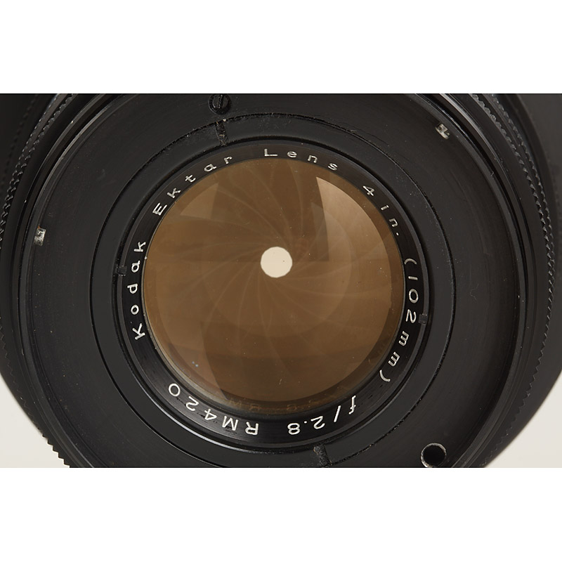 (1) Kodak Ektar 2.8/4' (102mm) no.RM420 with hood, (2) Kodak Ektar 4.5/2 1/2' (63,80mm) no.RM189 (lens head with iris diaphragm) (2)