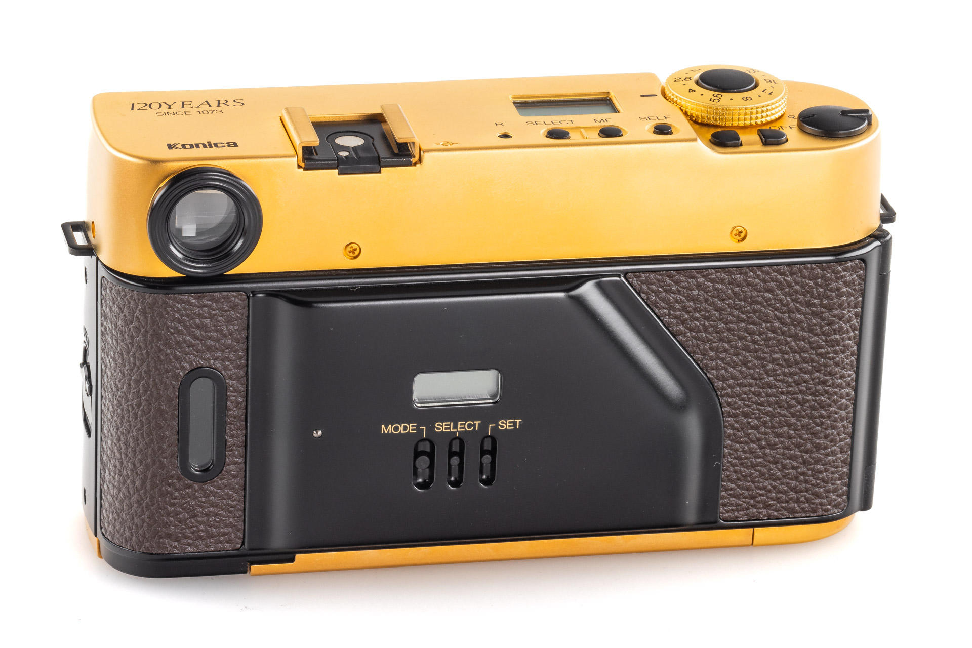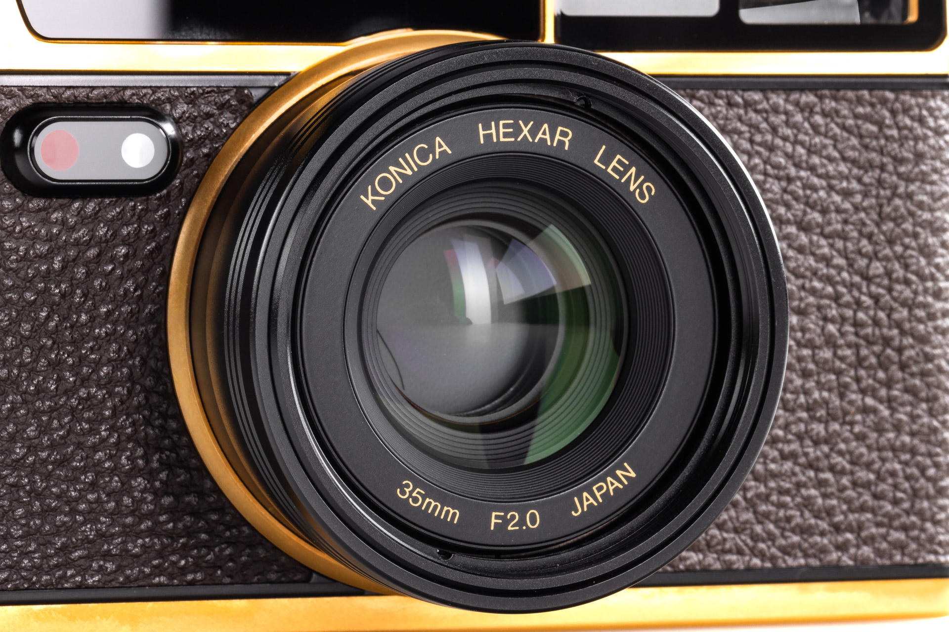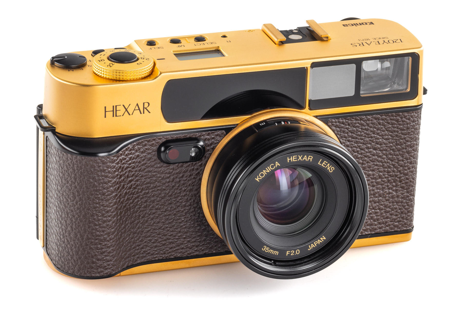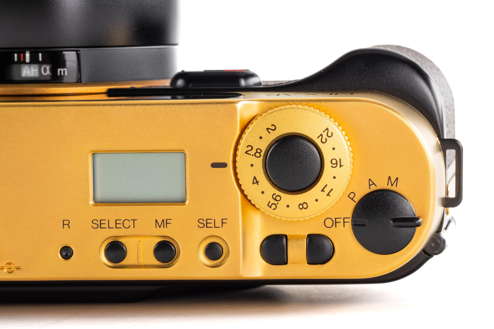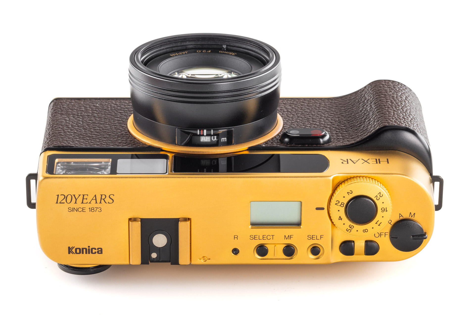 Beautiful and sought-after limited edition (only 500 made) in mint condition, 24K gold plating, Hexar 2/35mm, cap, strap, soft pouch, wooden presentation box, instructions, quality certificate and matching maker's box