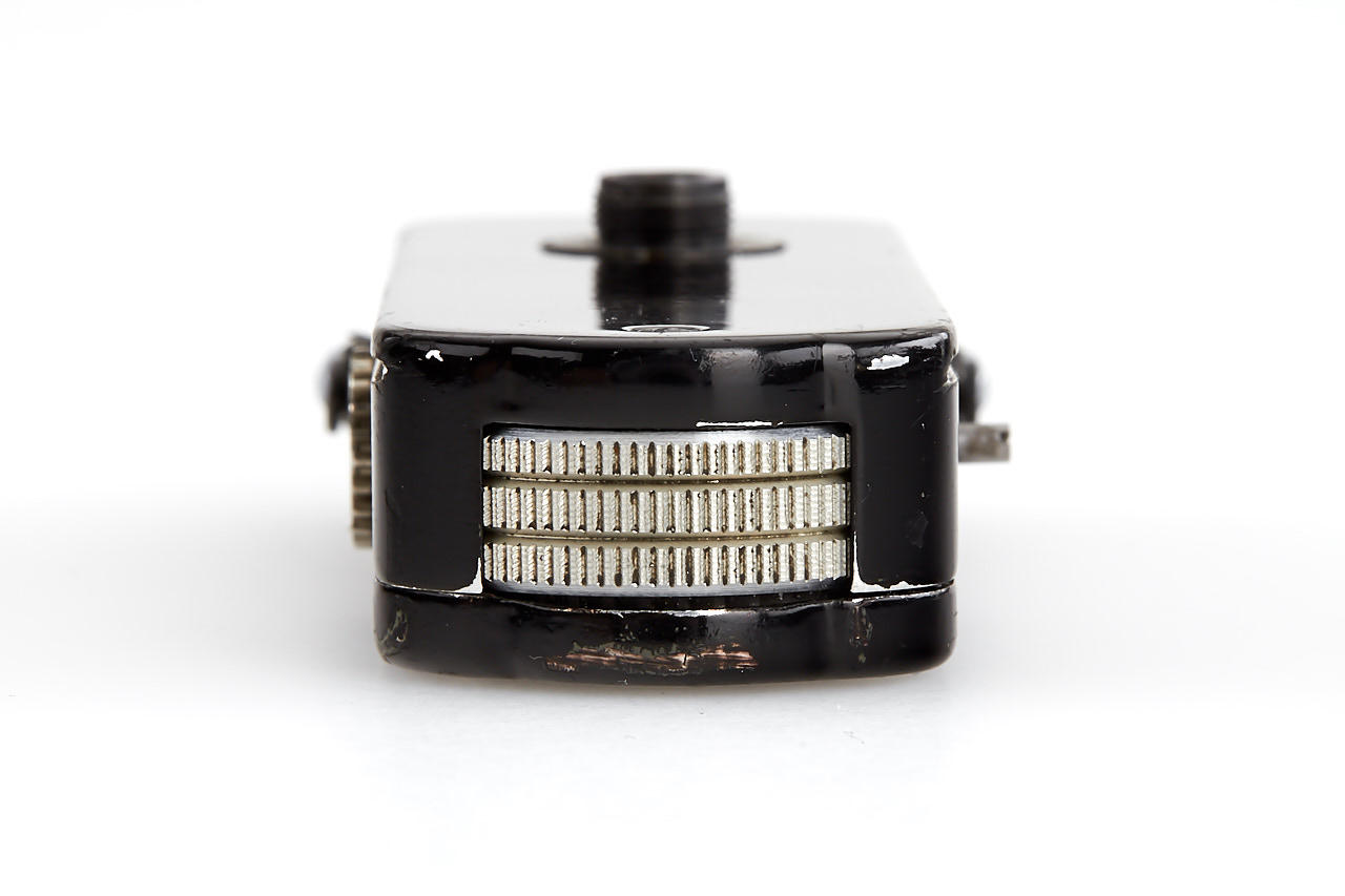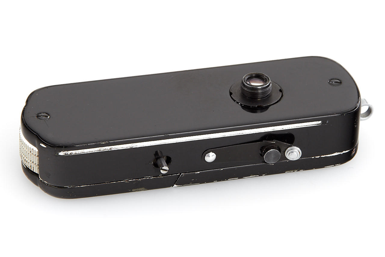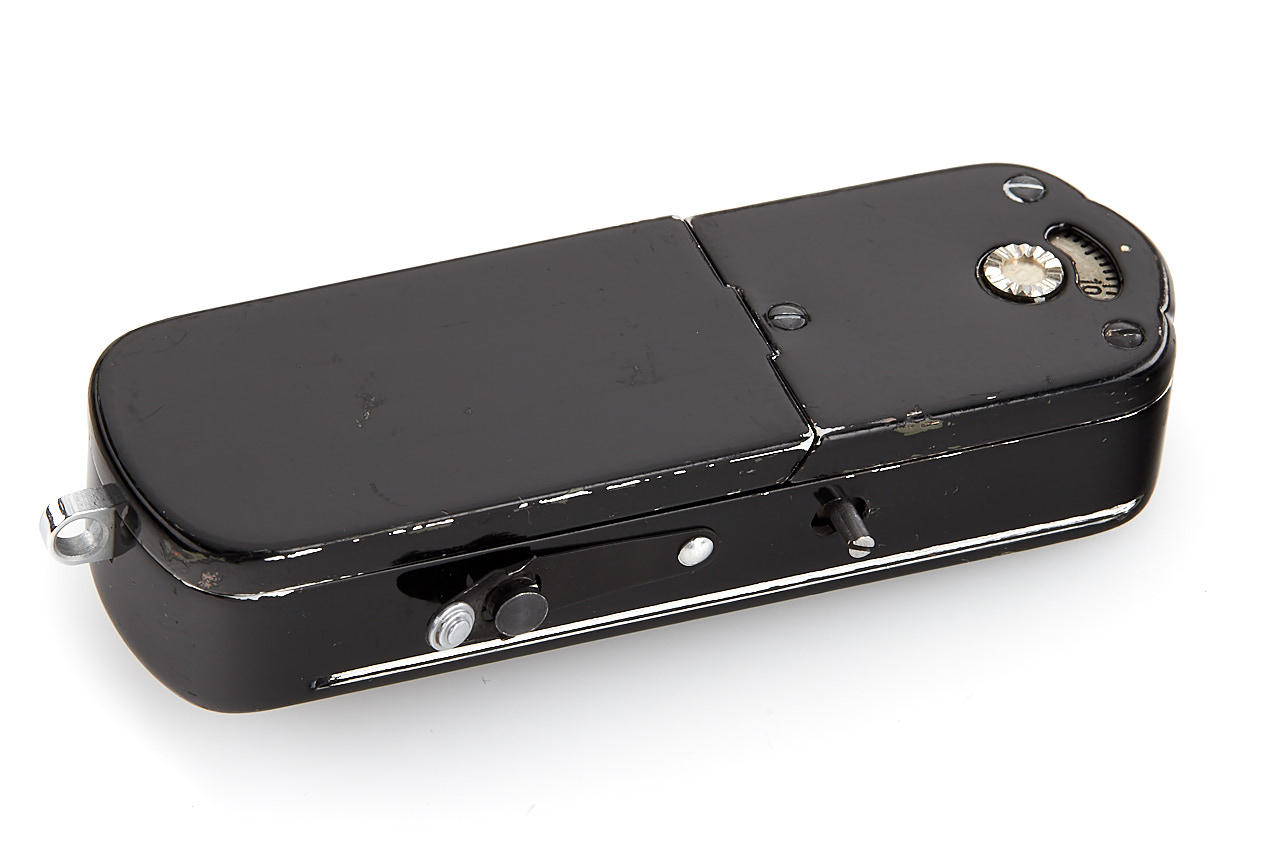 Secret Service camera made for the KGB in the 1960s, this camera uses 9.5mm Minox film in special cassettes, with clockwork motor, the shutter and film transport are very quiet, the size is almost identical to a Riga Minox though the design is totally different, very good working condition