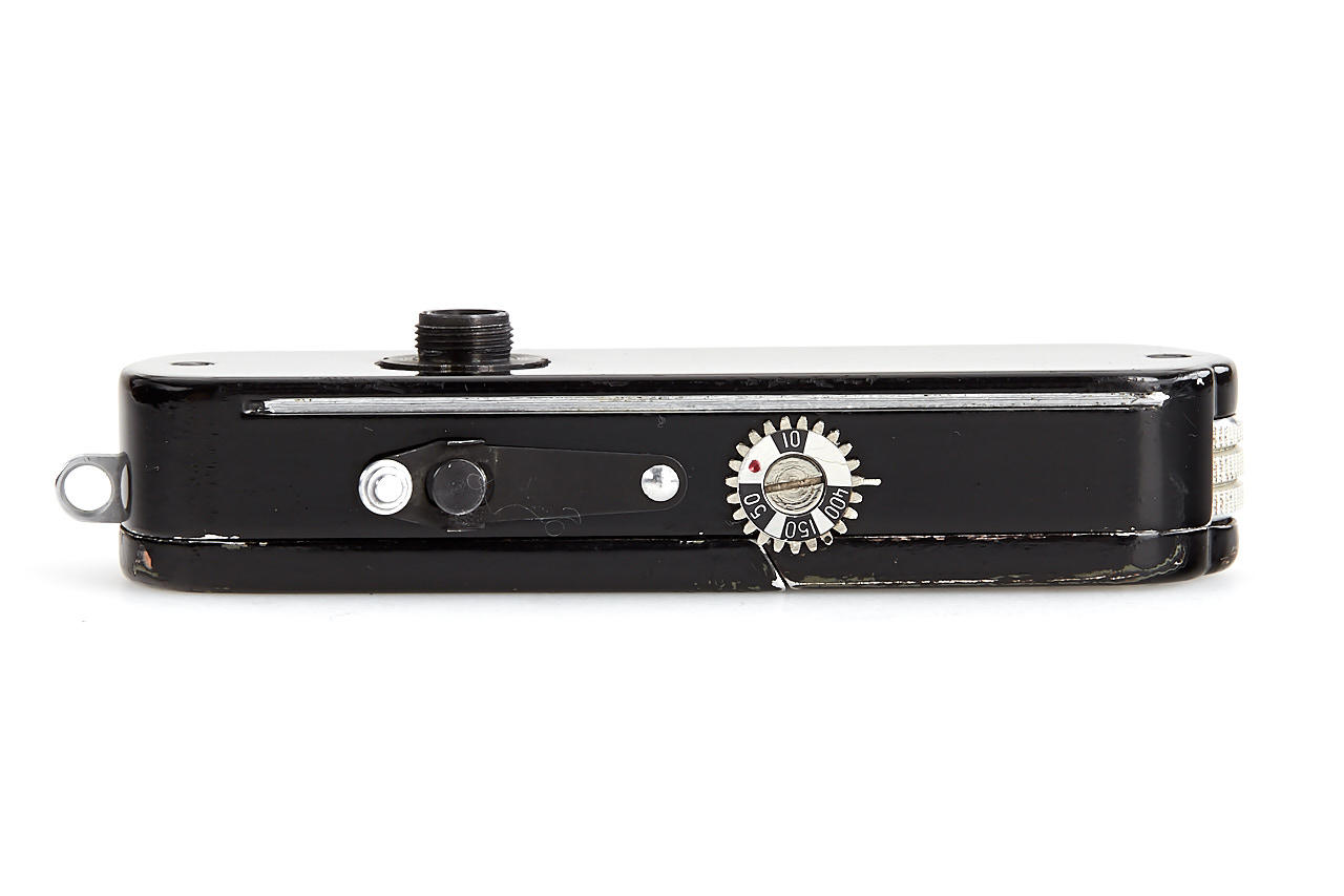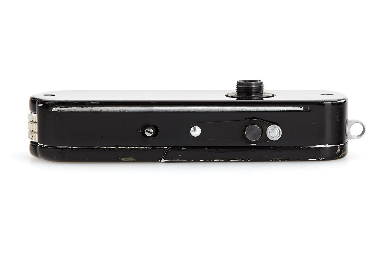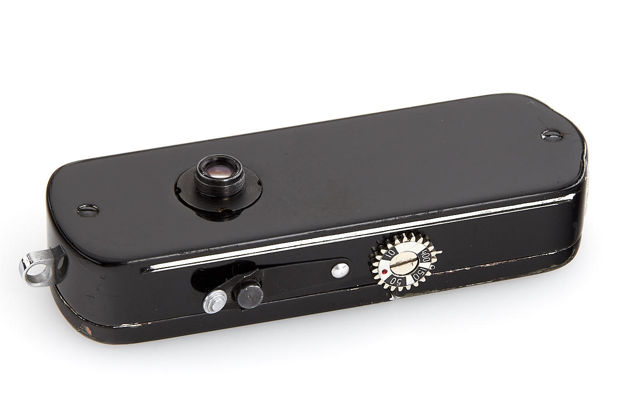 Secret Service camera made for the KGB in the 1960s, this camera uses 9.5mm Minox film in special cassettes, with clockwork motor, the shutter and film transport are very quiet, the size is almost identical to a Riga Minox though the design is totally different, very good working condition