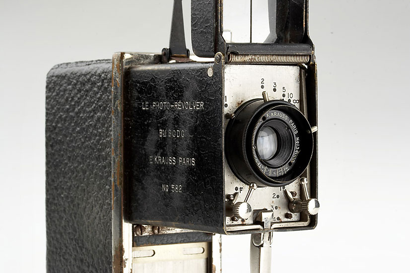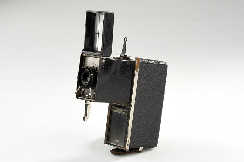 rare camera in completely original condition with magazine back for 48 exposures on plates 18x35mm, Krauss Tessar 4/40mm no.134082, with leather case