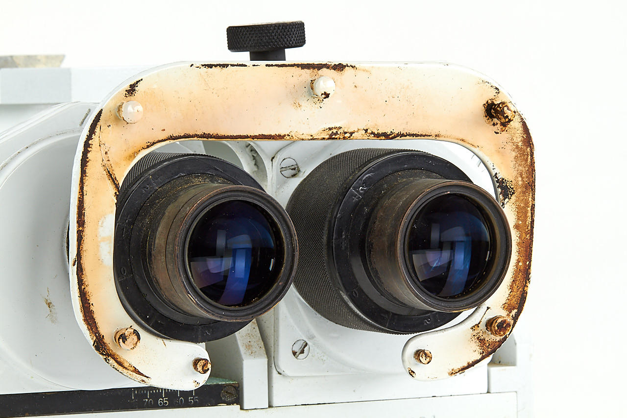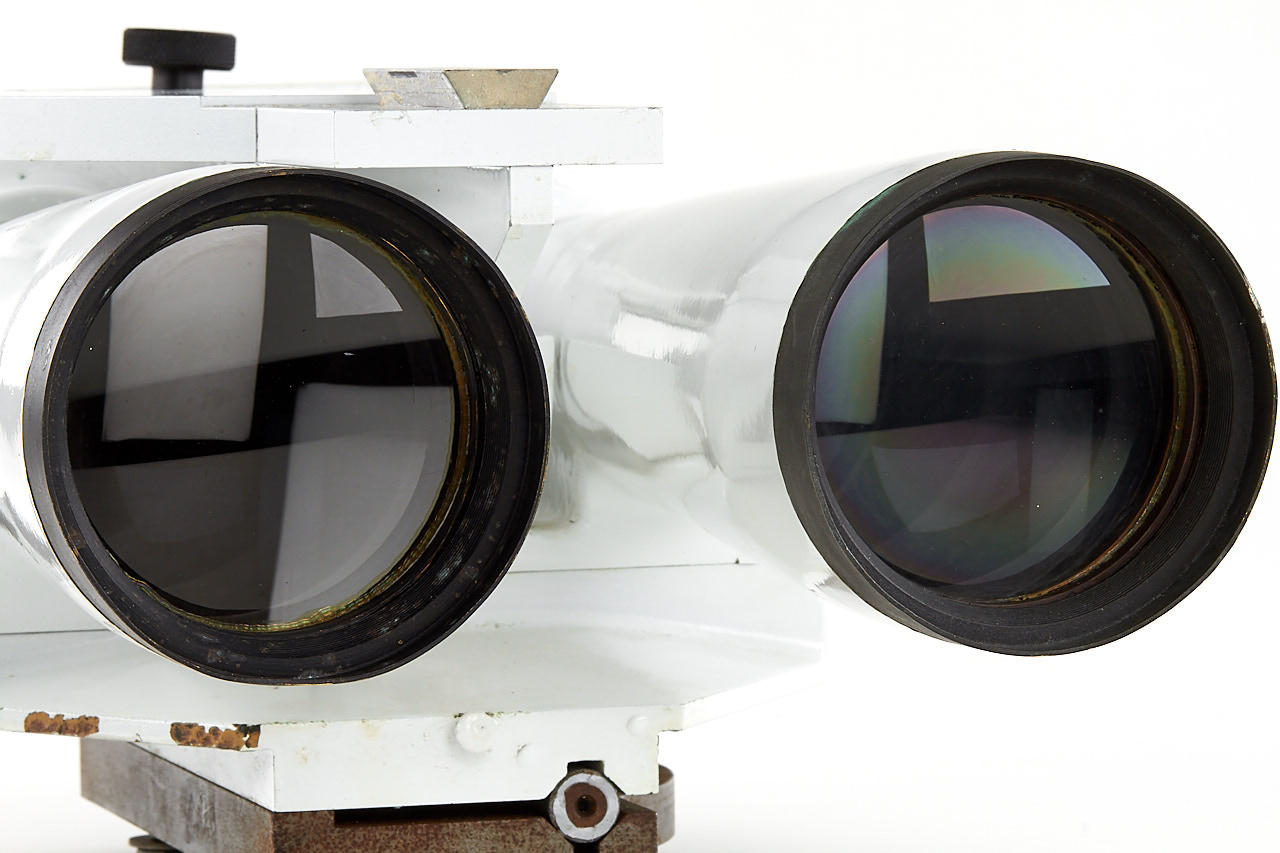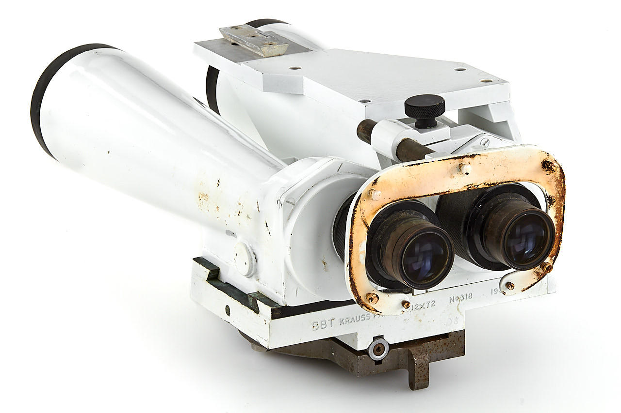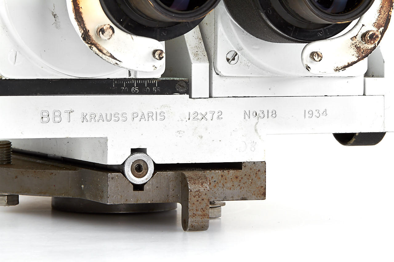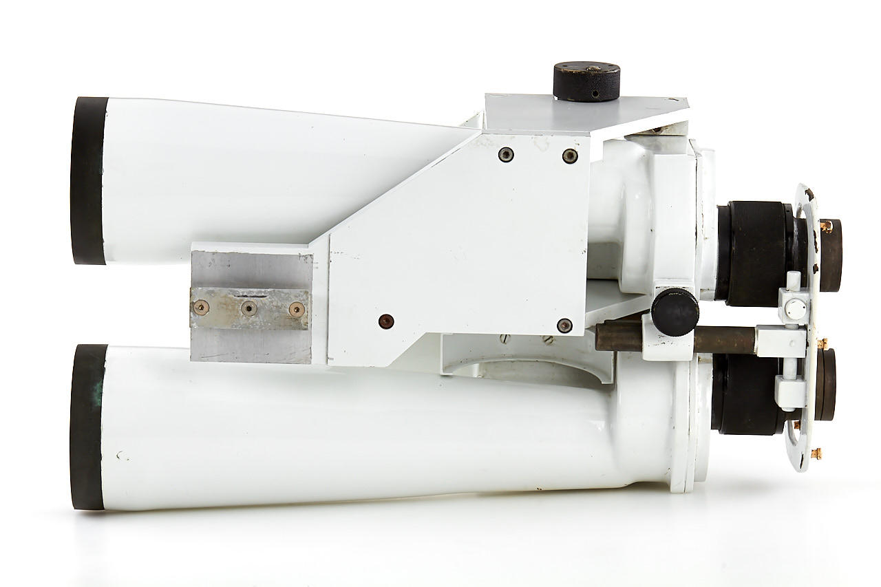 white painted heavy duty marine binoculars (to be mounted on deck), used by the French navy in WWII, adjustable eye relief, excellent condition and good optics