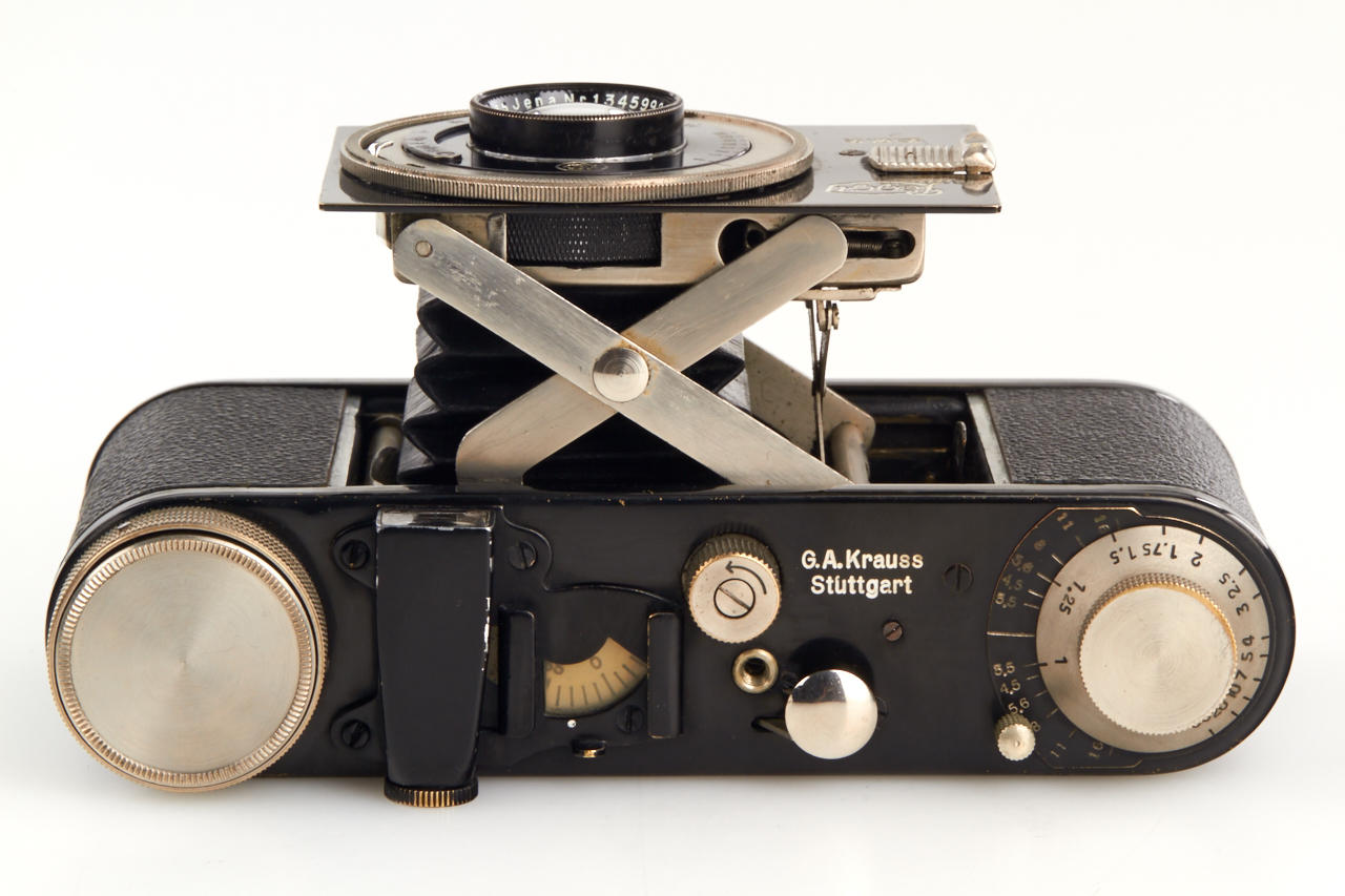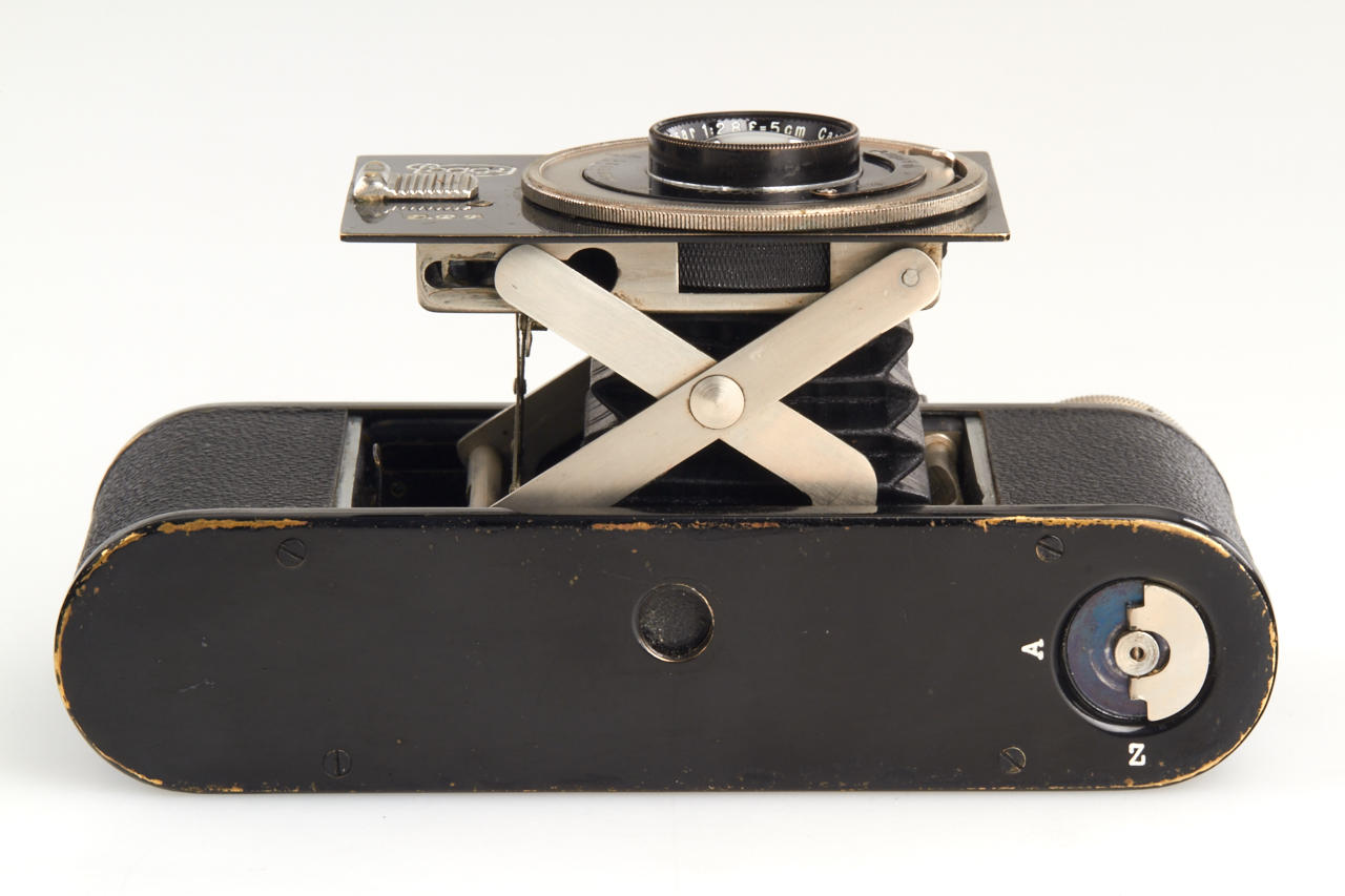 rare strut-folding 35mm camera, first model in beautiful condition, with Tessar 2.8/5cm no.1345992, one spool and lens cap