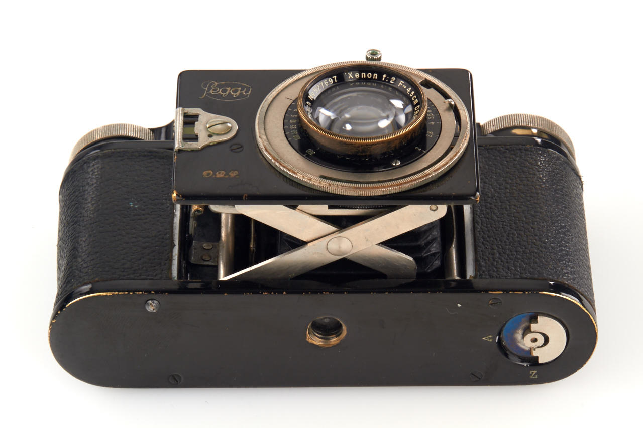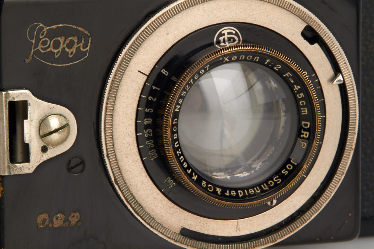 rare later model with manual shutter cocking lever, in good original condition, working shutter, with fast Schneider Xenon 2/4.5cm no.527697