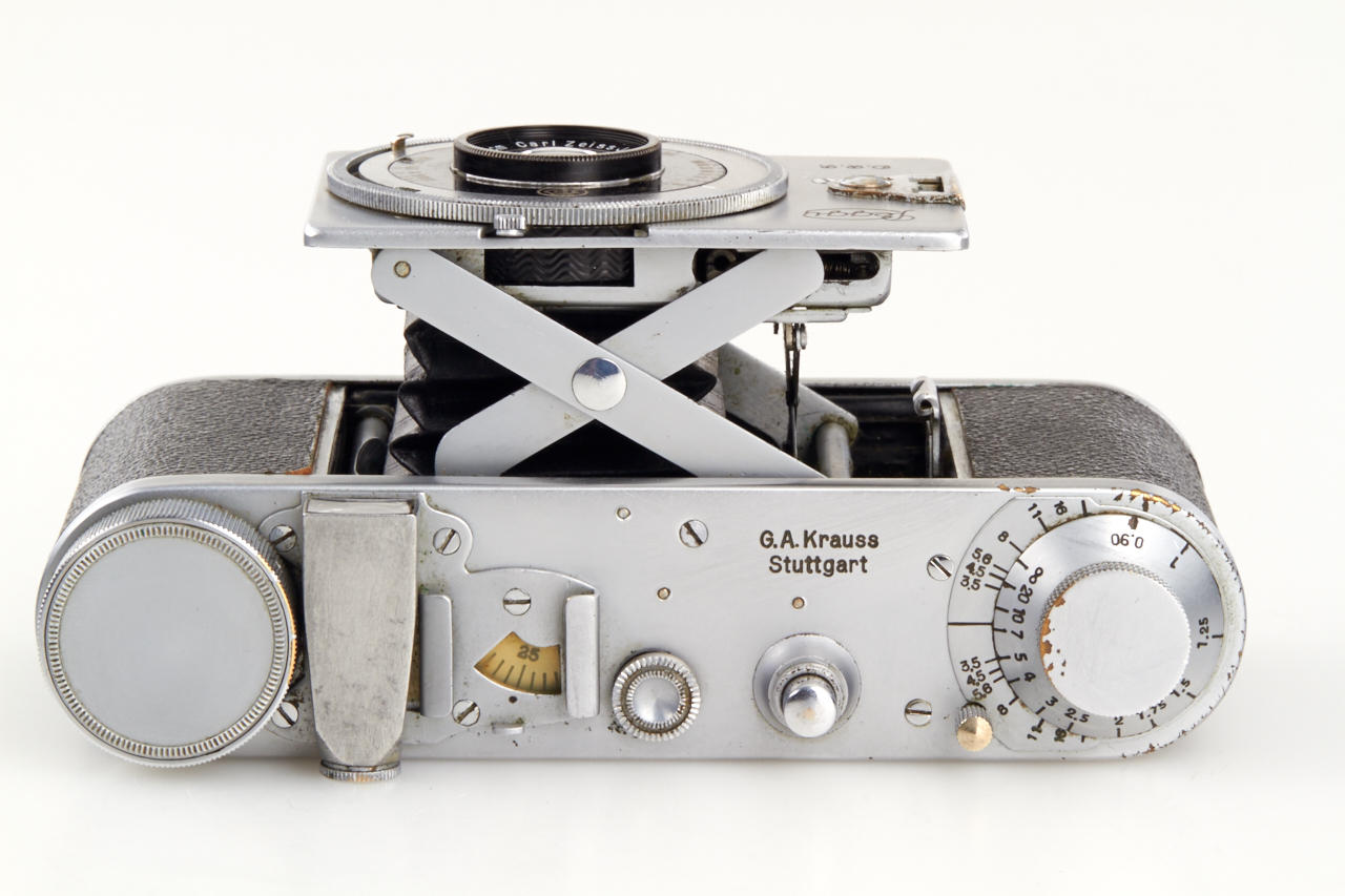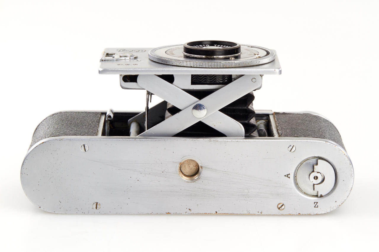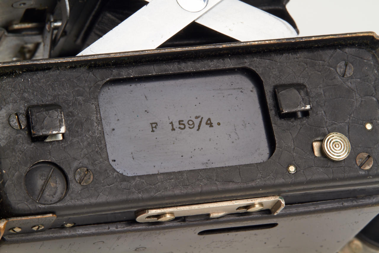 rare strut-folding camera in very good condition and perfect working order, with Tessar 3.5/5cm no.1292810, take-up spool