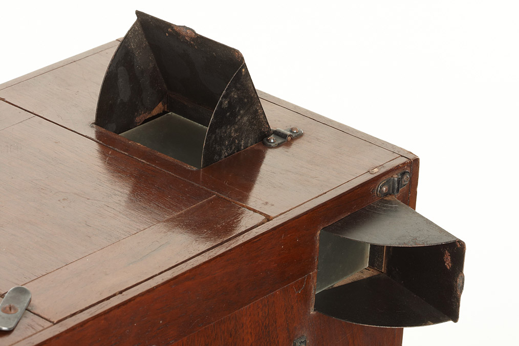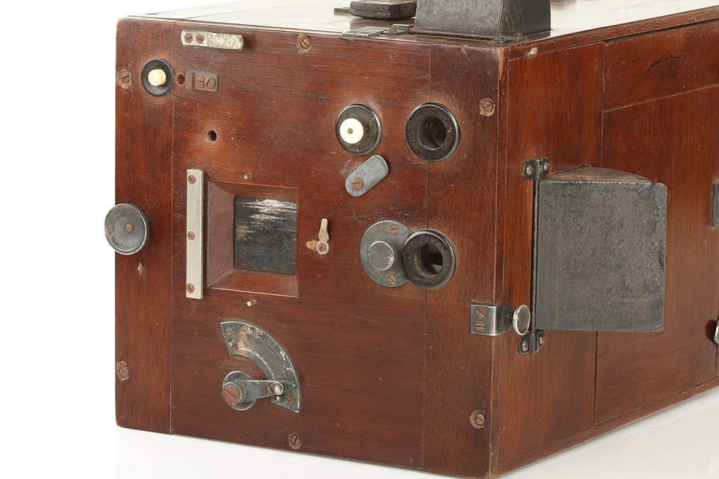 9x12cm detective camera, polished mahogany with magazine for 12 plates, unmarked and slightly different to the series model