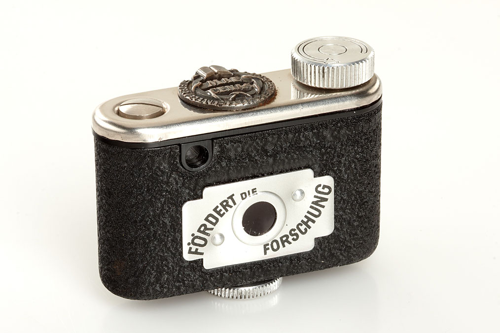 in good working order, special commemorative plaque on top marked: STIFTERVERBAND FD DEUTSCHE WISSENSCHAFT MAE CENAS, on the back a plaque marked: FÖRDERT DIE FORSCHUNG, a rare miniature with case