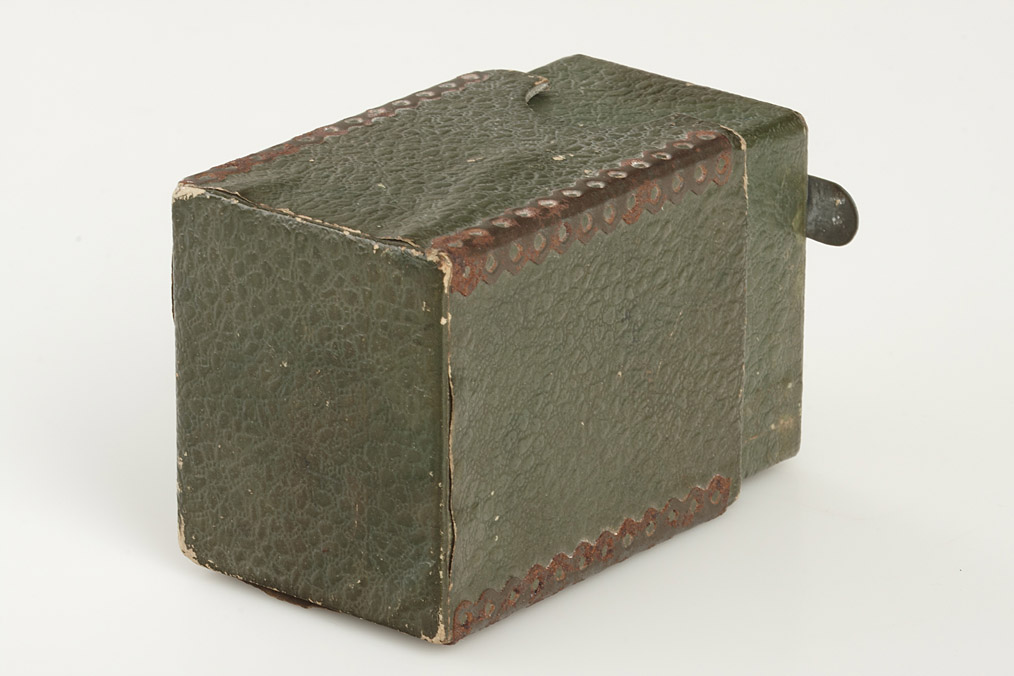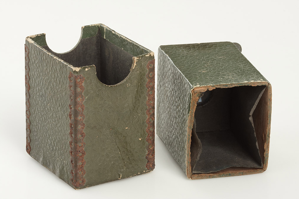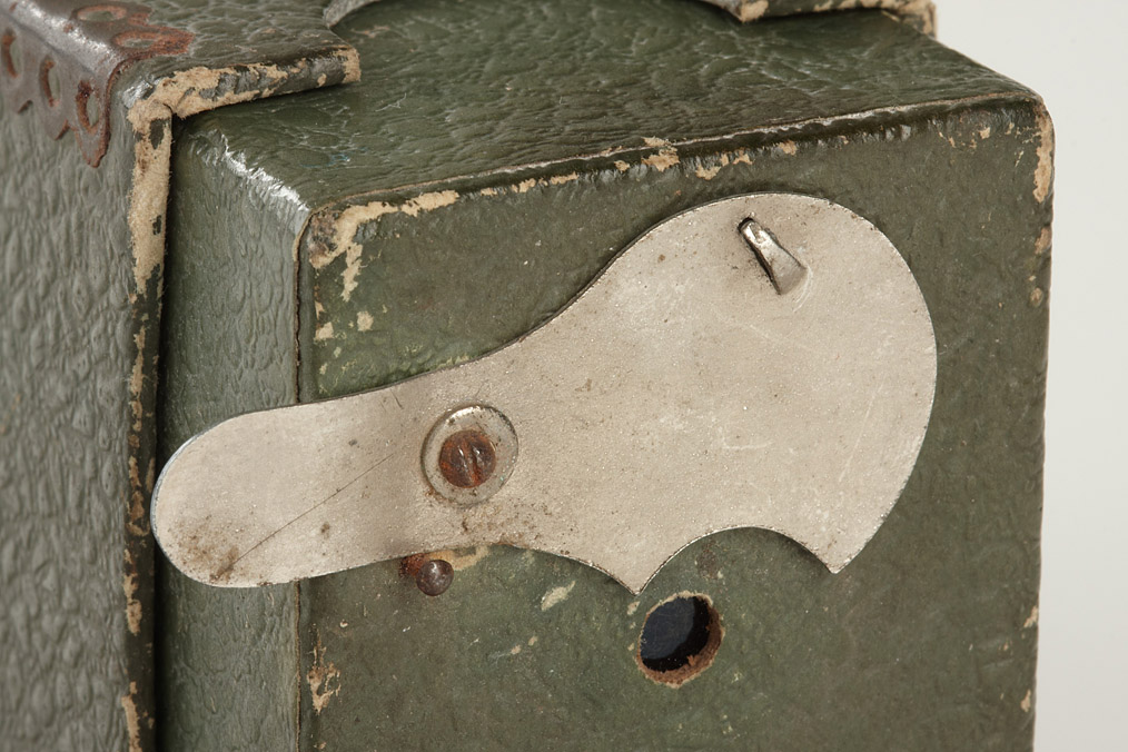 very rare simple Italian olive-green cardboard box camera for 4x5cm exposures on sheet film