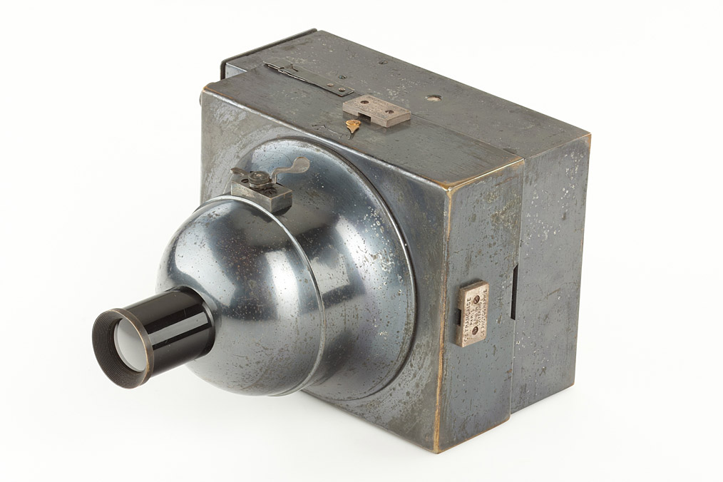 all-metal camera in fine original condition with proper lens, very rare with matching magazine back, original black leather case