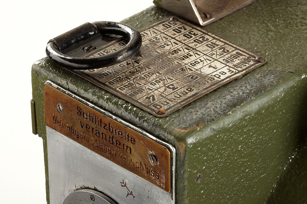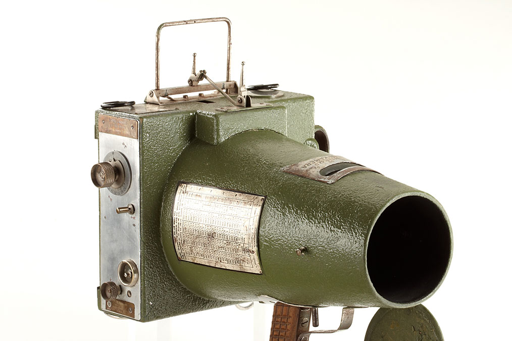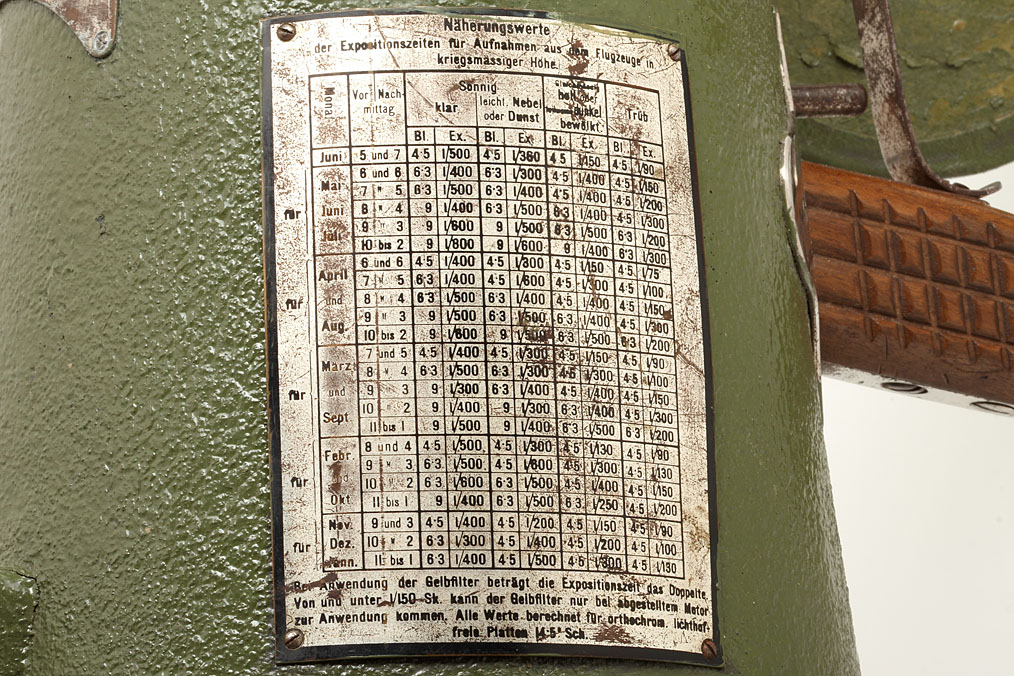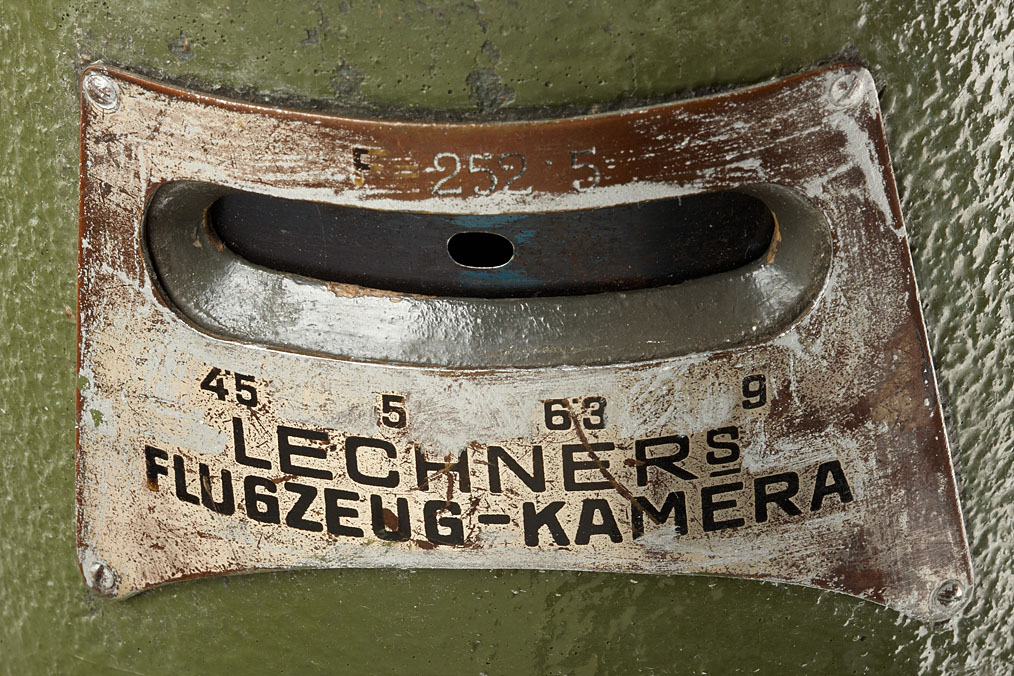 12x18cm, painted wood body (paint not original), focal-plane shutter from 2-50/sec, pistol grip with trigger shutter and large metal frame finder, metal-plate engraved: LECHNERS FLUGZEUG-KAMERA, lens is missing, in maker's case with three film plate magazines, unknown and very early aerial camera produced by Lechner, Vienna