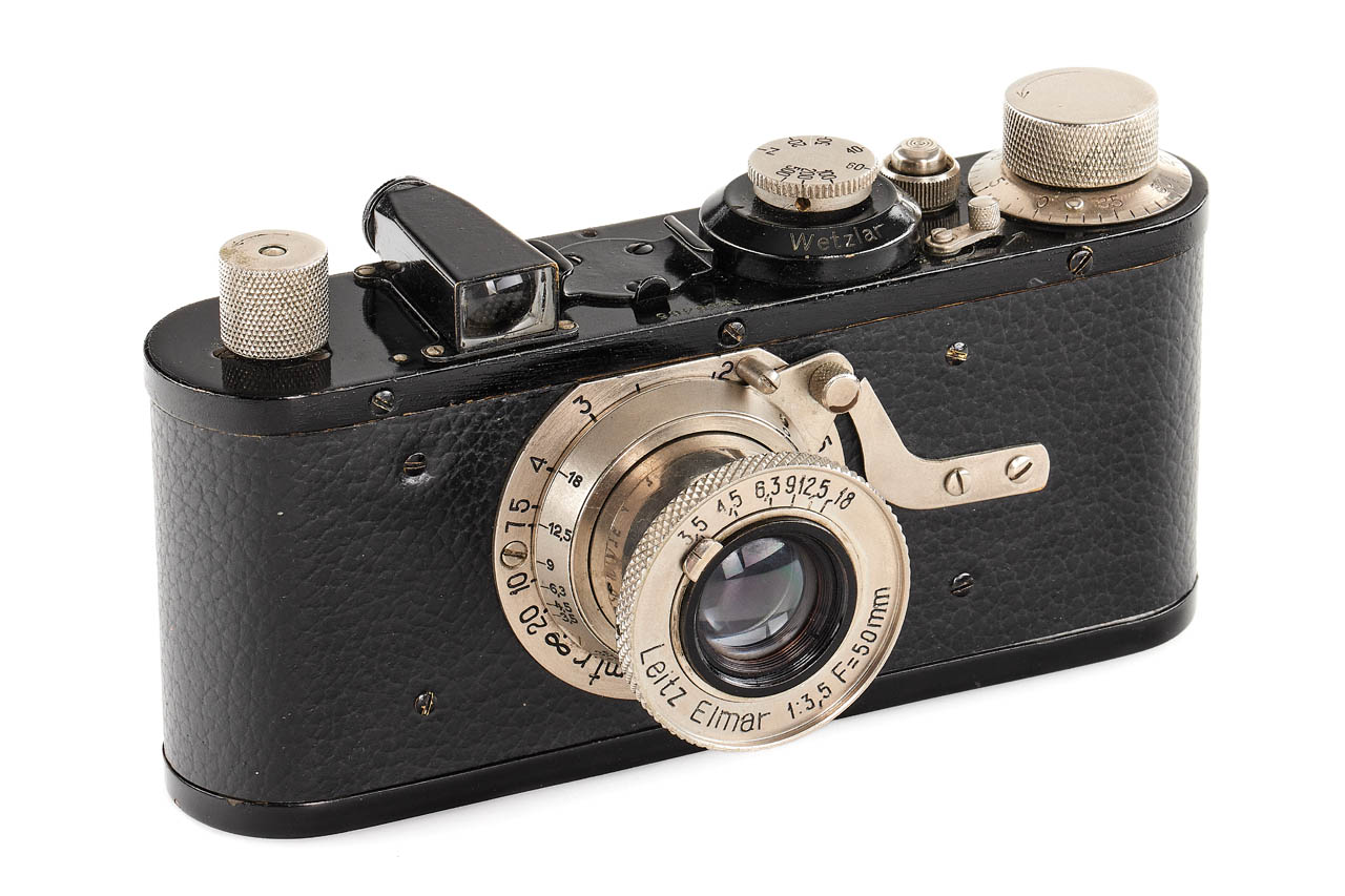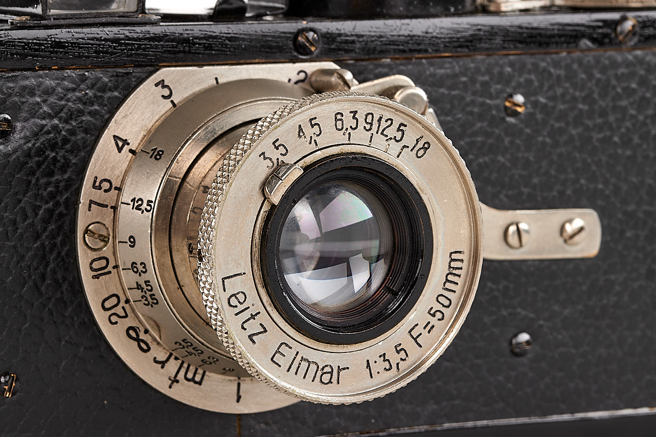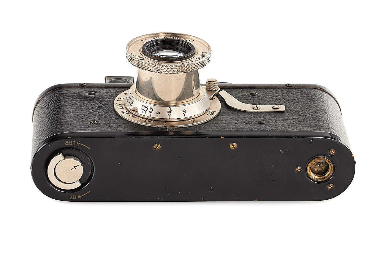 Very ingenious Soviet copy of a never-produced Leica I Mod. A Elmar for left-handed, most probably based on a soviet camera, in near-mint condition and working order, inverted focusing and winding, a similar chrome version is shown in Jean-Loup Princelle 'The Authentic Guide to Russian and Soviet Cameras' p.101.