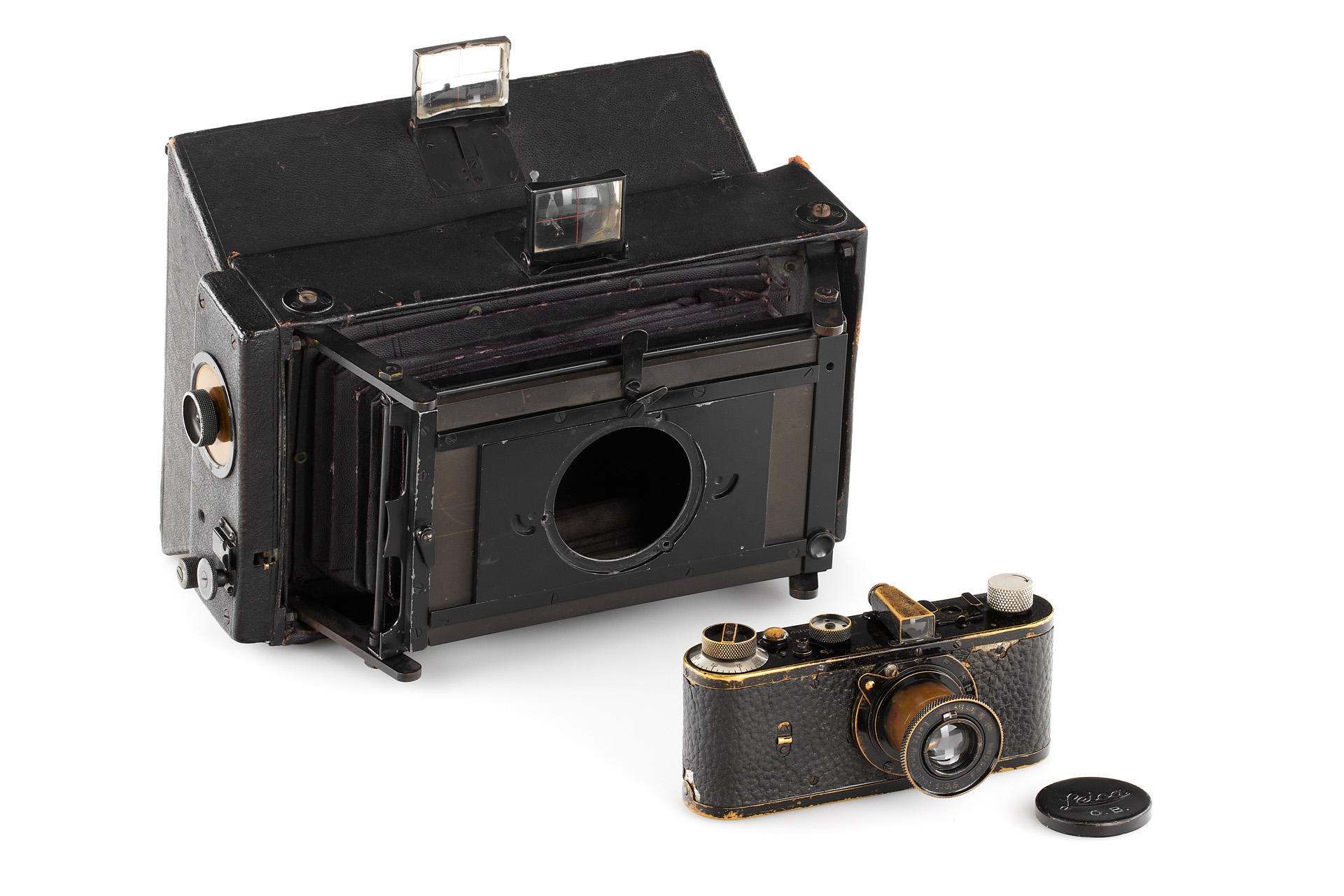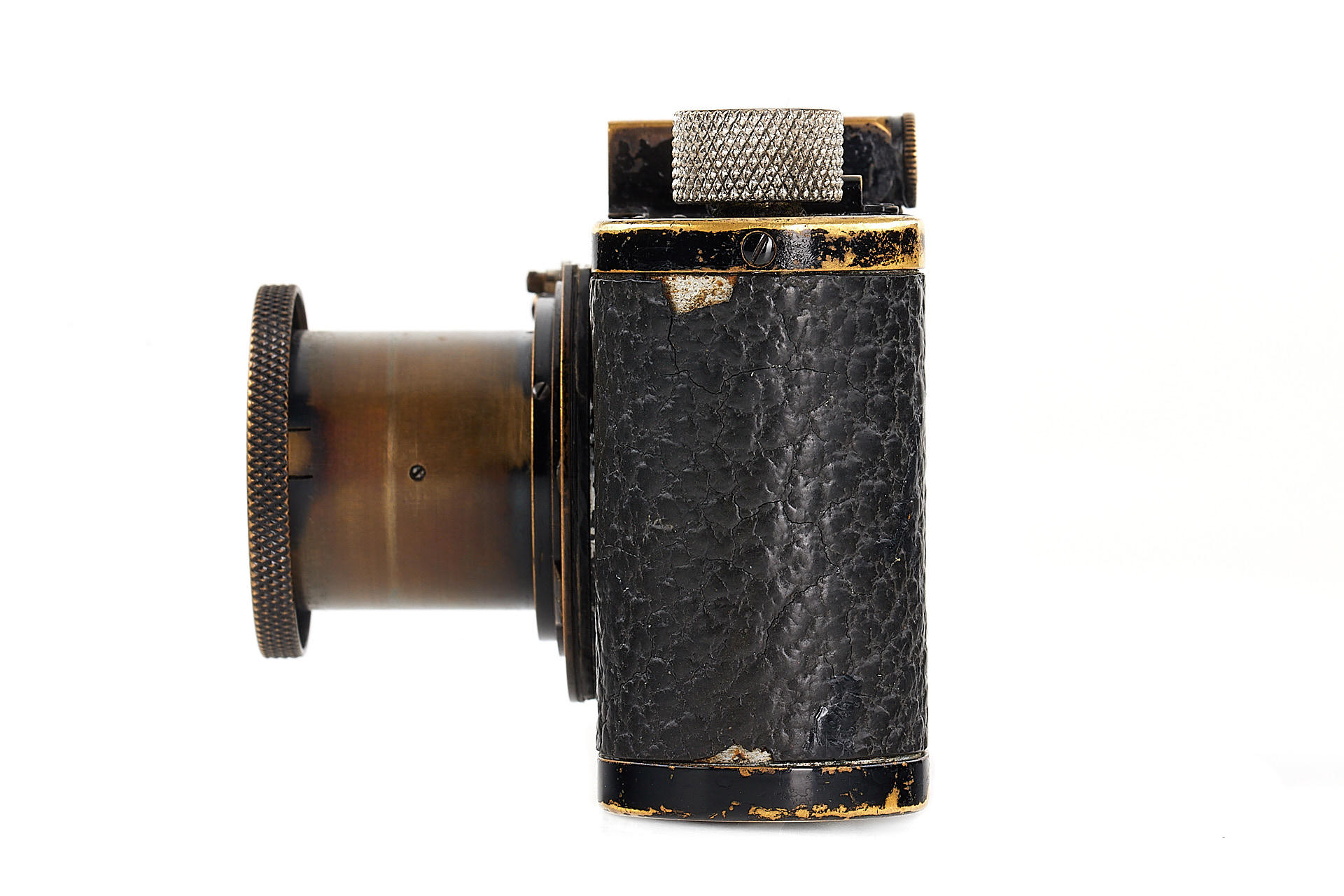 Only 22 of 0-Series Leicas were produced in 1923 to test the market, two years before the commercial introduction of the Leica A. Only around a dozen survived to the present day. Among these extremely rare cameras, one is of particular historical importance. The 0-Series with the serial number 105 was the personal camera of the designer of the Leica - Oskar Barnack. This inconspicuous-looking black-painted camera shows a patina of years of use. Some of the parts have been exchanged by the owner. The Galilean finder shows a distinctive engraving on the top: ‘Oscar Barnack’. The inventor used the camera until 1930, when he gave it to his son, Conrad, and began using a Leica I Model C with interchangeable lenses. It stayed in the family ownership until 1960, when it was sold to a passionate U.S. collector. The lot includes an original leather lens cap on a string, later aluminium cap, engraved with initials 'O.B.' and heavily-modified Nettel camera that Barnack used for his photographic research studies, as well as numerous documents and letters concerning the Barnack's camera. The Leica 0-Series no.105 we have the pleasure to offer for sale is not only the most distinguished Leica existing but also one of the major historical milestones from the history of photography.
