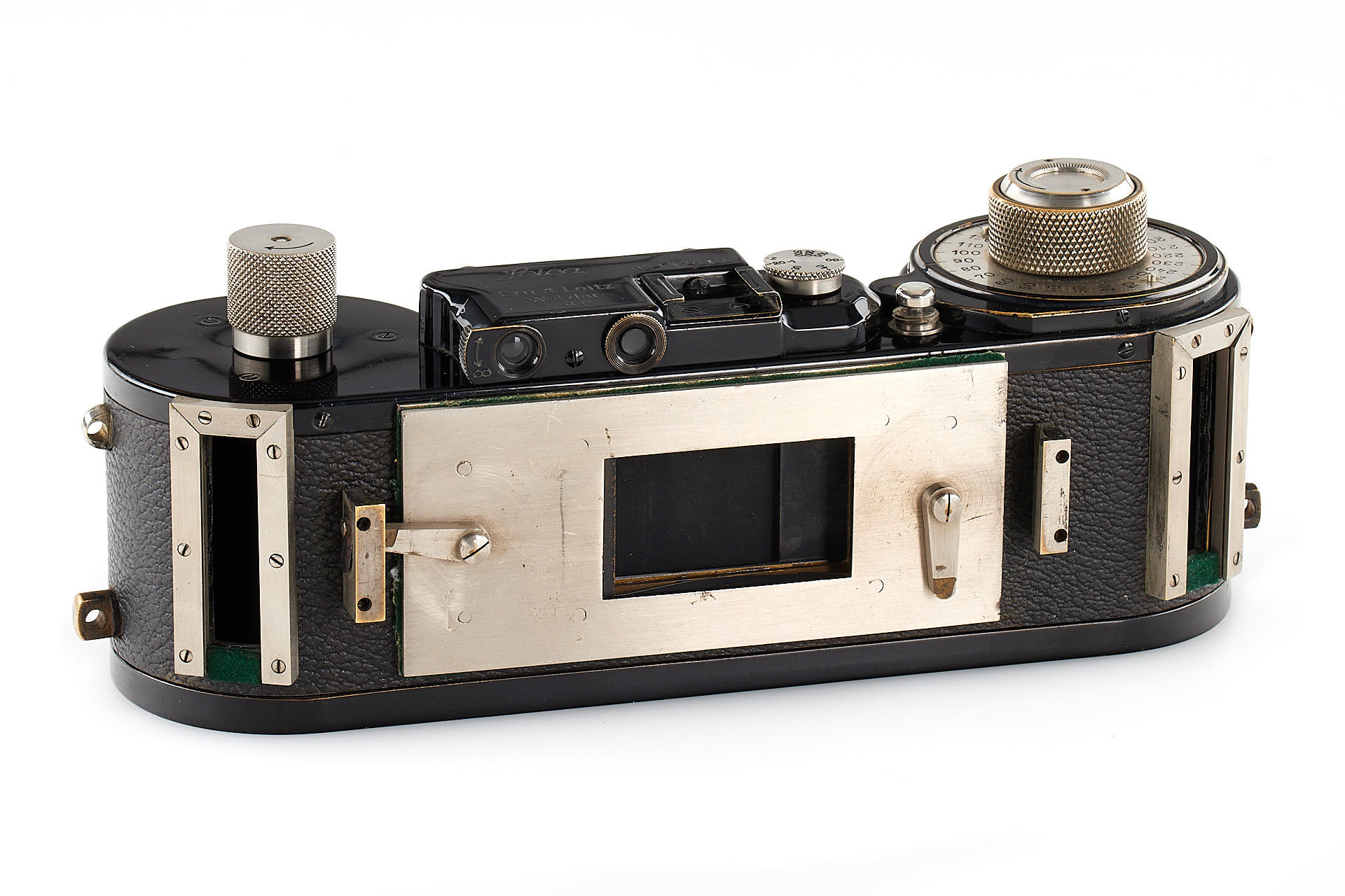 a very interesting early Leica 250 FF, modified by Leitz for the large Danish pharmaceutical company Nordisk, specially modified back with openings in both film chambers and in the pressure plate, in excellent condition