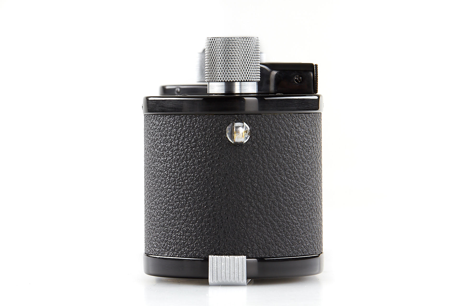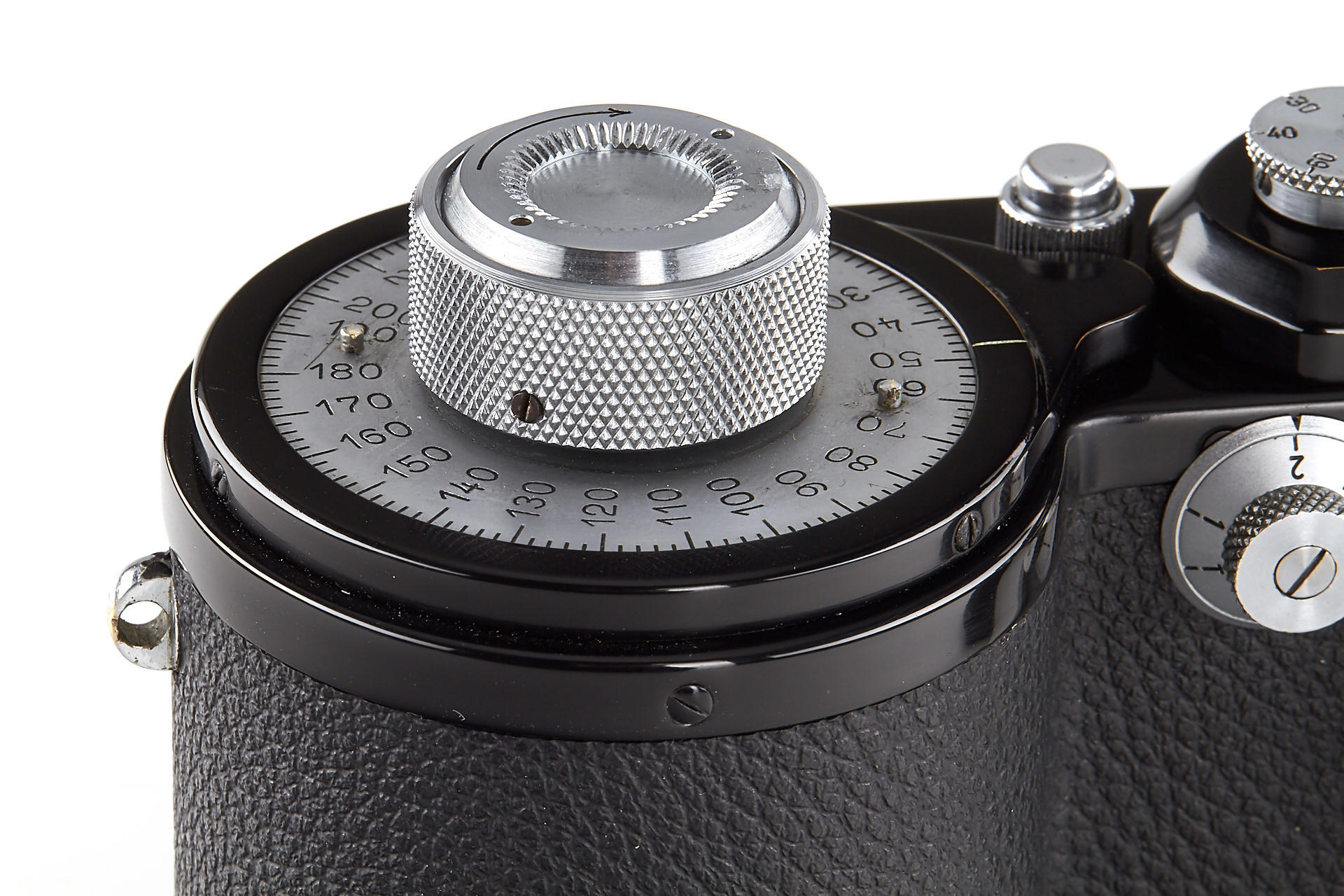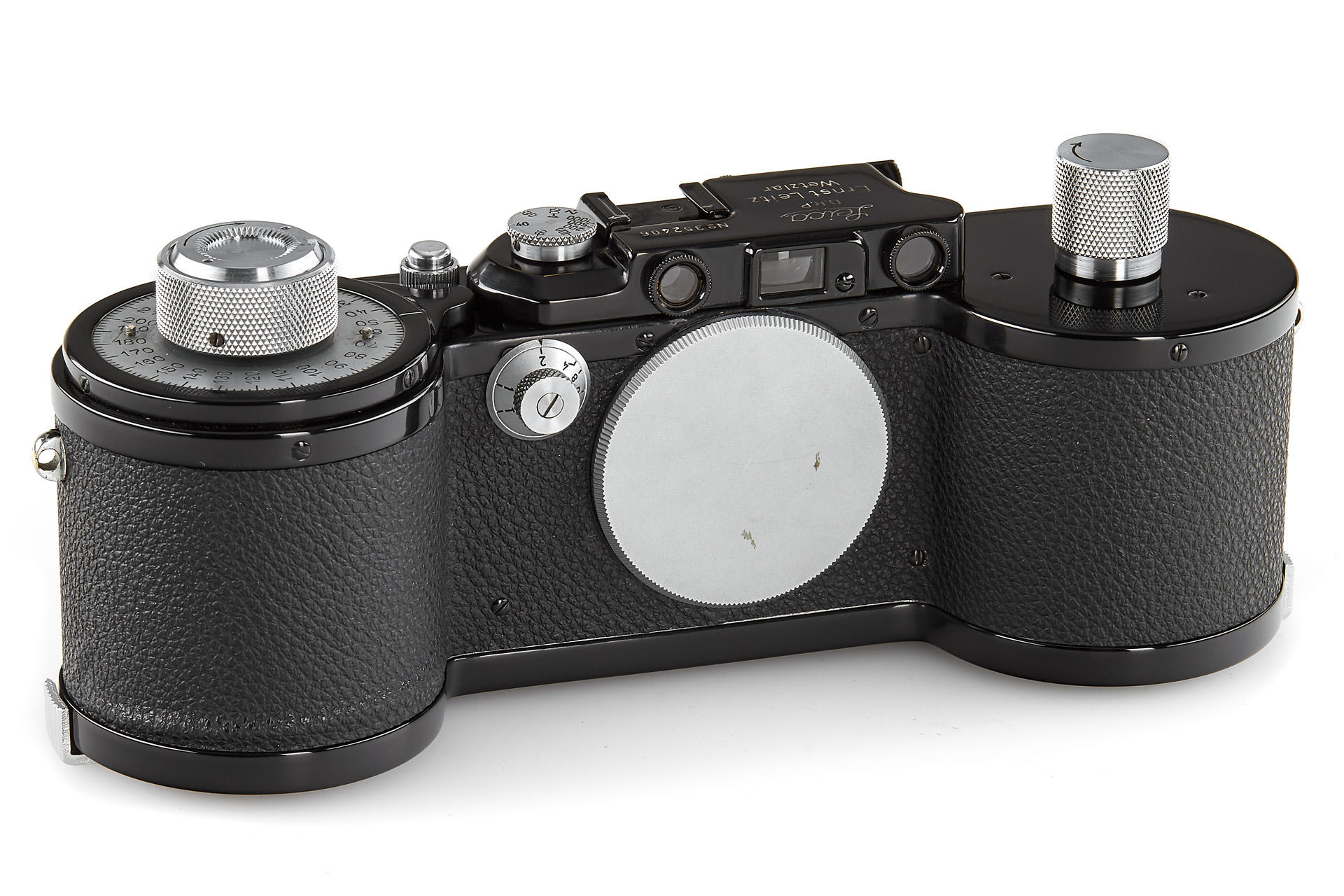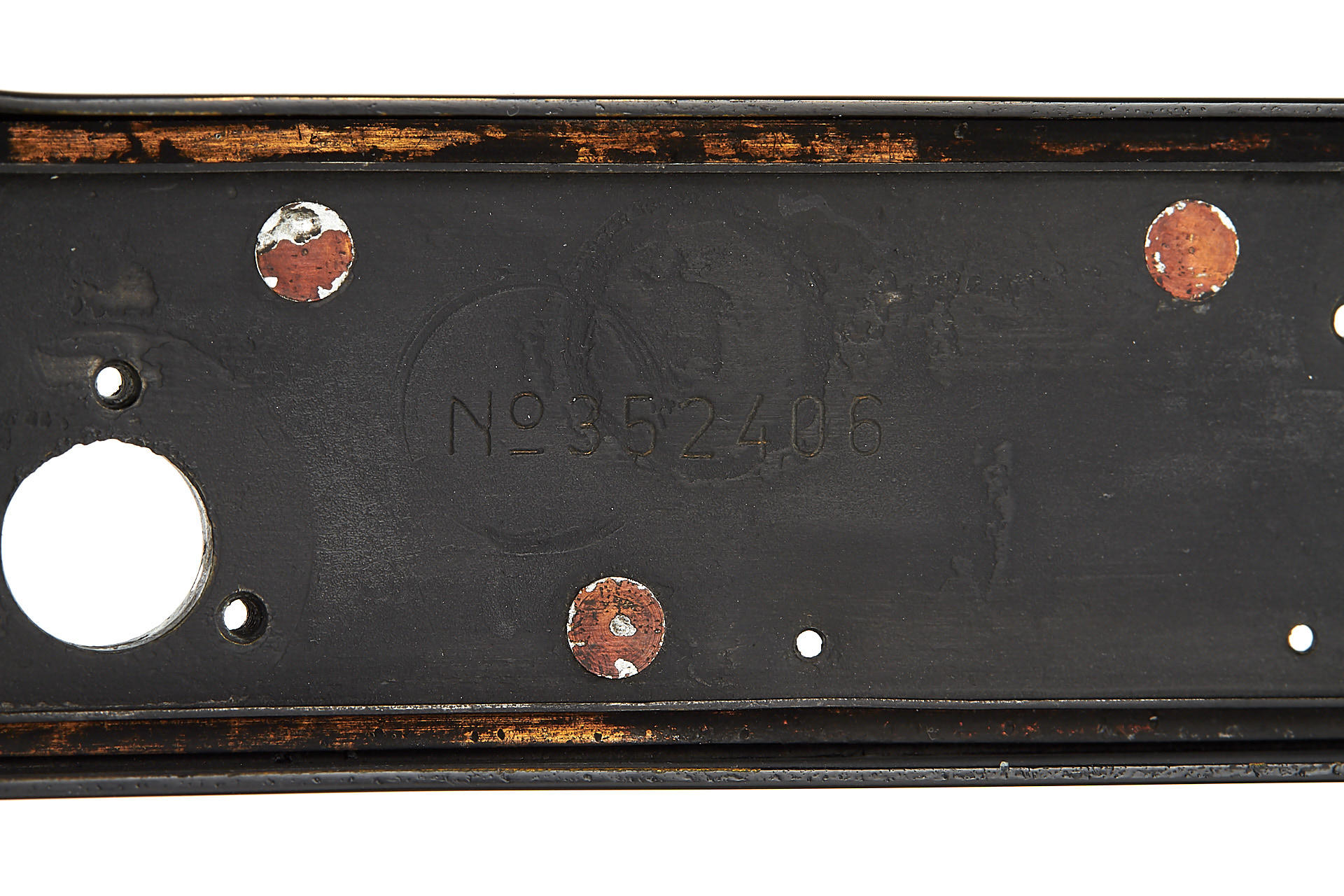 a very interesting Leica 250, equipped with motor-coupling, the base plate of the camera is actually an original top plate from the famous motor drive MOOEV - it is also engraved with the matching serial number 352406, the camera and the base plate are in excellent condition (both have been restored to present condition around 1950, the Vulkanite has been replaced with faux leather), a very interesting historical set