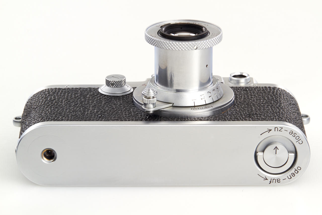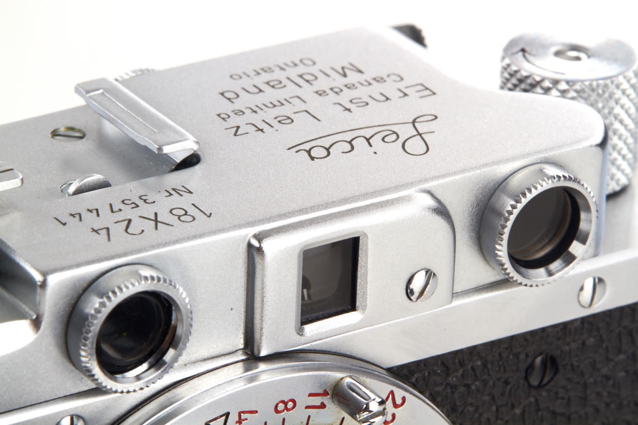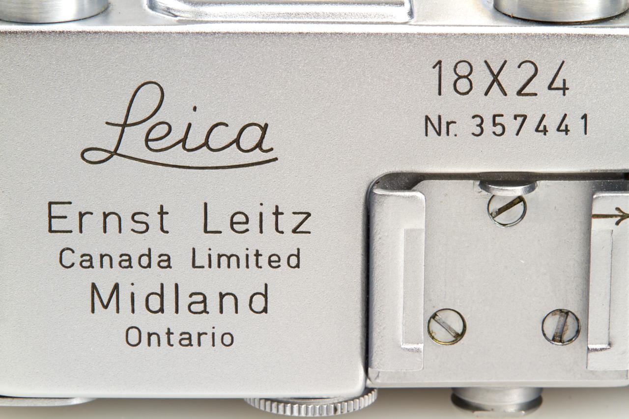 Rare and authentic and near mint Leica 72, Midland in perfect working original condition. With red scale Elmar 3.5/5cm no.1323321. The camera was inspected and approved by Ottmar Michaely. The only half-frame Leica model to go into serial production is the Leica 72. It takes 72 instead of 36 exposures on one regular roll of film. Earliest experimental Leica half-frame cameras date back to the 1940s, when film was scarce and valuable. In the early 1950s, a small run of Leica 72 cameras was produced in Wetzlar. The “serial production” of 150 units (nos.357301-357450) was then built at the Leitz factory in Midland, Ontario (Canada). The Leica 72 is a sought-after collector’s item. As counterfeit cameras do exist, we strongly recommend to buy a camera which was approved by experts.
