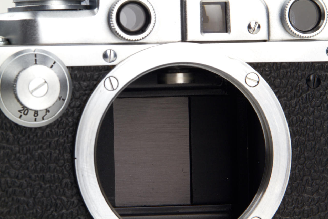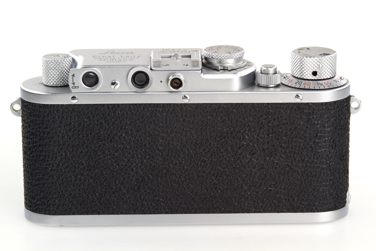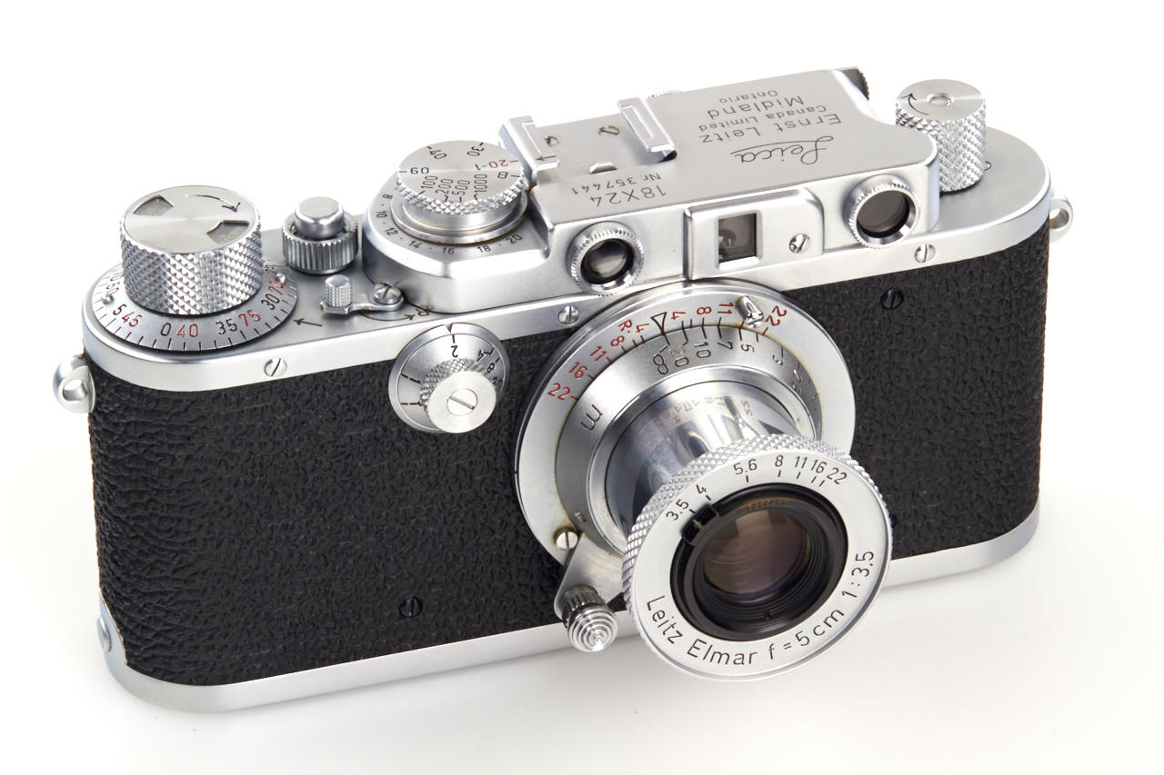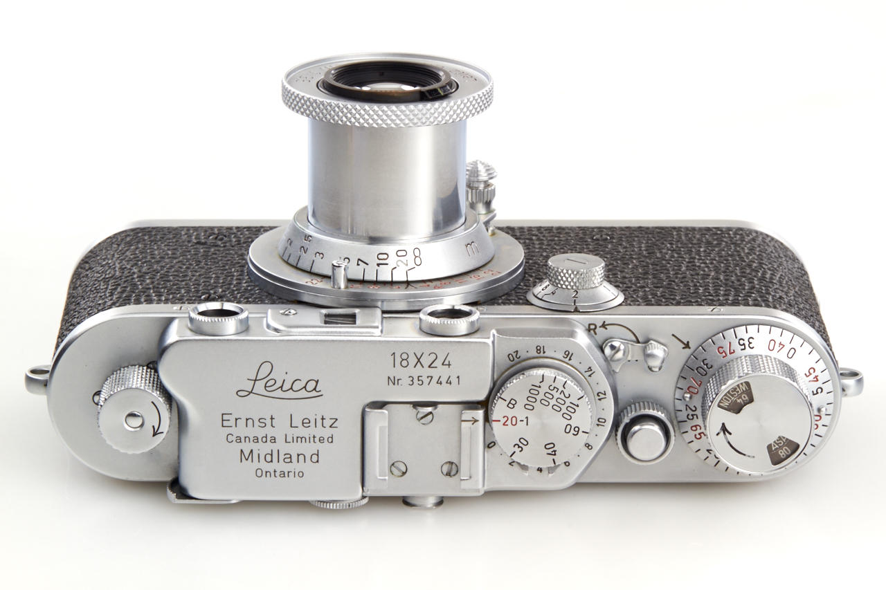 Rare and authentic and near mint Leica 72, Midland in perfect working original condition. With red scale Elmar 3.5/5cm no.1323321. The camera was inspected and approved by Ottmar Michaely. The only half-frame Leica model to go into serial production is the Leica 72. It takes 72 instead of 36 exposures on one regular roll of film. Earliest experimental Leica half-frame cameras date back to the 1940s, when film was scarce and valuable. In the early 1950s, a small run of Leica 72 cameras was produced in Wetzlar. The “serial production” of 150 units (nos.357301-357450) was then built at the Leitz factory in Midland, Ontario (Canada). The Leica 72 is a sought-after collector’s item. As counterfeit cameras do exist, we strongly recommend to buy a camera which was approved by experts.