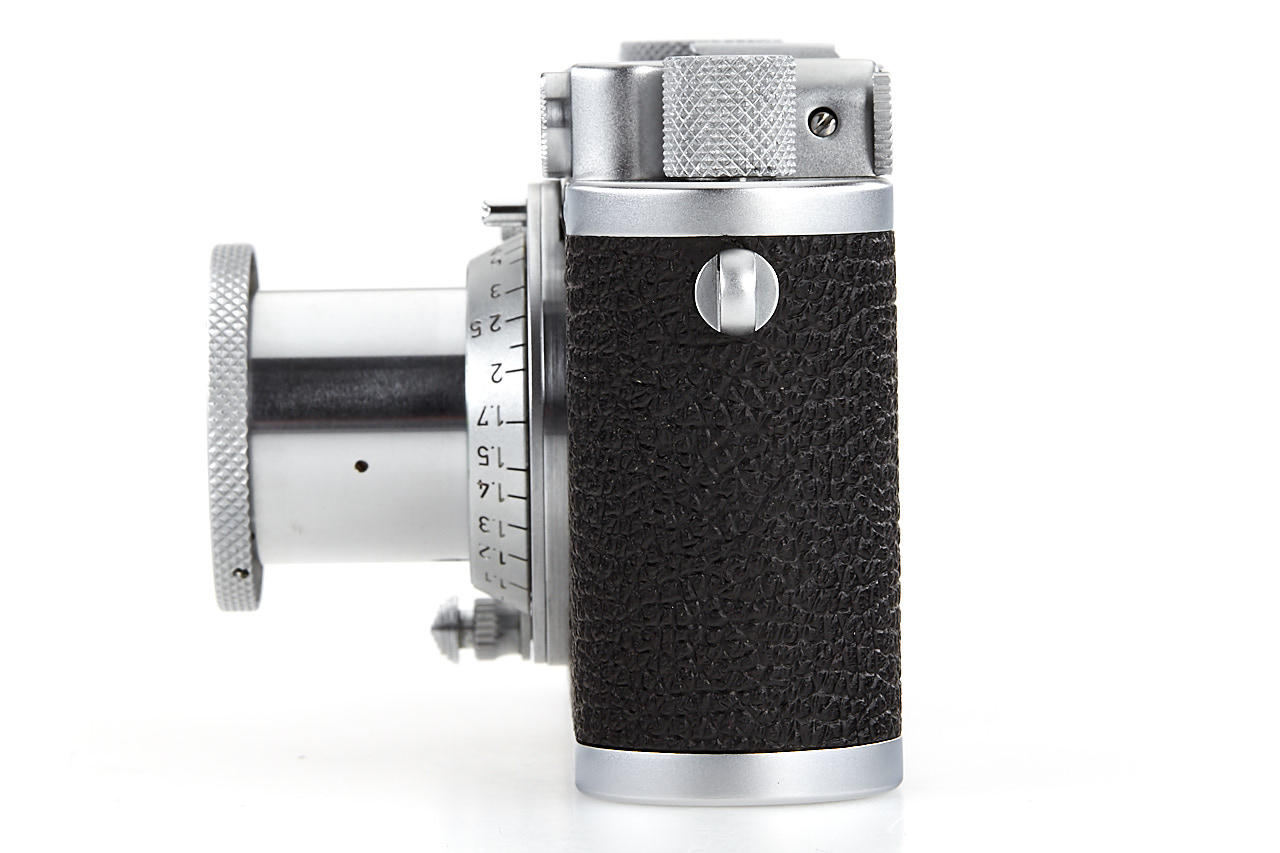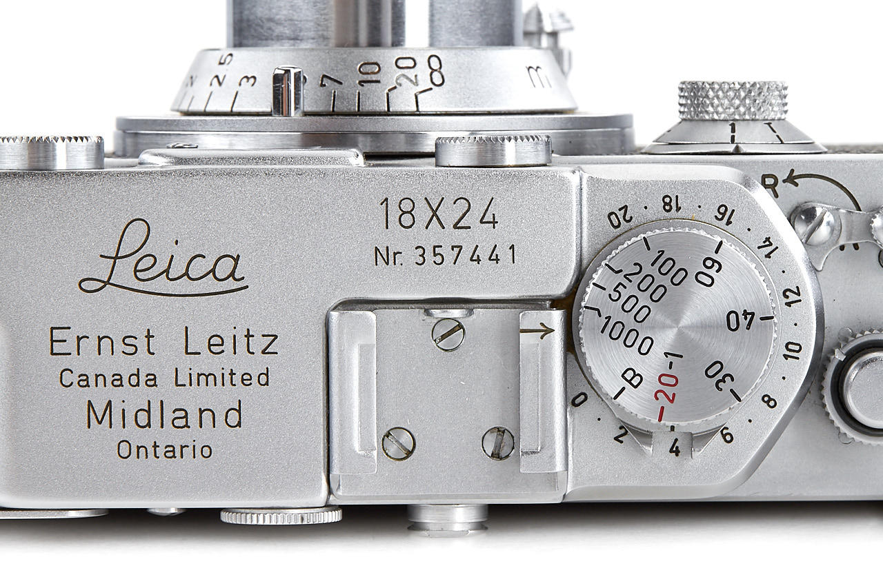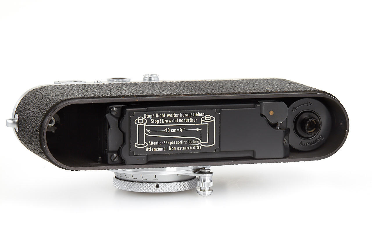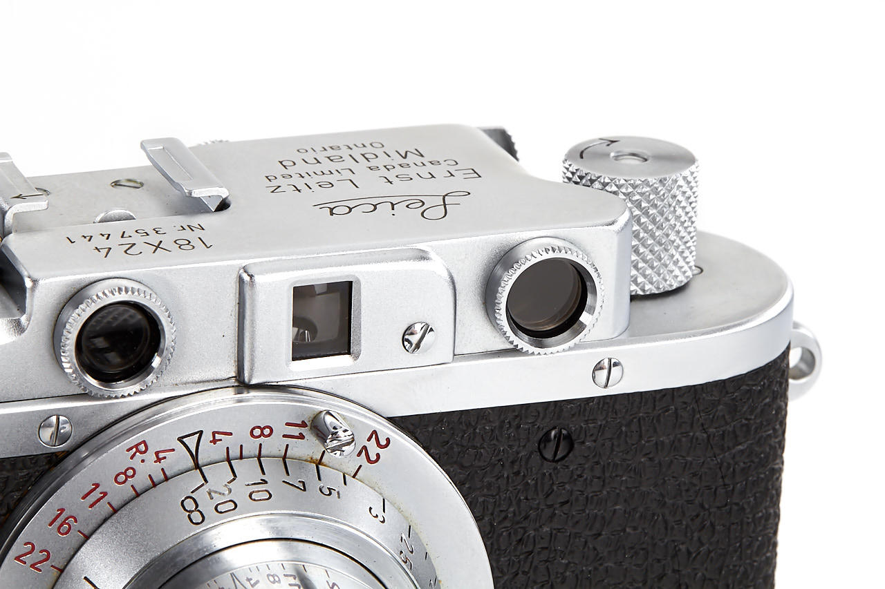 Rare and authentic and near mint Leica 72, Midland in perfect working original condition. With red scale Elmar 3.5/5cm no.1323321. The camera was inspected and approved by Ottmar Michaely. The only half-frame Leica model to go into serial production is the Leica 72. It takes 72 instead of 36 exposures on one regular roll of film. Earliest experimental Leica half-frame cameras date back to the 1940s, when film was scarce and valuable. In the early 1950s, a small run of Leica 72 cameras was produced in Wetzlar. The “serial production” of 150 units (nos.357301-357450) was then built at the Leitz factory in Midland, Ontario (Canada). The Leica 72 is a sought-after collector’s item. As counterfeit cameras do exist, we strongly recommend to buy a camera which was approved by experts.