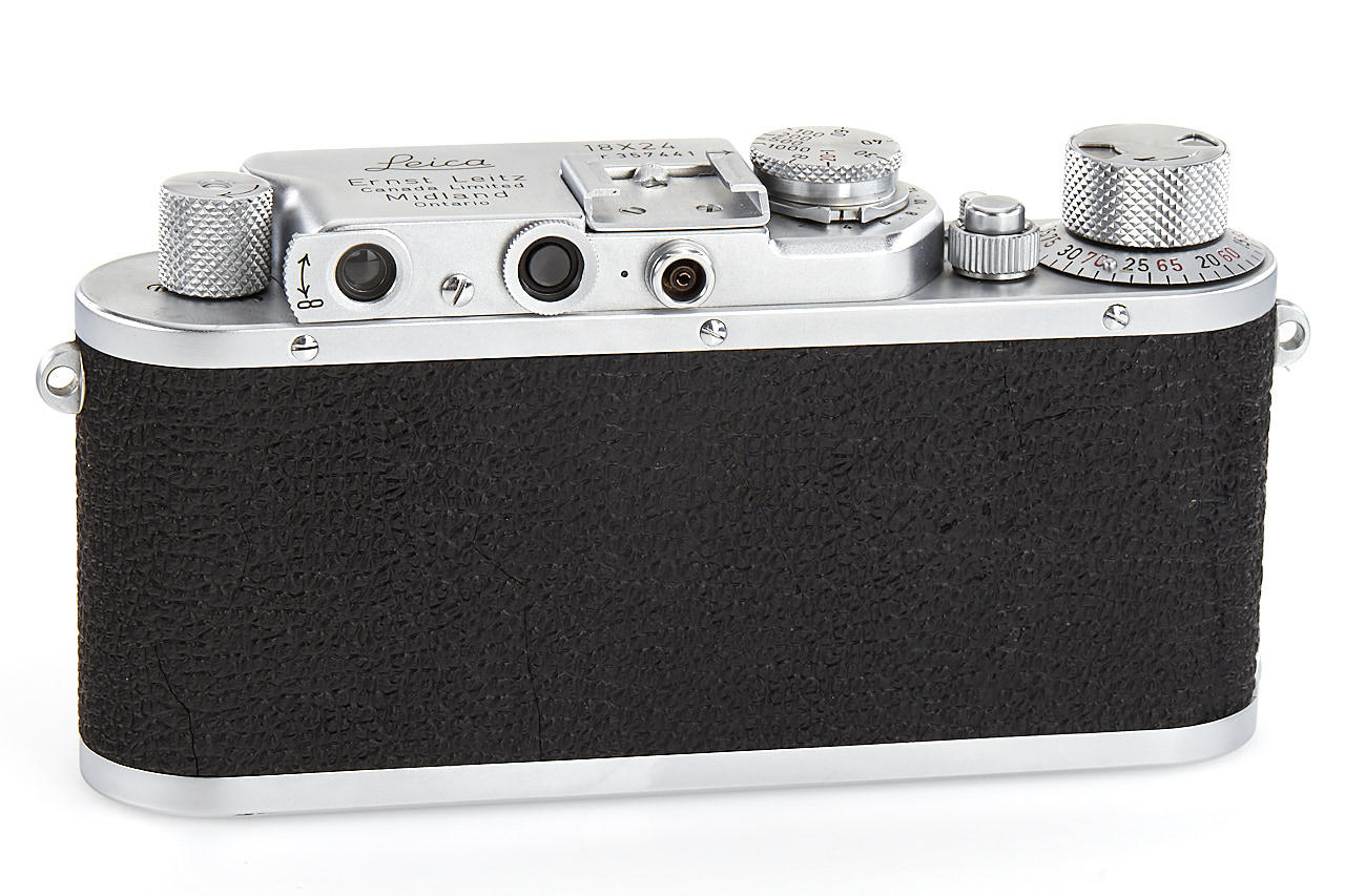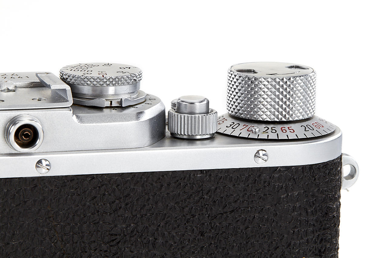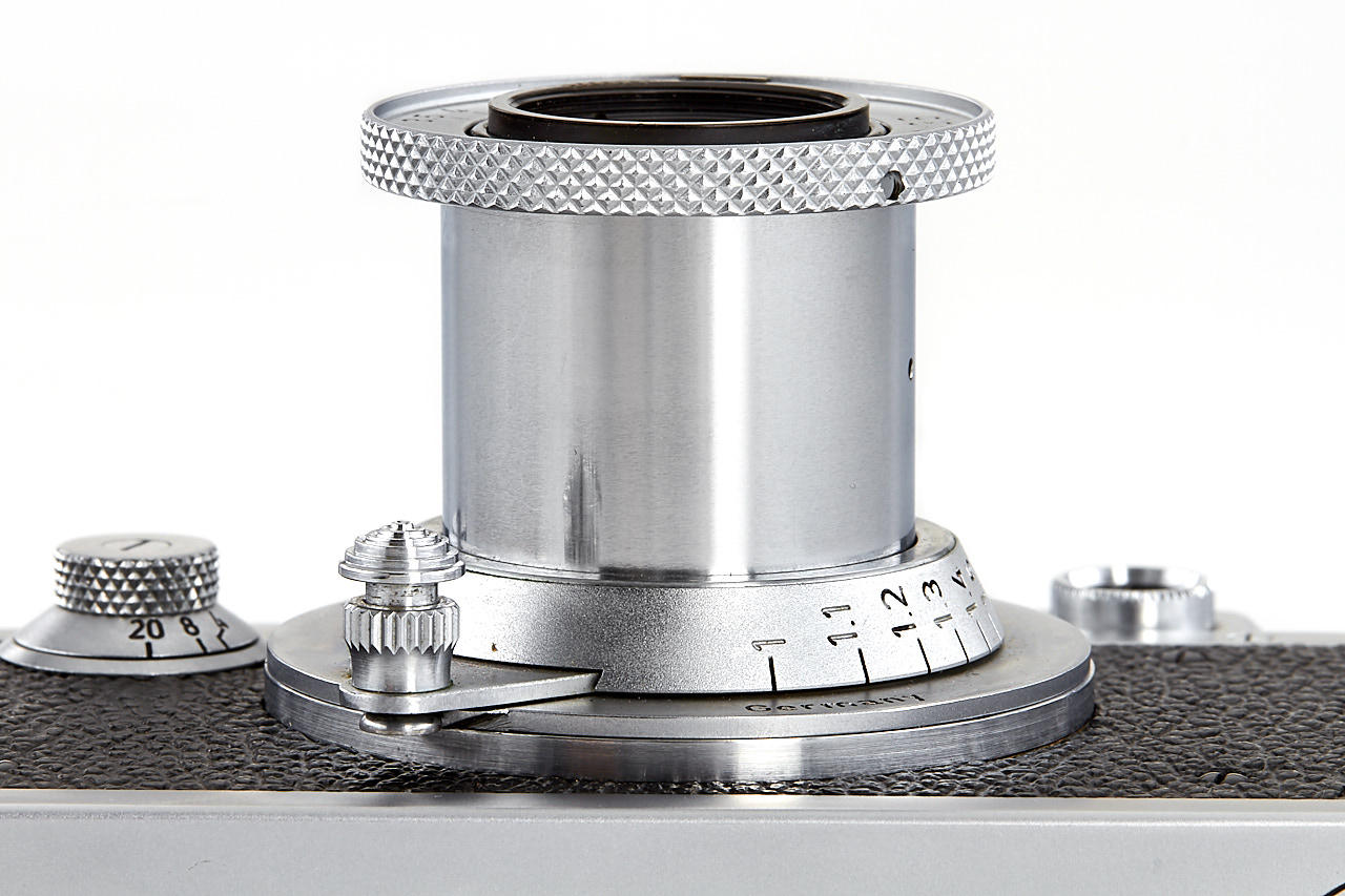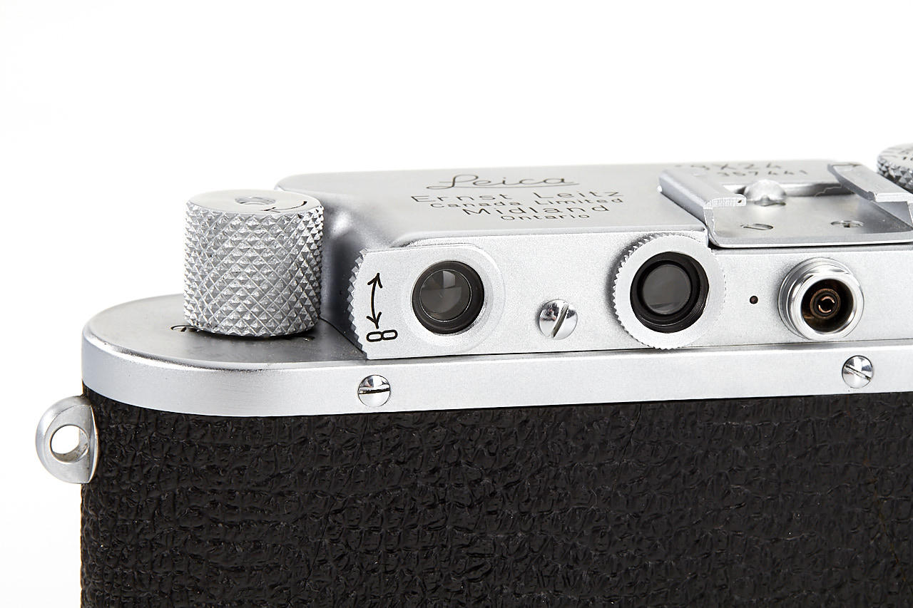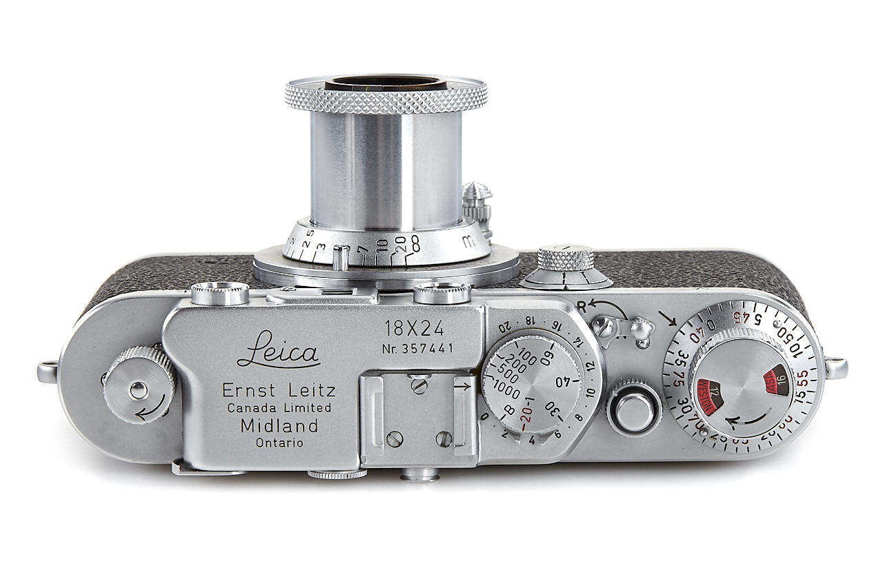 Rare and authentic and near mint Leica 72, Midland in perfect working original condition. With red scale Elmar 3.5/5cm no.1323321. The camera was inspected and approved by Ottmar Michaely. The only half-frame Leica model to go into serial production is the Leica 72. It takes 72 instead of 36 exposures on one regular roll of film. Earliest experimental Leica half-frame cameras date back to the 1940s, when film was scarce and valuable. In the early 1950s, a small run of Leica 72 cameras was produced in Wetzlar. The “serial production” of 150 units (nos.357301-357450) was then built at the Leitz factory in Midland, Ontario (Canada). The Leica 72 is a sought-after collector’s item. As counterfeit cameras do exist, we strongly recommend to buy a camera which was approved by experts.