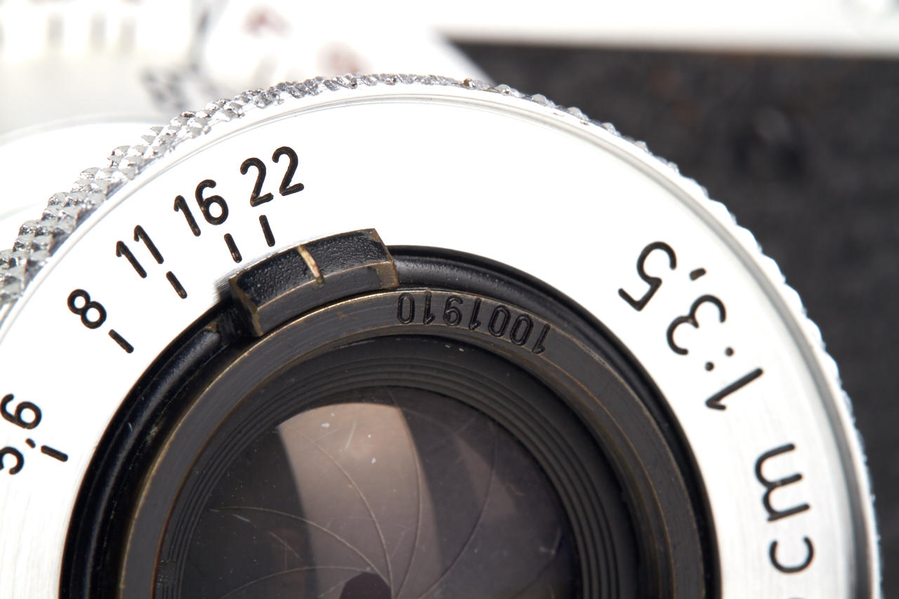 extremely rare camera in perfect, like new and 100% original condition, IIIf type with capital letter engraving on top plate, in perfect working order with red scale Elmar 3.5/5cm no.1001910 - according to the 'Hahne List' and the Leitz delivery records (copy attached) it is the last Leica 72 produced in Wetzlar, delivered on 21st of October 1970 - the camera was inspected and approved by Ottmar Michaely
