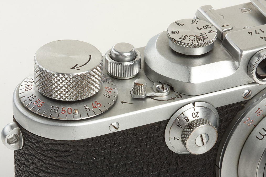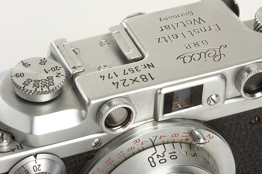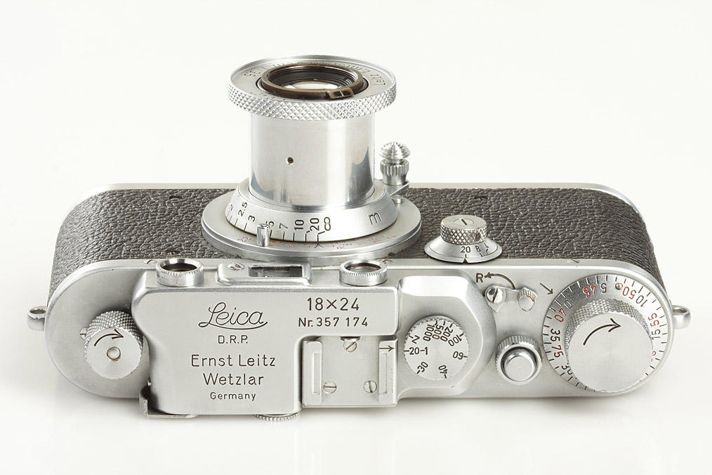 Wetzlar Leica 72 in 100% original condition, IIIa type, swinging mask missing, with red scale Elmar 3.5/5cm no.1321773, cap - From Ottmar Michaely's expertise: 'All model-specific prefabricated parts, prone to forgery in the series Leica 72 are existent and in immaculate condition. The camera has identical number engraving and shows a harmonic and consistent state of construction, rate of ware and functional fine tuning in all parts'. The camera is listed as one of only 33 Leica 72 produced in Wetzlar.