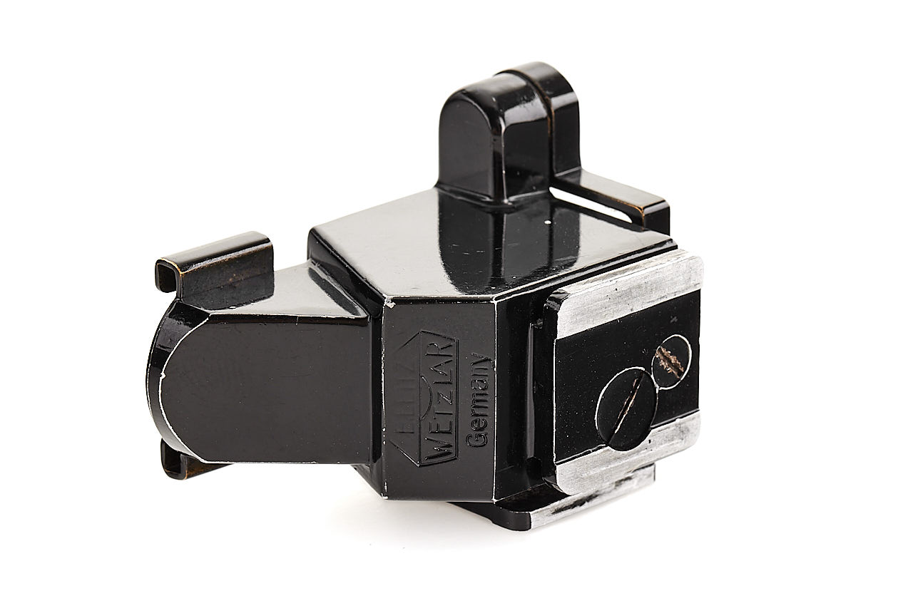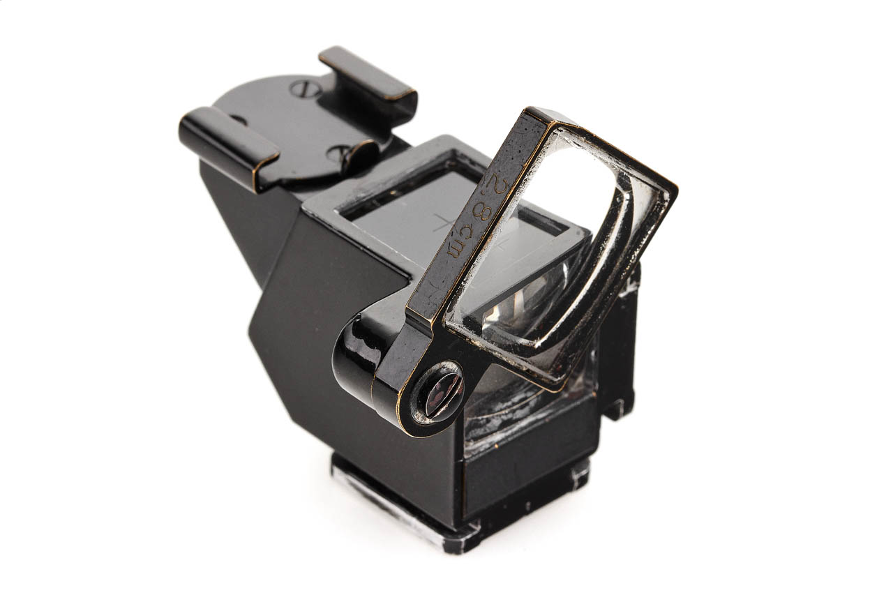 Very rare finder with swinging mask for 2.8cm lenses, in very good condition, prism showing some light corrosion otherwise good view.
