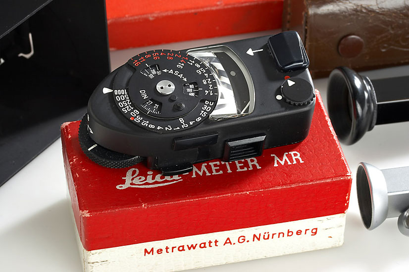WINKO black RA finder with case, WINTU chrome RA finder, SOOFM hood Summitar in maker's box, Leica-Meter MR4 black (not working) no.62548 in maker's box (4)