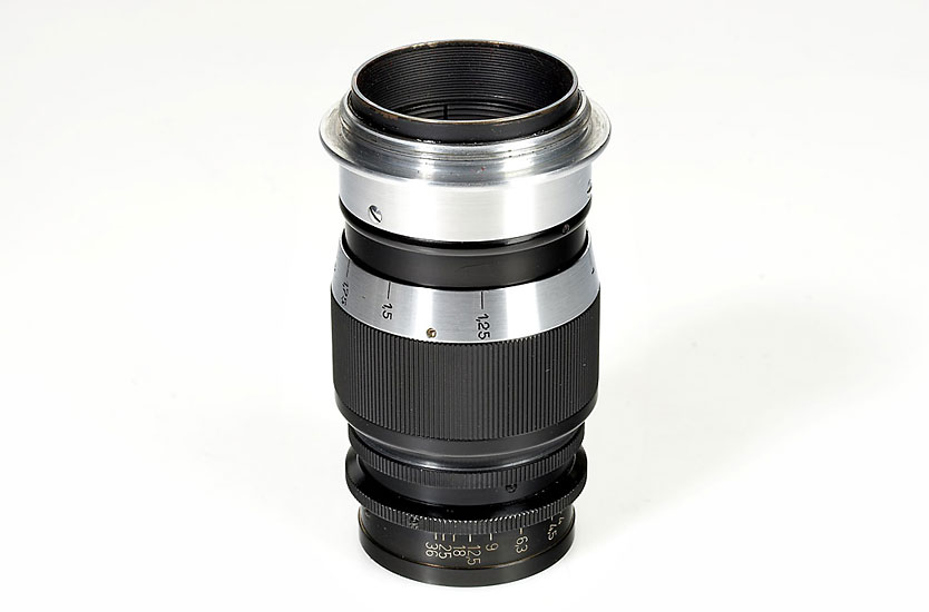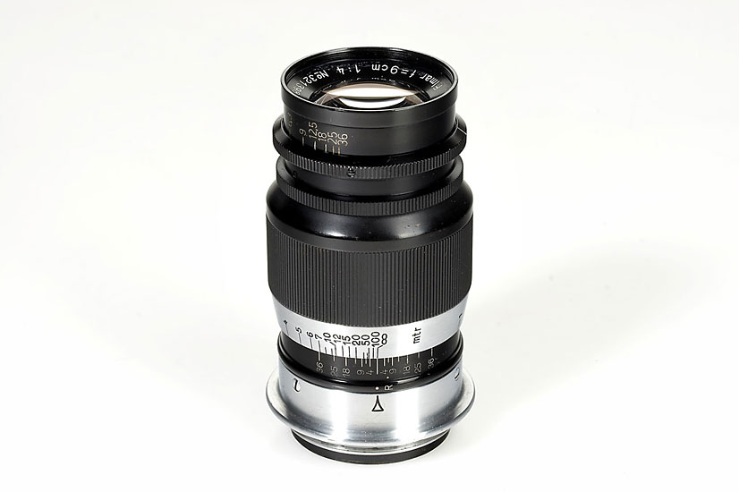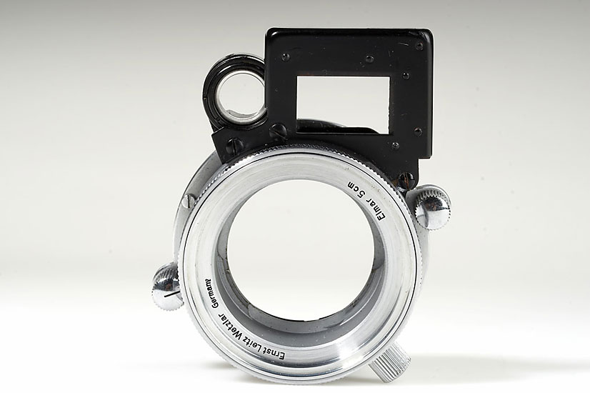 VOTRA stereo-viewer (mint with opal glass plate, red box), NOOKY (mint in red maker's box), FARUX panorama head (nickel, like new in red box), Elmar 4/9cm no.321398 (black/chrome, coated, near mint with red maker's box) (4)