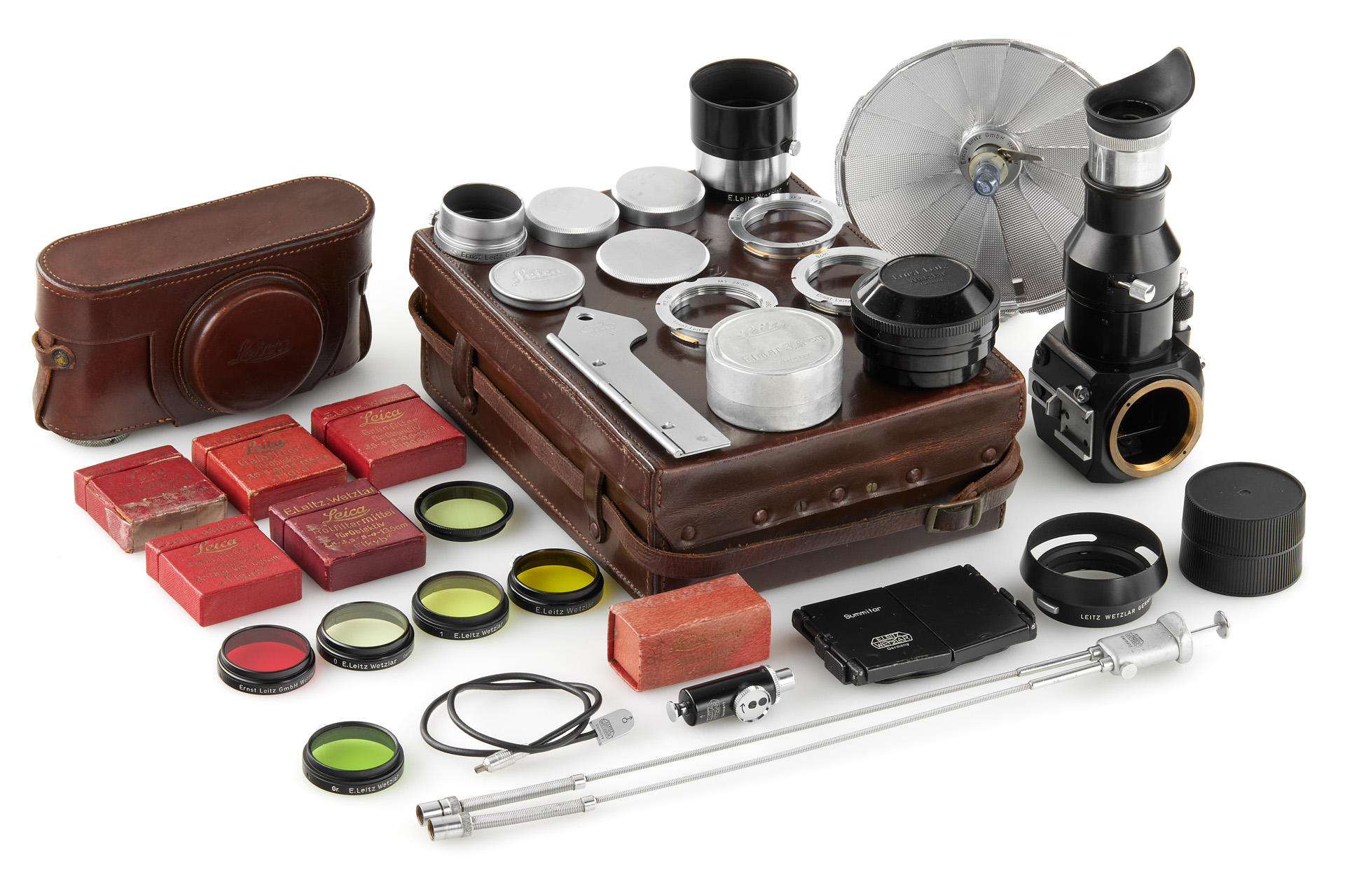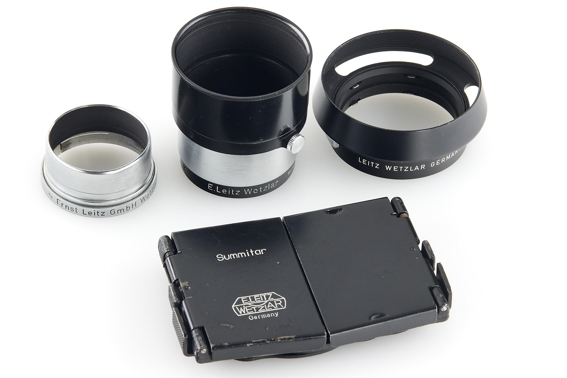 a large lot of various Leica accessories, including two cases, three M adapters, three hoods, filters, caps etc.
