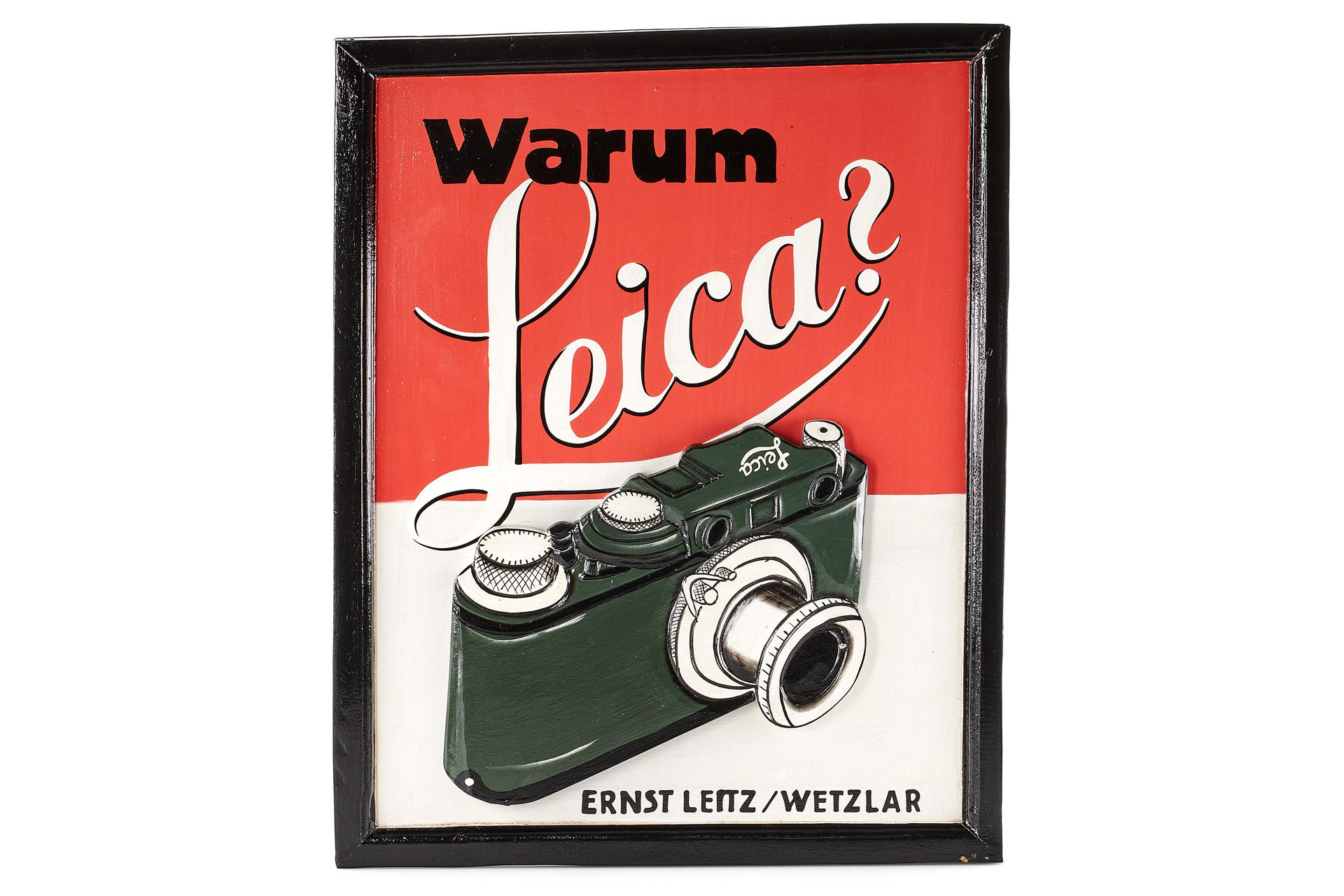 very nice modern reproduction of a Leica price catalogue from the 1920s, 59 x 48cm hand painted wood in mint condition