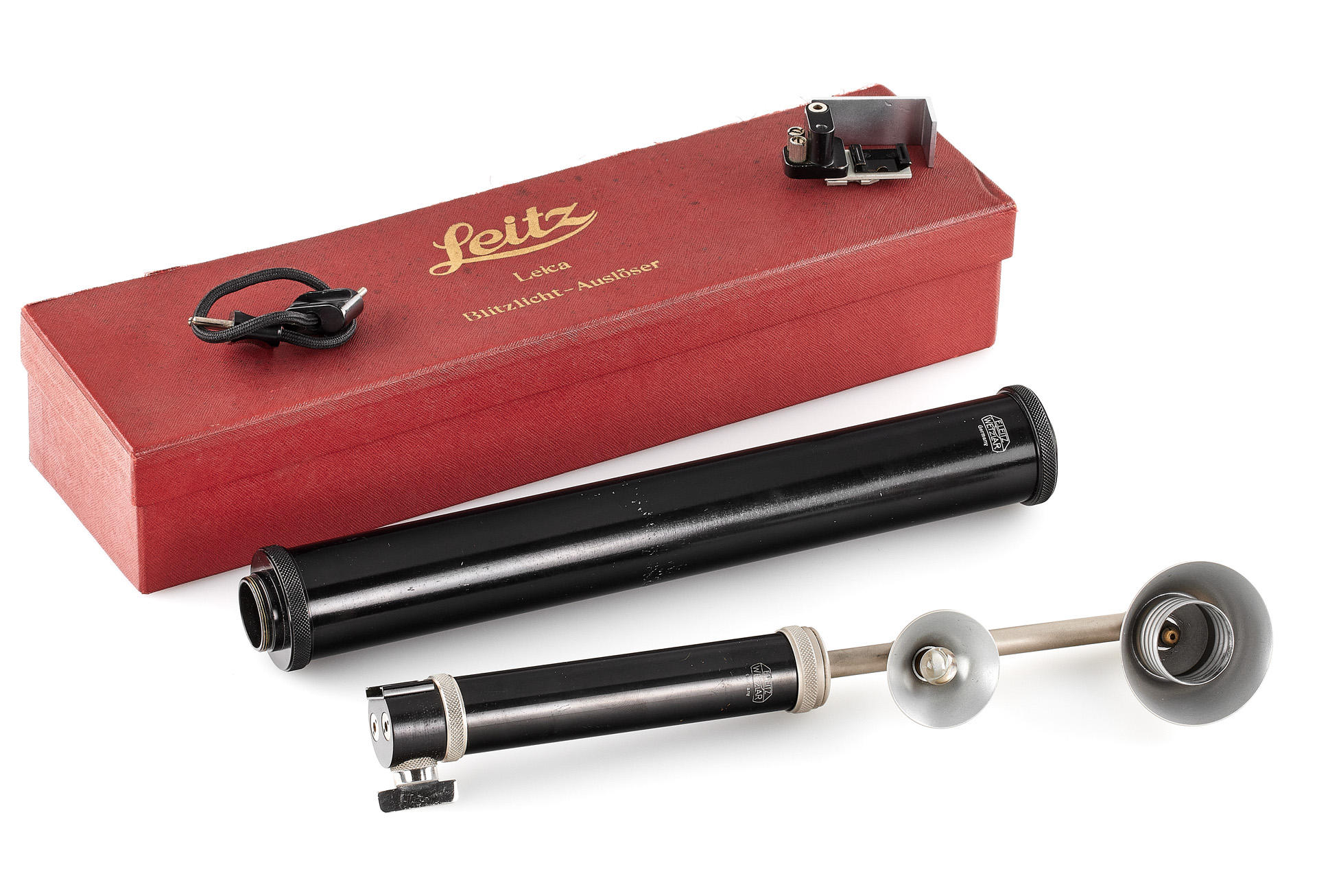 rare early flashlight for Vacublitz bulbs, complete set in near mint condition, with very rare large battery case and original red maker's box
