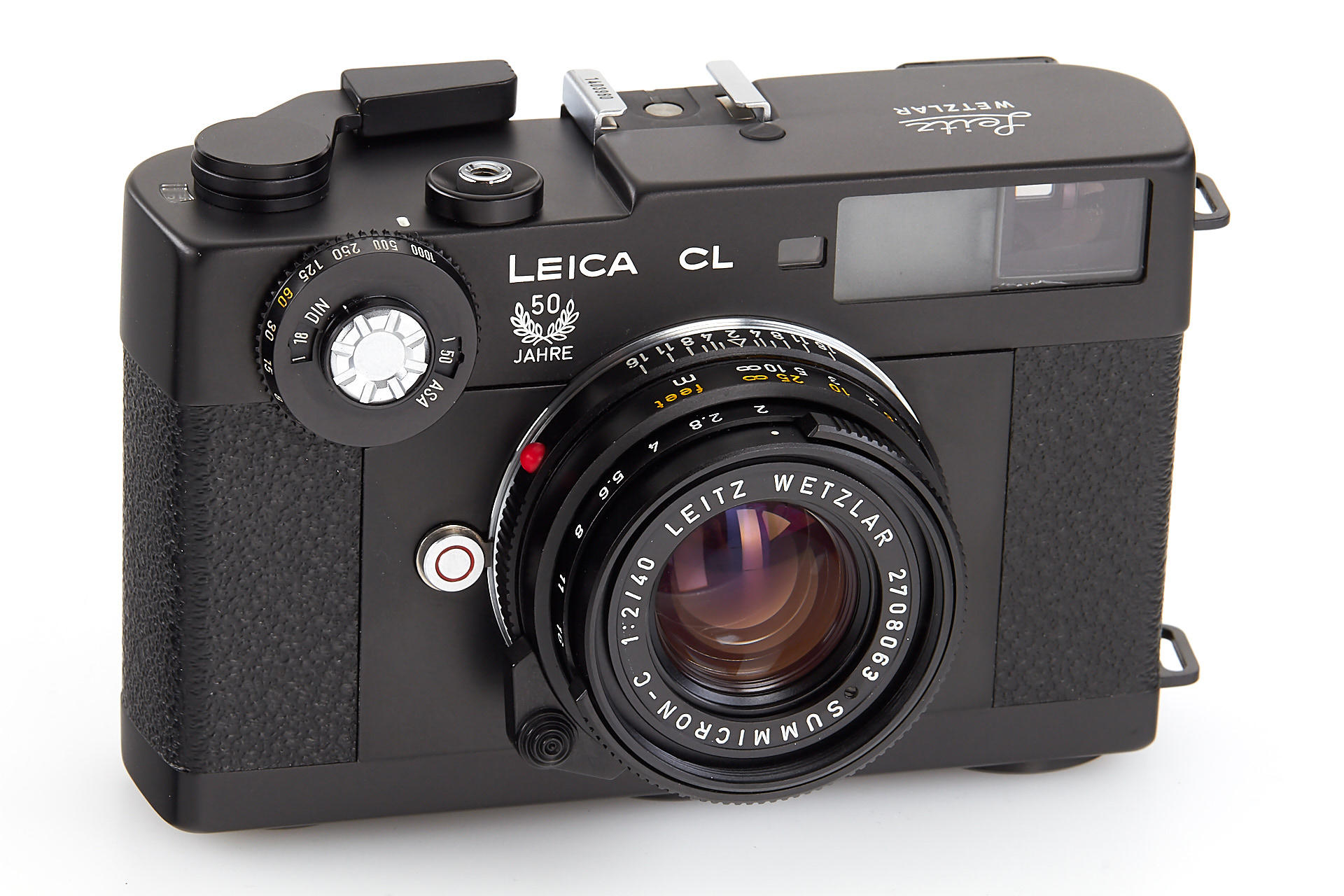 limited edition Leica CL, issued to commemorate 50 years of Leica cameras, body no.1403960 in near mint condition, with Summicron 2/40mm no.2708063, rubber hood, UV filter, German instructions and maker's box