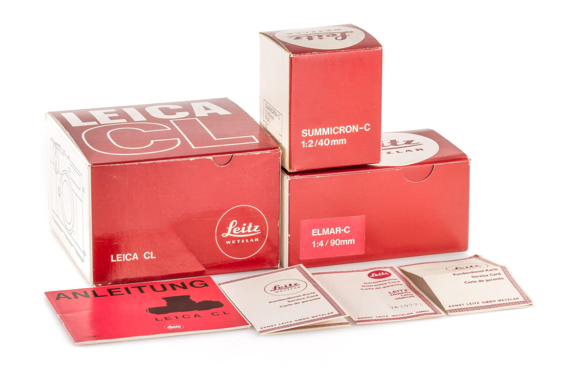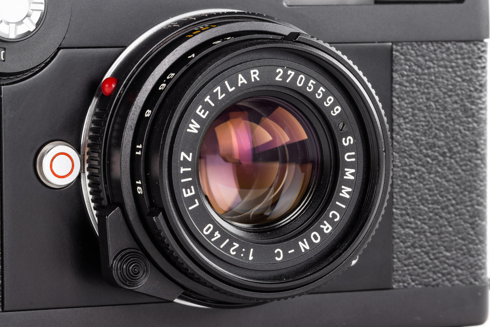 body in mint condition and working order, with clean and clear Summicron-C 2/40mm no.2705599 (rubber hood and rear cap), Elmar-C 4/90mm no.2649727 (rubber hood and both caps), with all 3 maker's boxes, outfit case and warranty cards