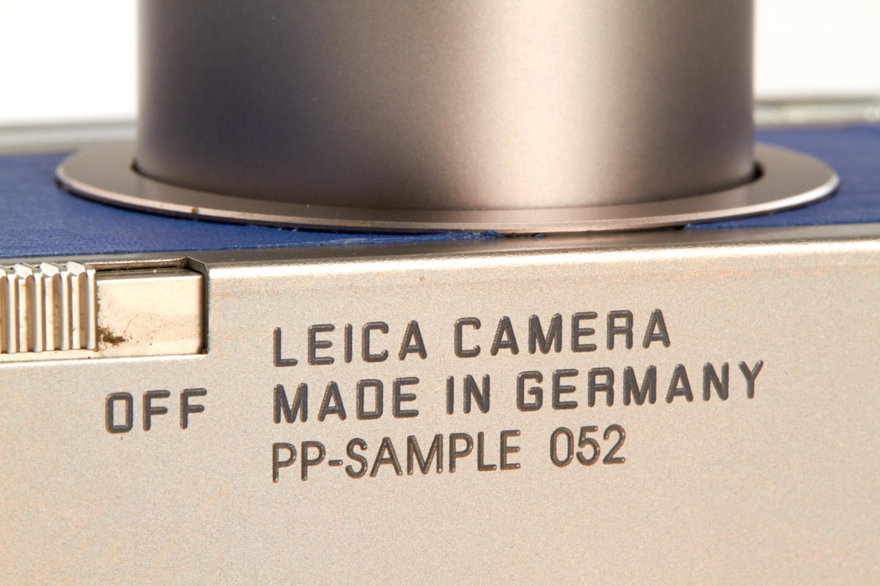 in near mint condition, with blue leather covering, engraved on base plate 'PP-SAMPLE 052'