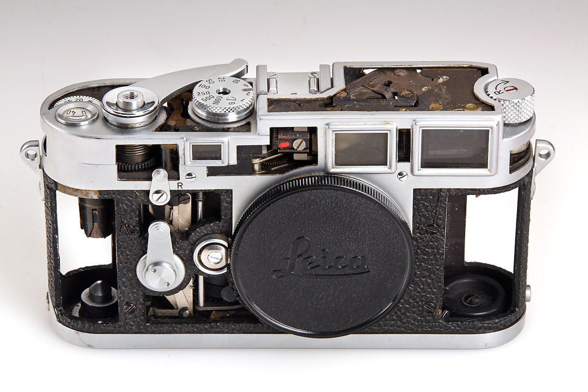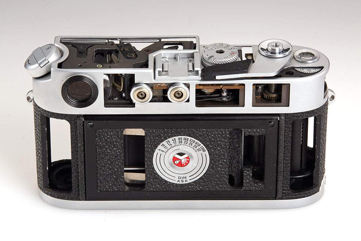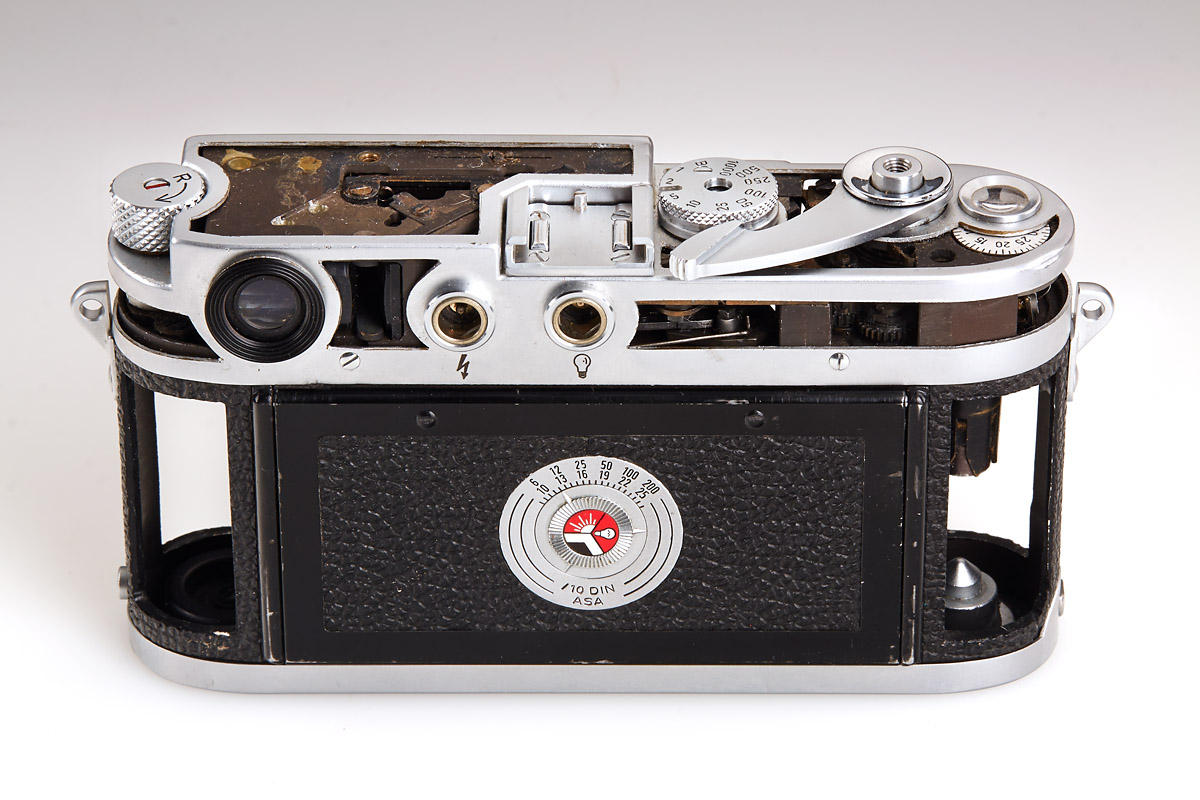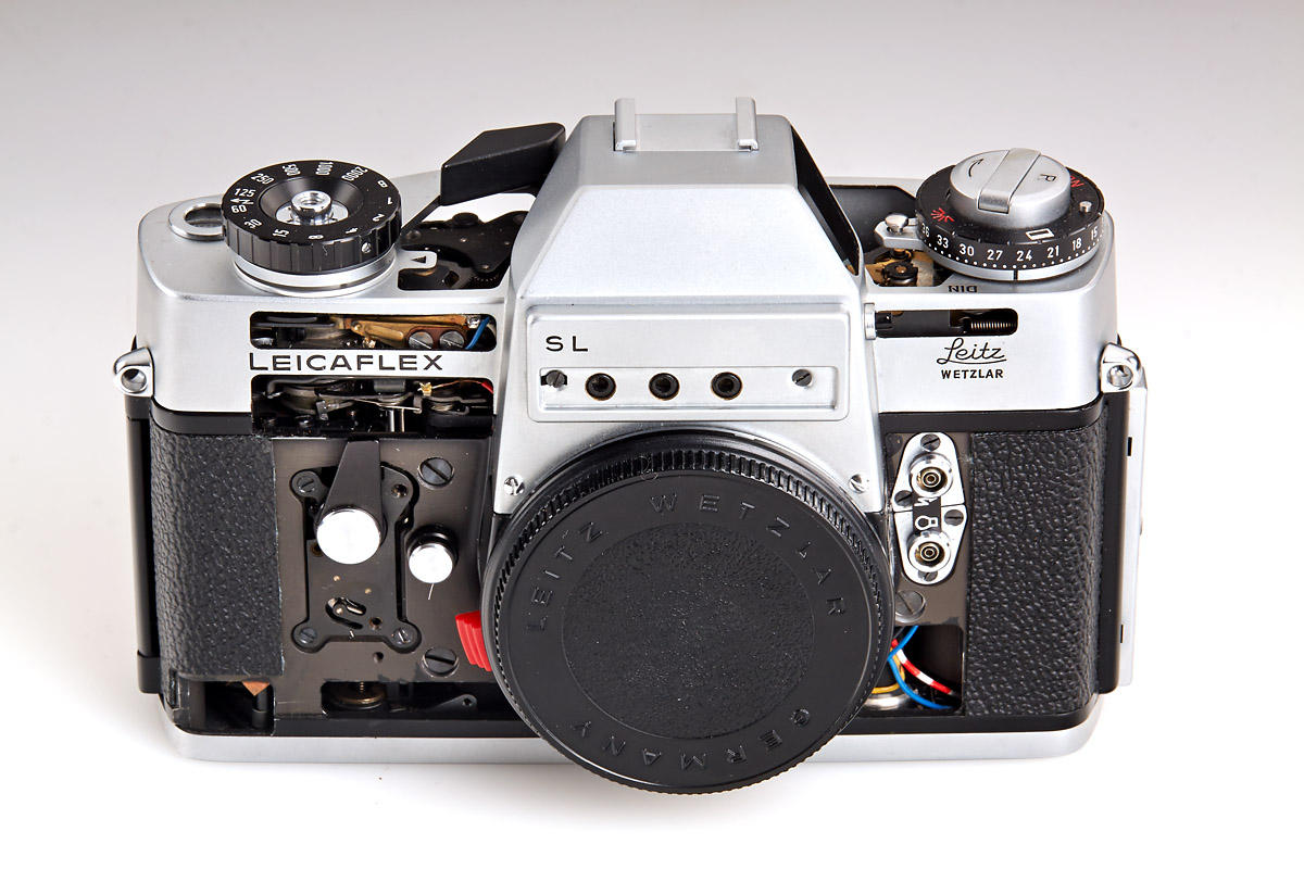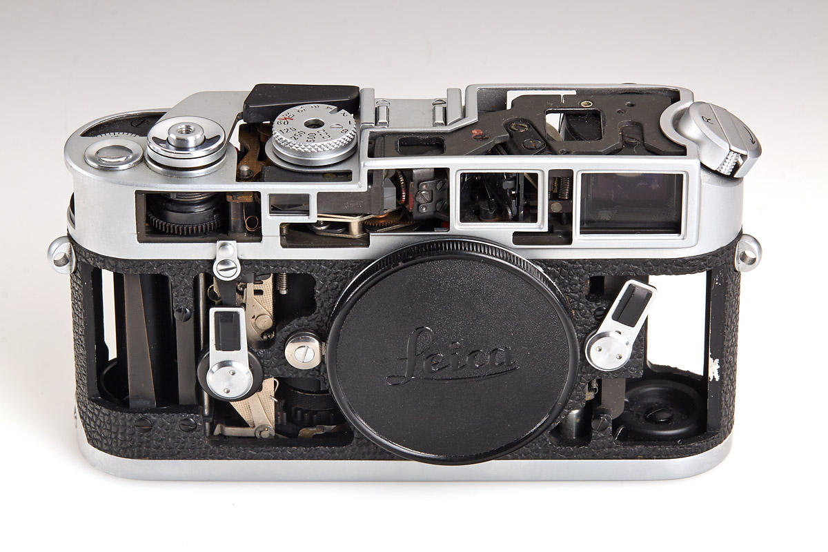 Set of four rare cut-away models, all in fine and working condition: (1) M3 chrome, very eary version from 1955, (2) M4 chrome, rare, c.1968, (3) M5 chrome, two lugs, engraved S (Schnitt) 12 on hot shoe, c.1971, (4) Leicaflex SL, very rare and beautifully made, c.1968 Literature James L. Lager (ed.), Leica Illustrated History, Vol. I, 1993, p. 180, 231, 245 and 274. Leica cutaway models were used for demonstration purposes at the “Leica School” in Wetzlar, particularly for dealer education. Apart from a small number of custom-made conversions, original Leica cutaway models were made by Leitz. Usually they could perform all basic functions of shutter and winding as well as the finder system, which could be viewed especially well because of the skeletonized outer parts. The effort involved in preparing such cutaway models was immense. This is why only a few cutaway versions were made for individual Leica models. Original Leica cutaway models are extremely decorative and sought-after collectibles today. Schnittmodelle der verschiedenen Leica Modelle dienten als Demonstrationsstücke vor allem bei Schulungen von Händlern in der „Leica Schule“ in Wetzlar. Von Ausführungen aus fremder Hand abgesehen, wurden die Leica Schnittmodelle im Werk angefertigt. In der Regel waren dabei die Grundfunktionen von Verschluss, Transport und auch des Suchersystems voll funktionsfähig und konnten aufgrund der skelettierten äußeren Bauteile in einer besonders anschaulichen Weise vorgeführt werden. Der Aufwand zur Herstellung dieser Schnittmodelle war erheblich. Dies erklärt, warum überhaupt nur wenige Exemplare der einzelnen Leica Modelle als Schnittmodelle ausgeführt wurden. Originale Leica Schnittmodelle gelten als sehr dekorativ und sind daher heute gesuchte Sammlerstücke.