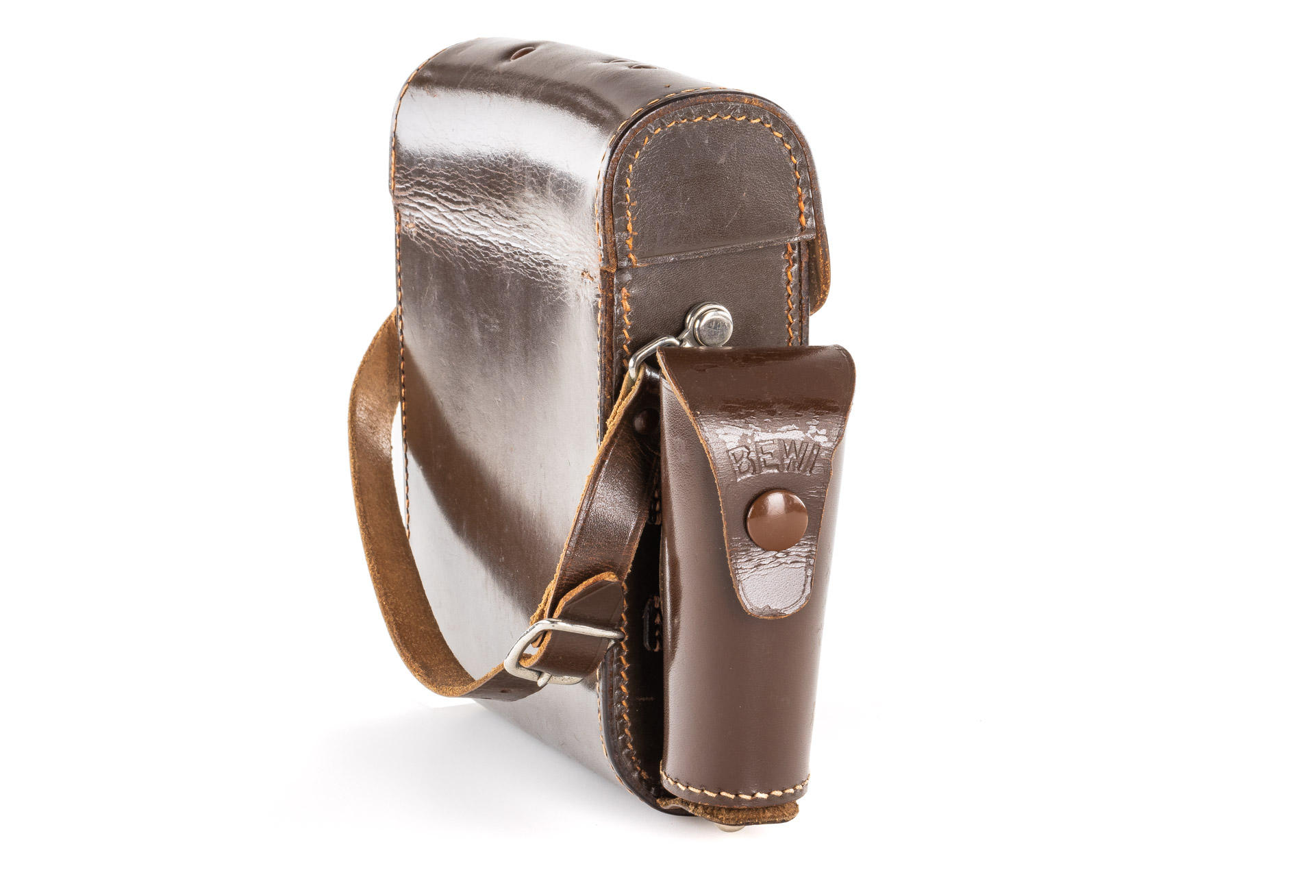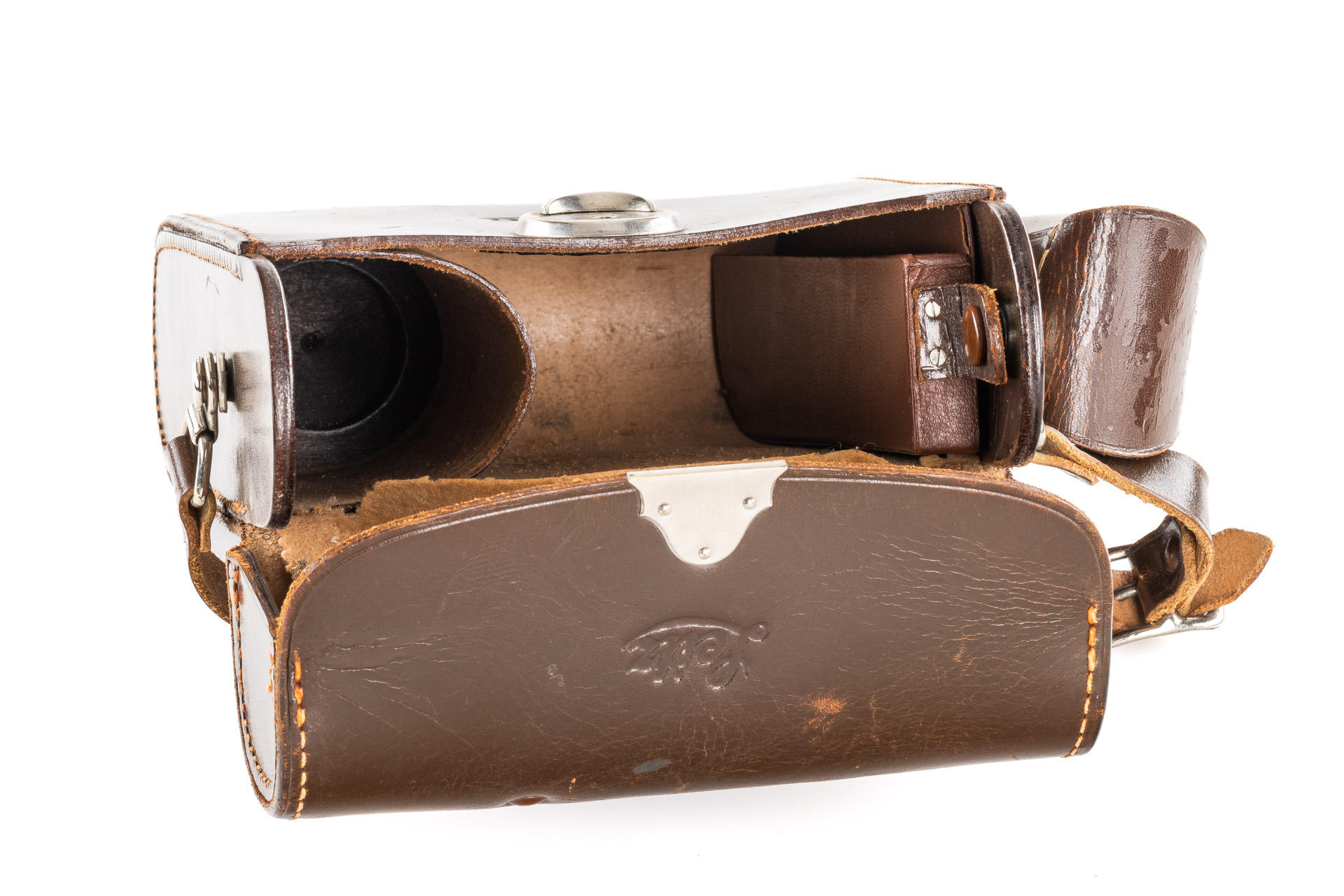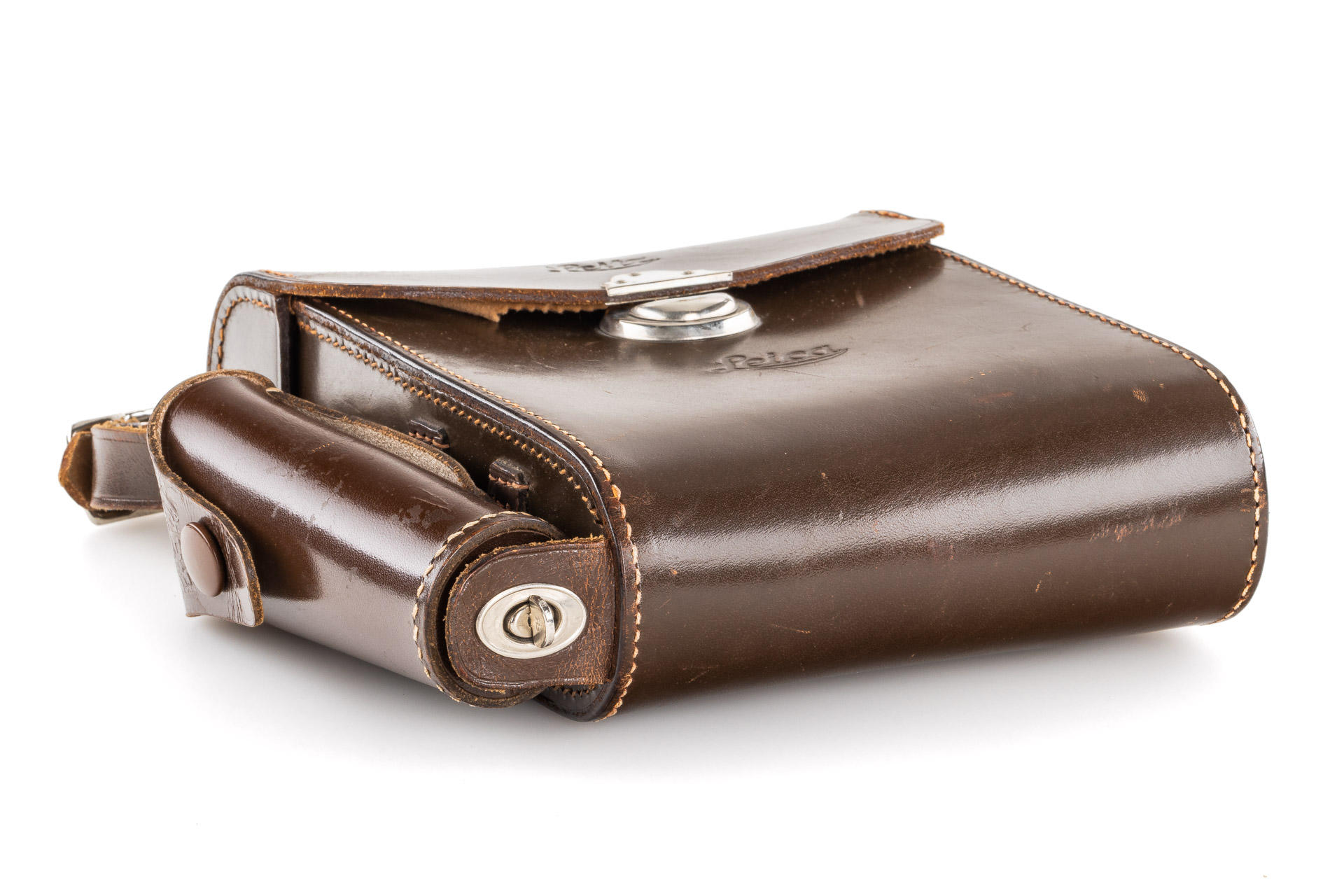very rare case for early Leica with 5cm and 13.5cm lens, keepers for 3 filters, rangefinder and film container, in near mint condition