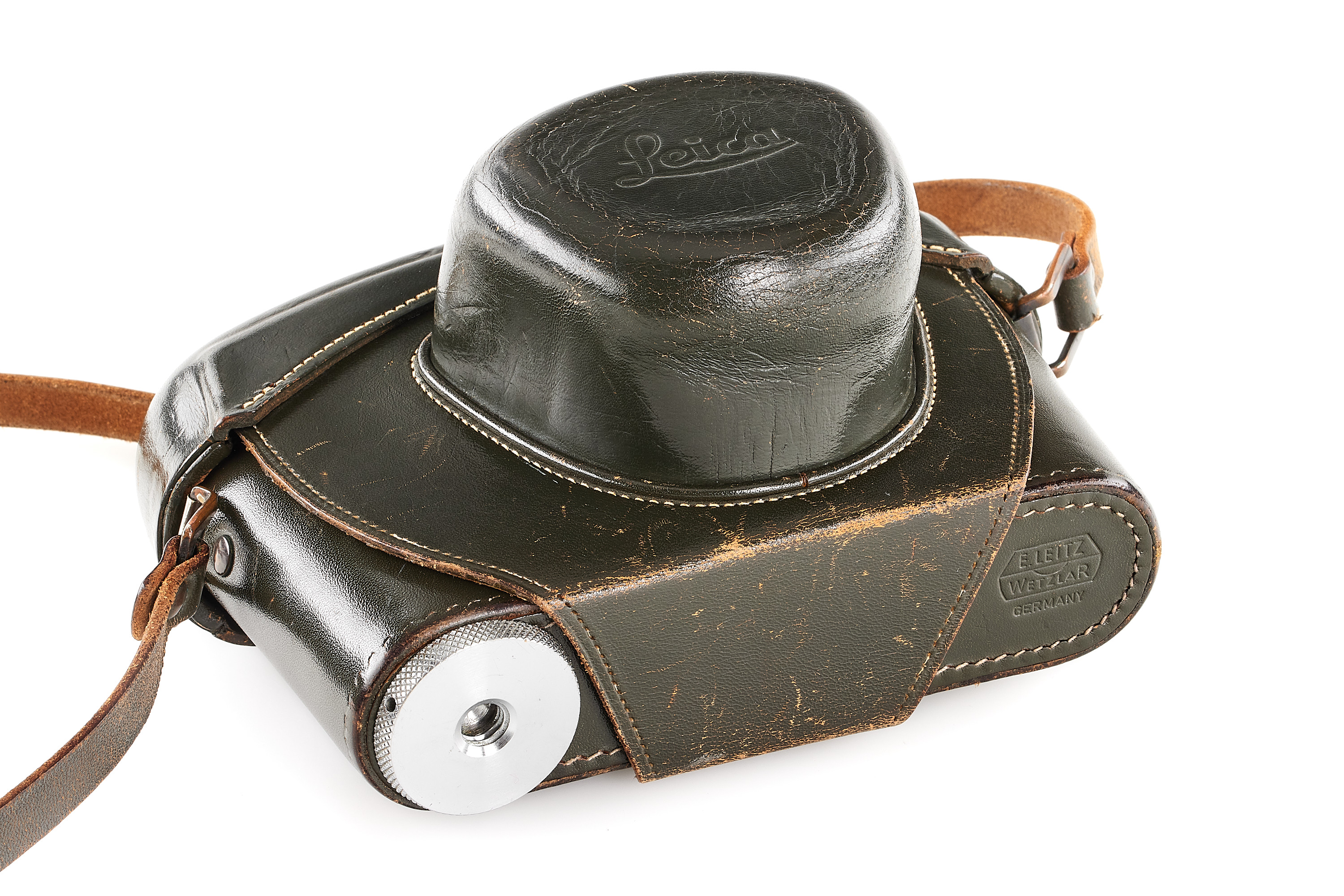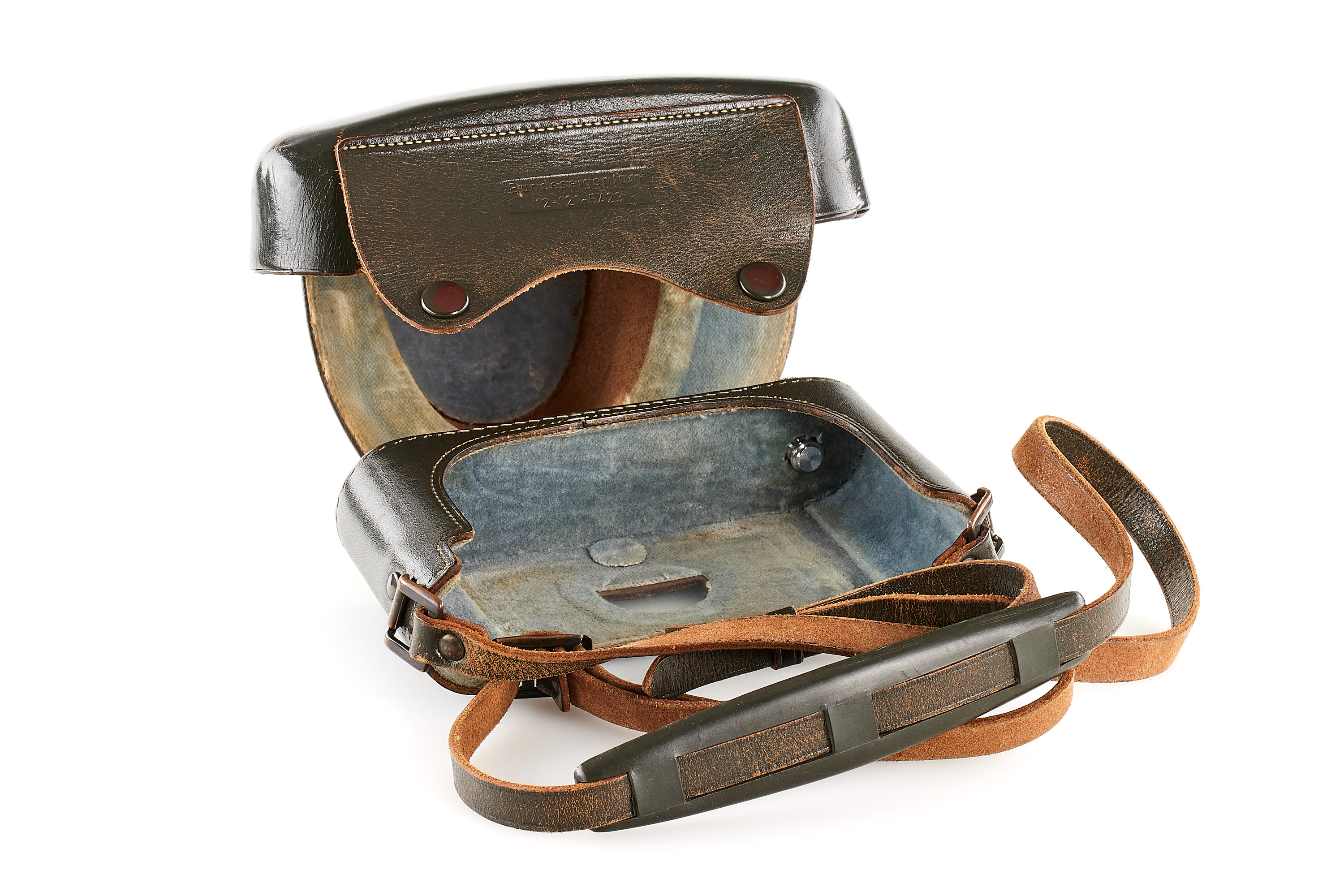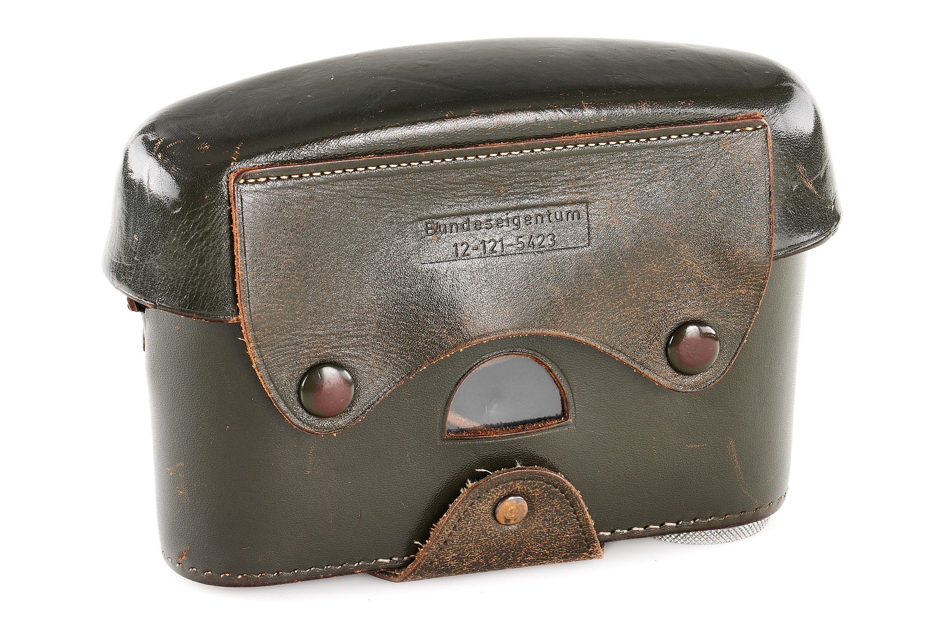 A very rare olive-green ever-ready case for the M3 and M1 cameras made for the German Army, in very good condition, stamped on the back 'Bundeseigentum'.