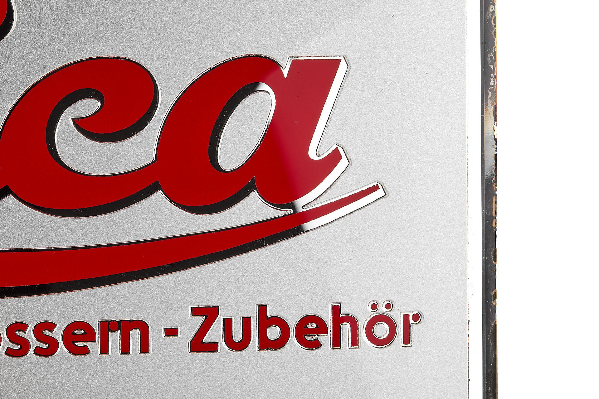 classic German Leica display stand (can also be hang up with the attached chain), 28x19cm, in good condition, slight corrosion around the edges