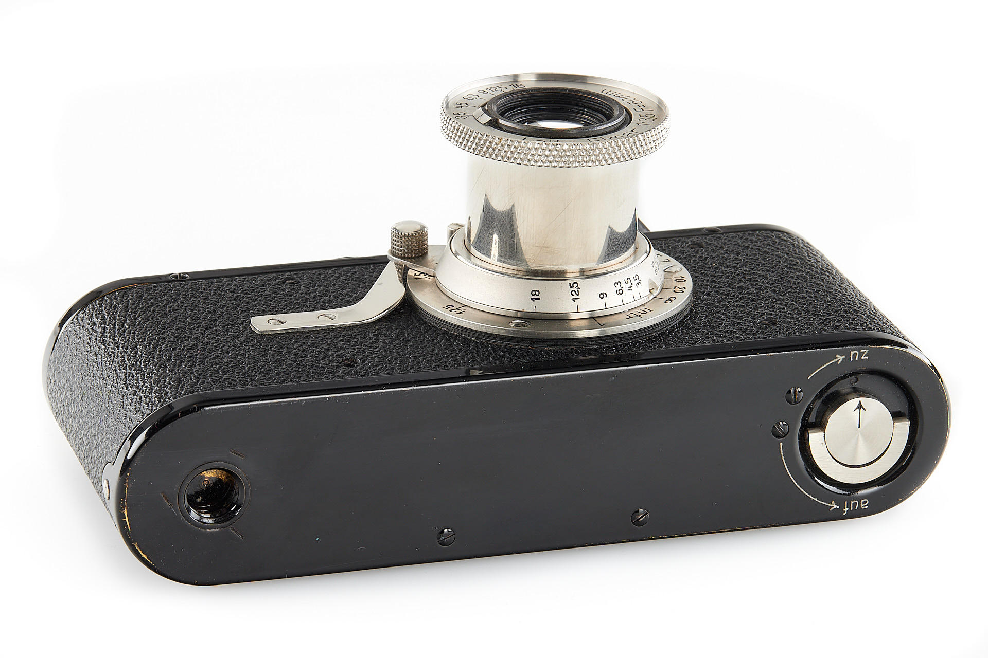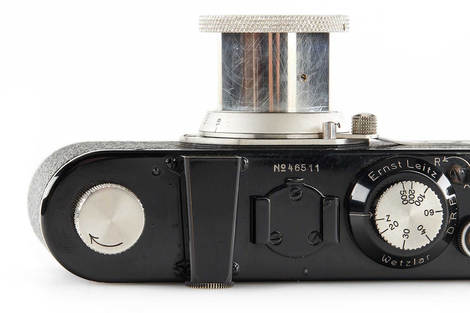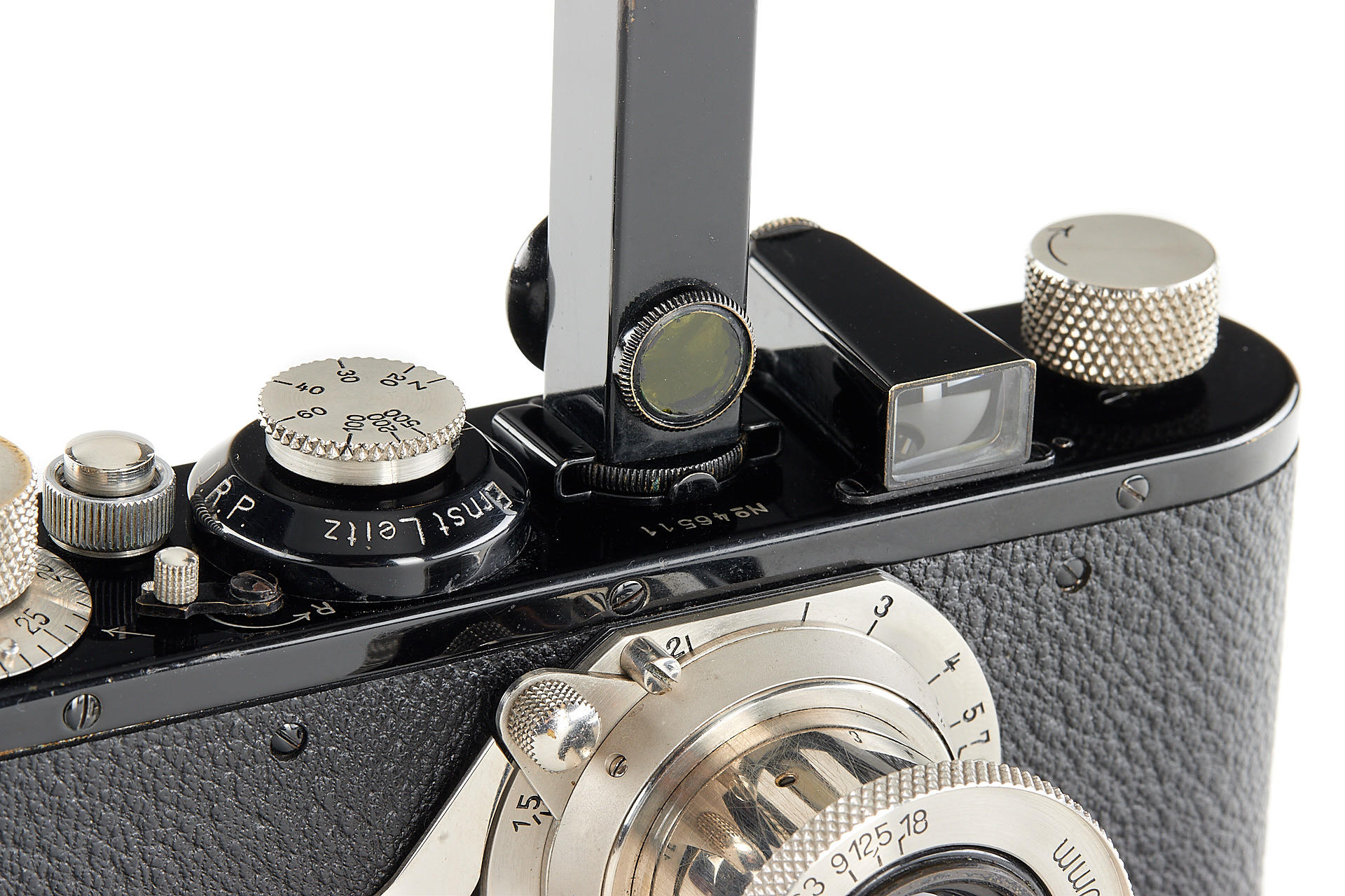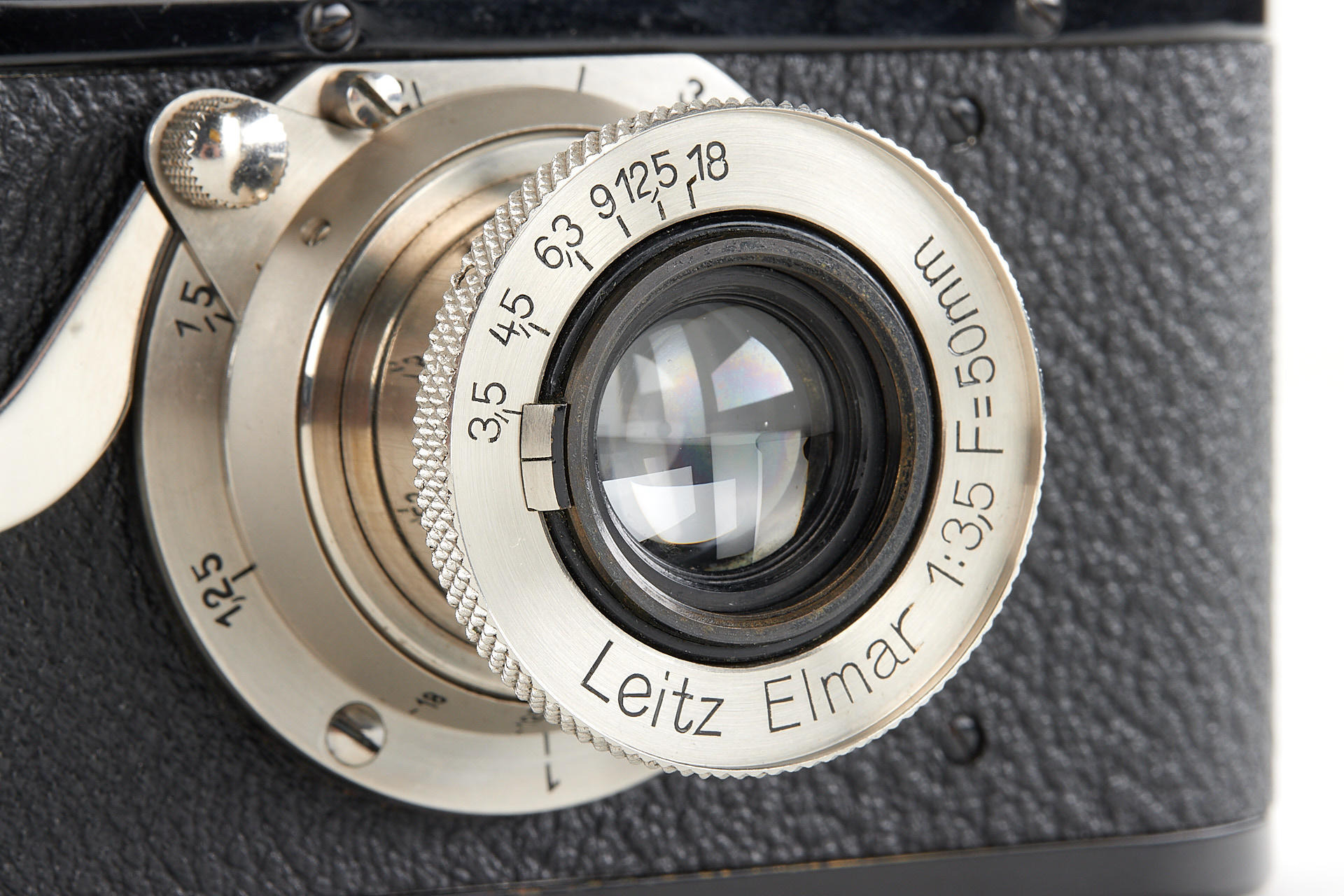 beautiful Leica I Mod. A with only minimal signs of use, with matching ETRIN outfit case, double cassette box, lens cap, FODIS rangefinder (cond. B+), red maker's box for the outfit (different number), German instructions from 1930 (front page glued)