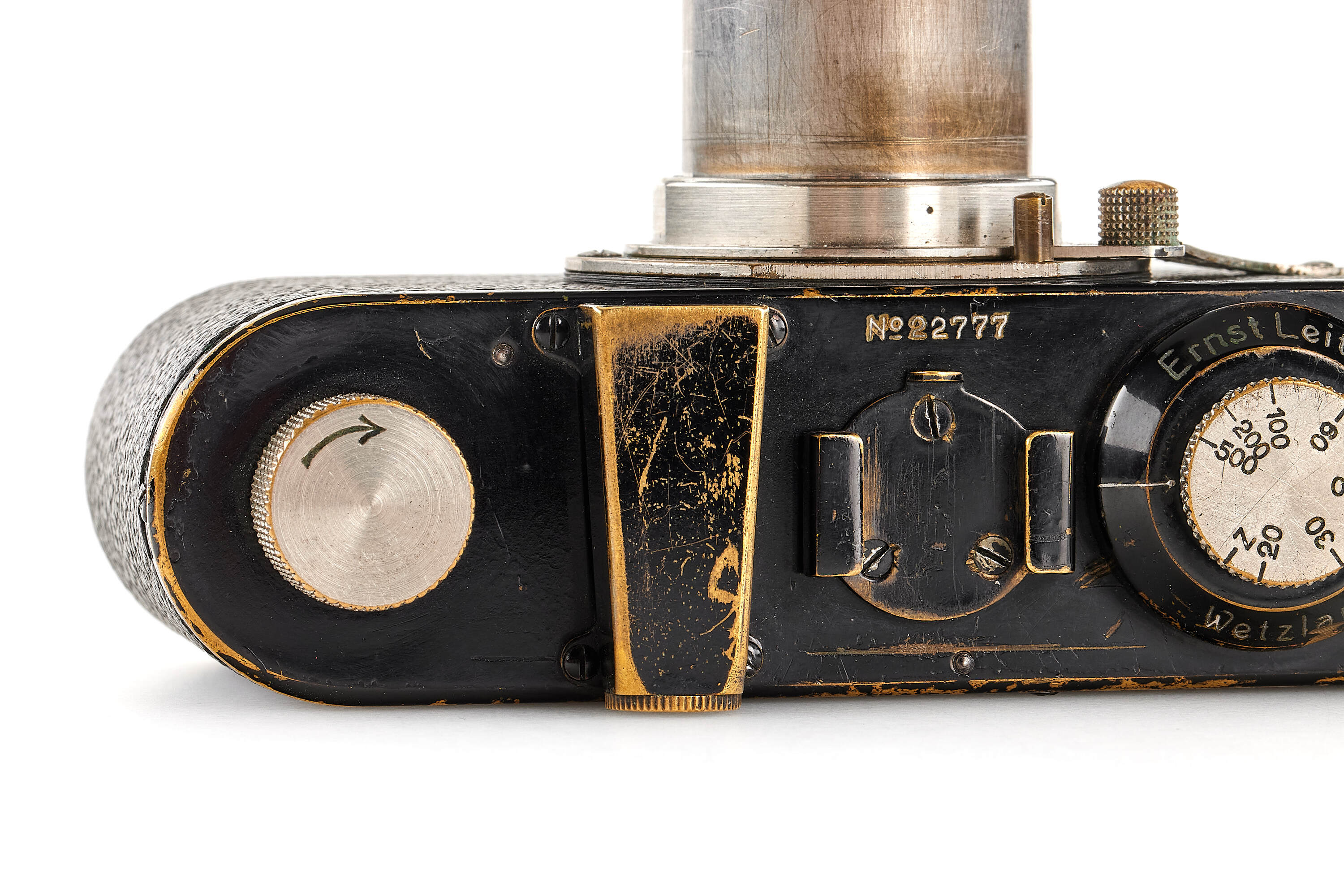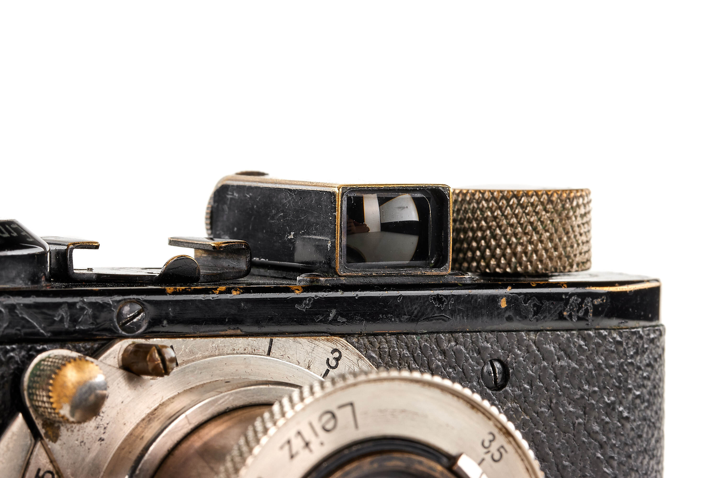 Nice 6th version (see von Einem 'Die 10 Varianten der klassischen Leica I A mit Elmar 1:3.5 F=50mm') in good condition, meter scale, delivered on 23.07.1930 to Prague, optics showing some cleaning marks and a few flakes, some hand engravings can be seen on the focus scale and in the black paint finish.