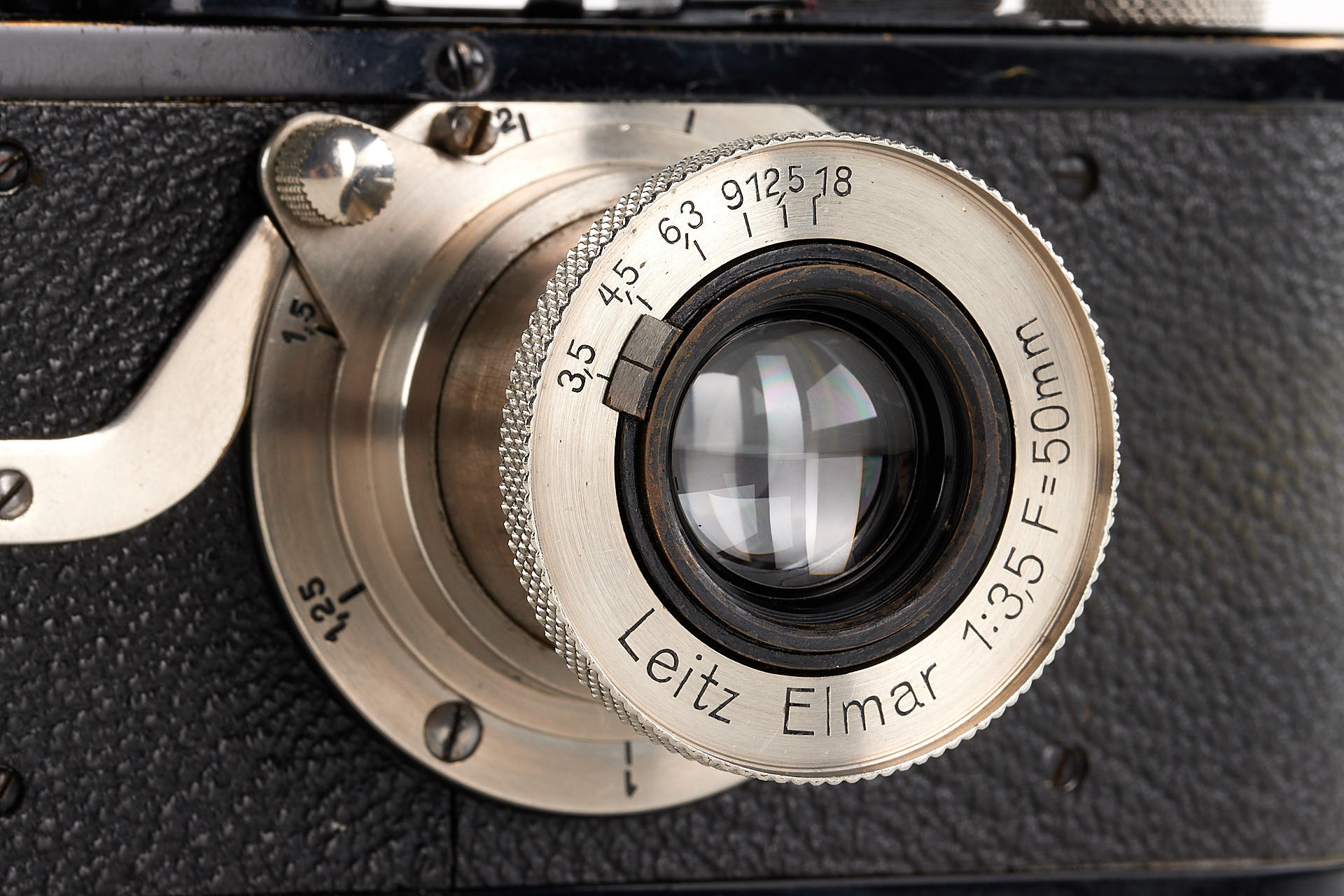 beautiful 5th version (see von Einem 'Die 10 Varianten der klassischen Leica I A mit Elmar 1:3.5 F=50mm') in original condition and working order, good shutter curtains, lenses only showing few and light cleaning marks, with black painted cap