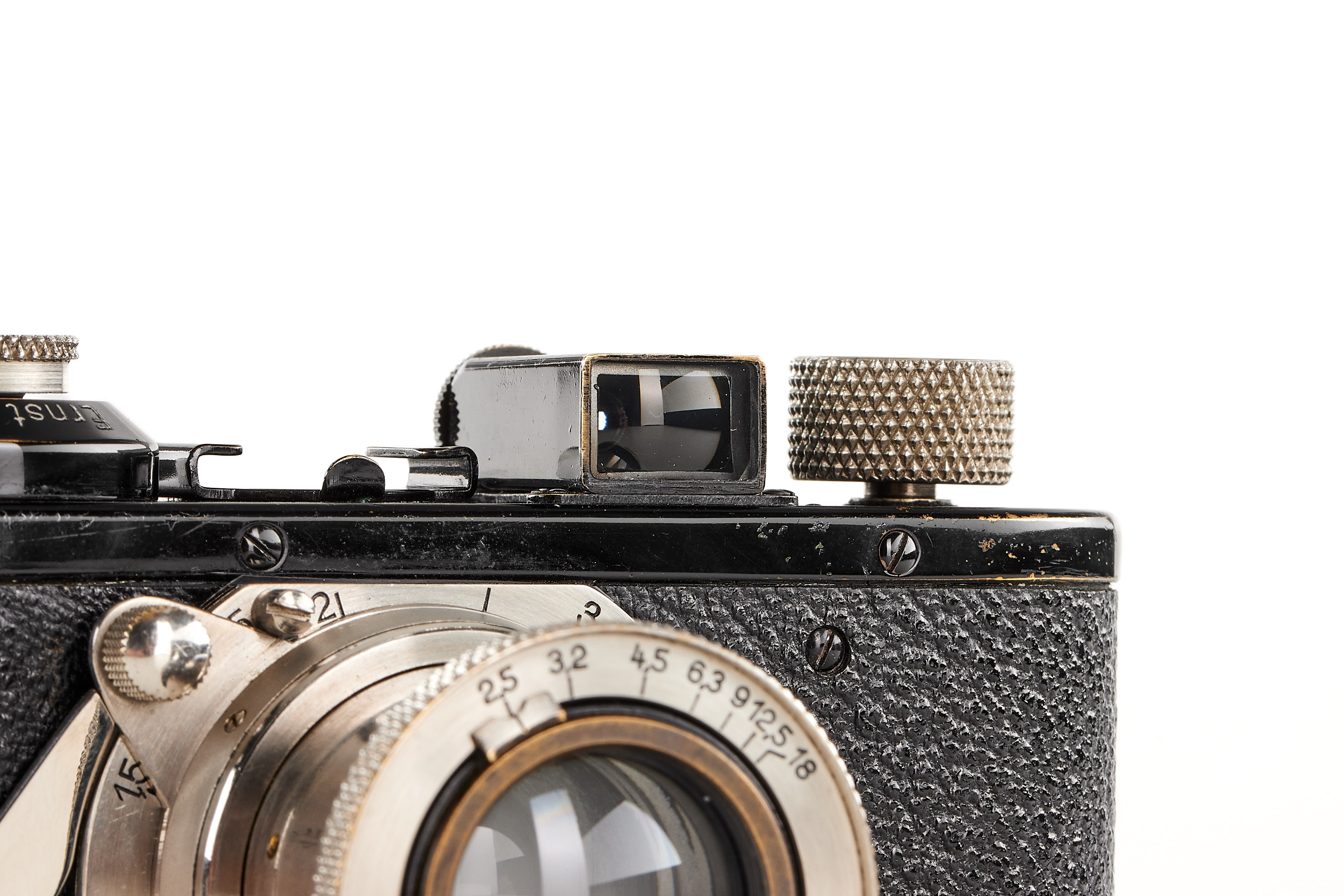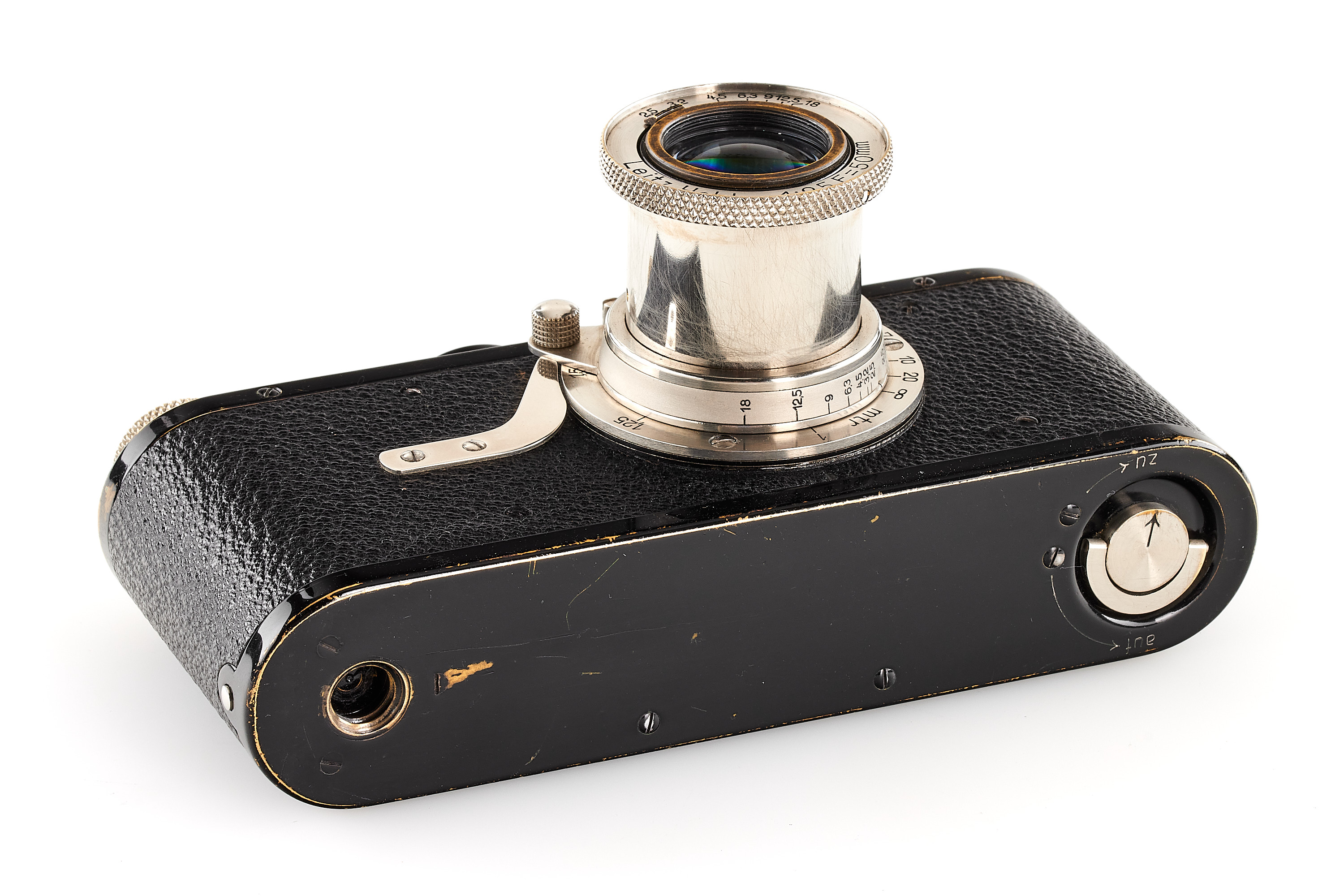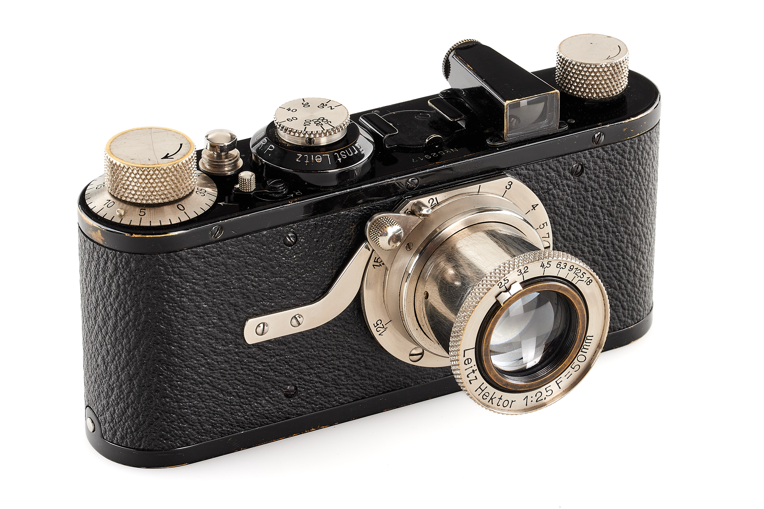 An original Leica I Mod. A with Hektor lens, in excellent condition and working order, delivered on 26.11.1930 to Vienna. The set includes a lens cap, an ETRIN case, two cassettes, FODIS rangefinder no.19851, German instructions from 1930, and a maroon maker's box.