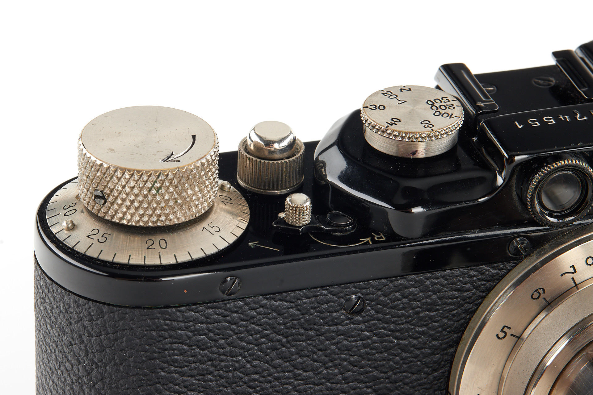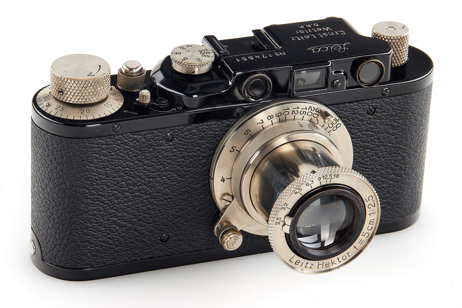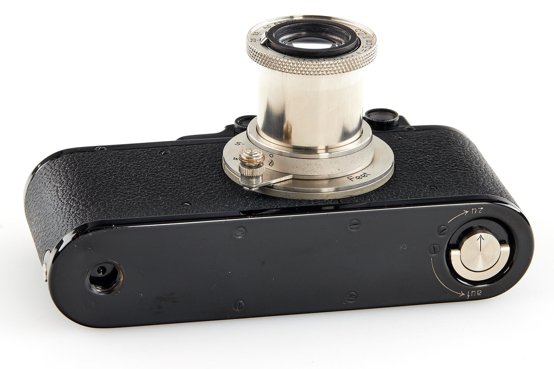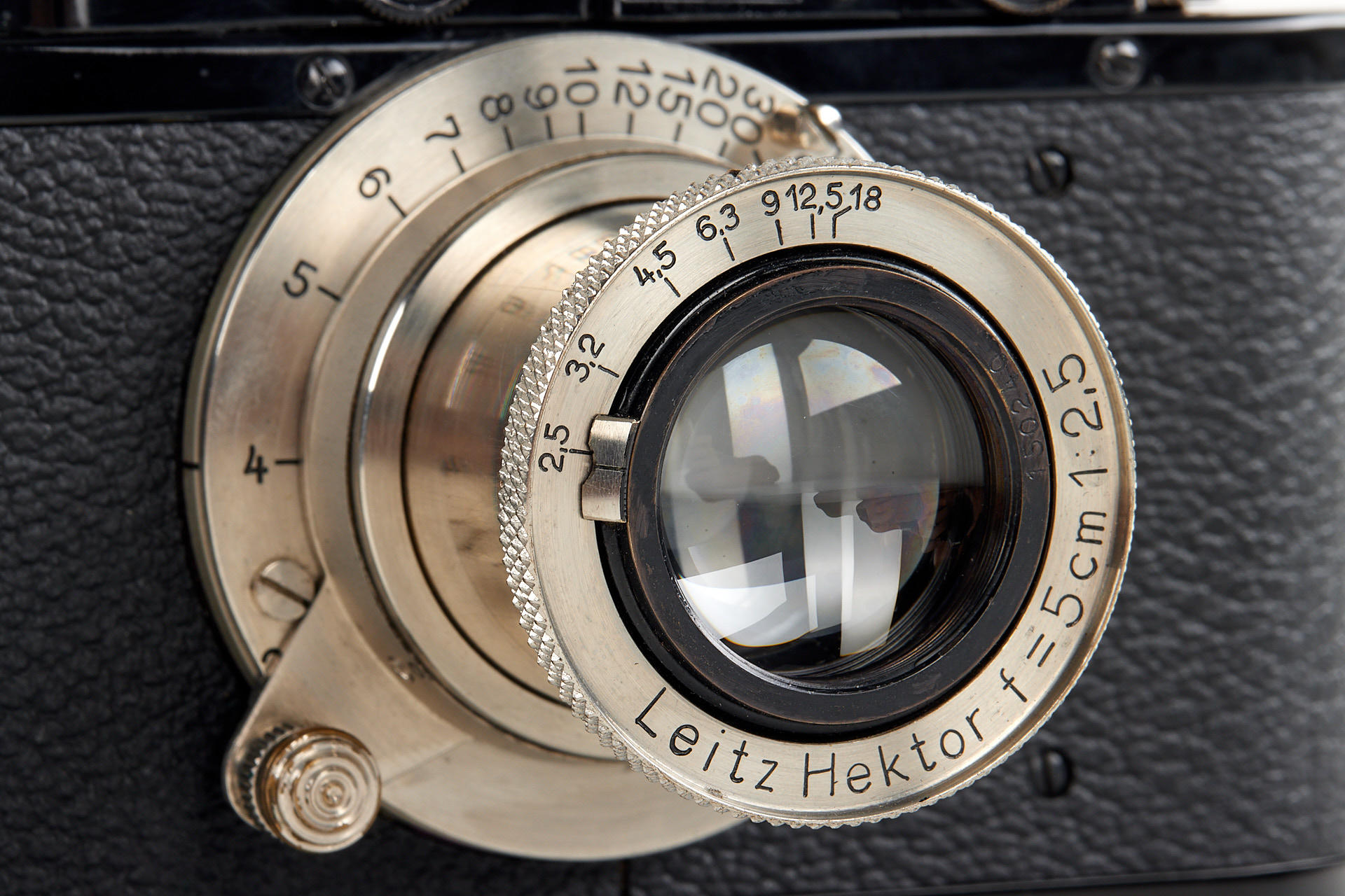 Body in beautiful, near mint condition and in good working order, with nickel Hektor 2.5/5cm no.150240 (good optics with only minimal cleaning marks), front cap and leather case
