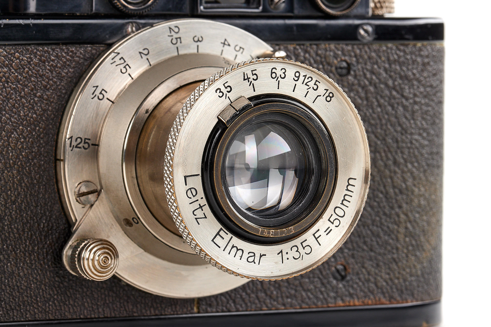 beautiful very early Leica II Mod. D from the first year of production, in almost mint condition and working order, rangefinder with good contrast, with matching nickel Elmar 3.5/5cm no.148133 (1932), good lenses only showing few minor cleaning marks and a light haze