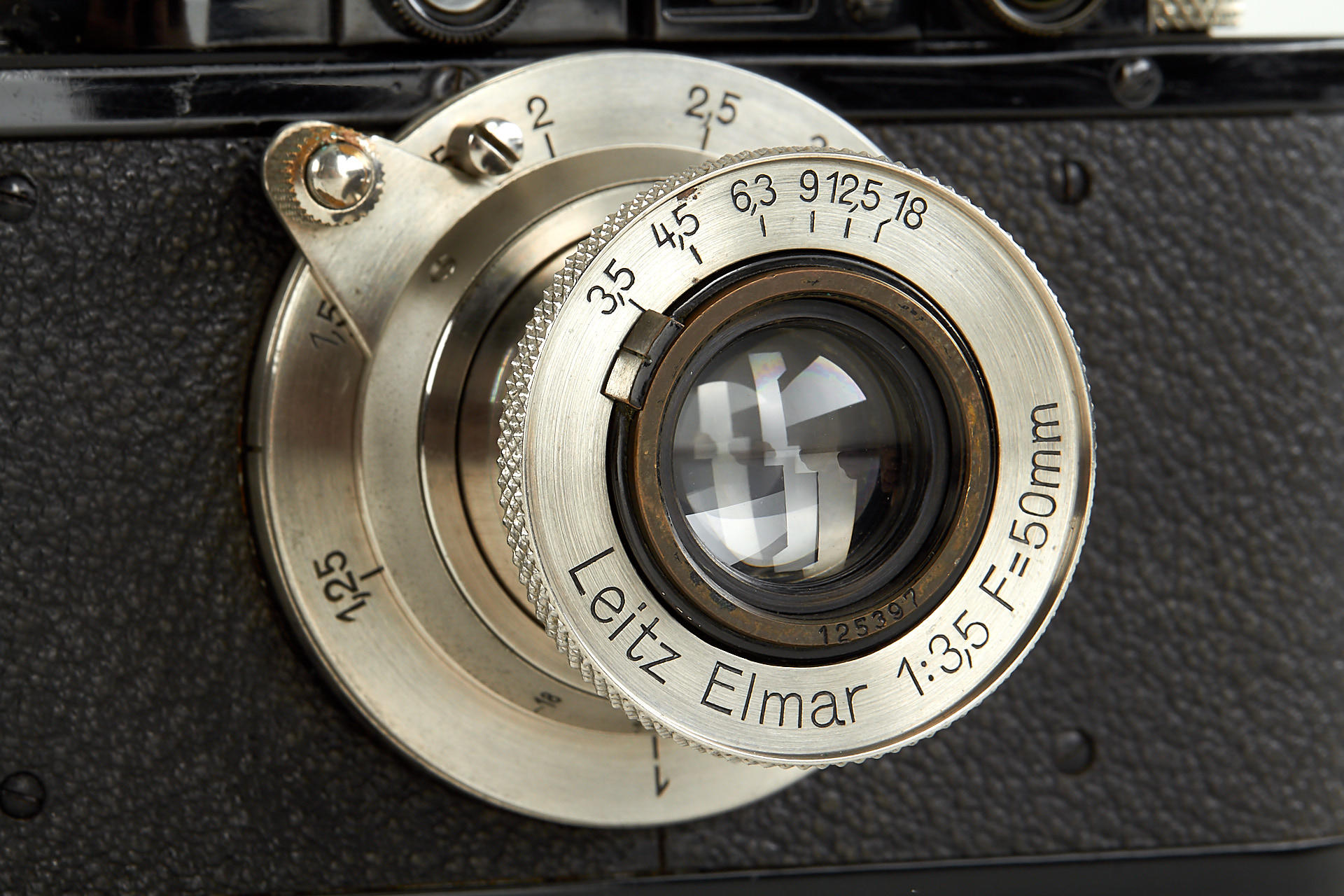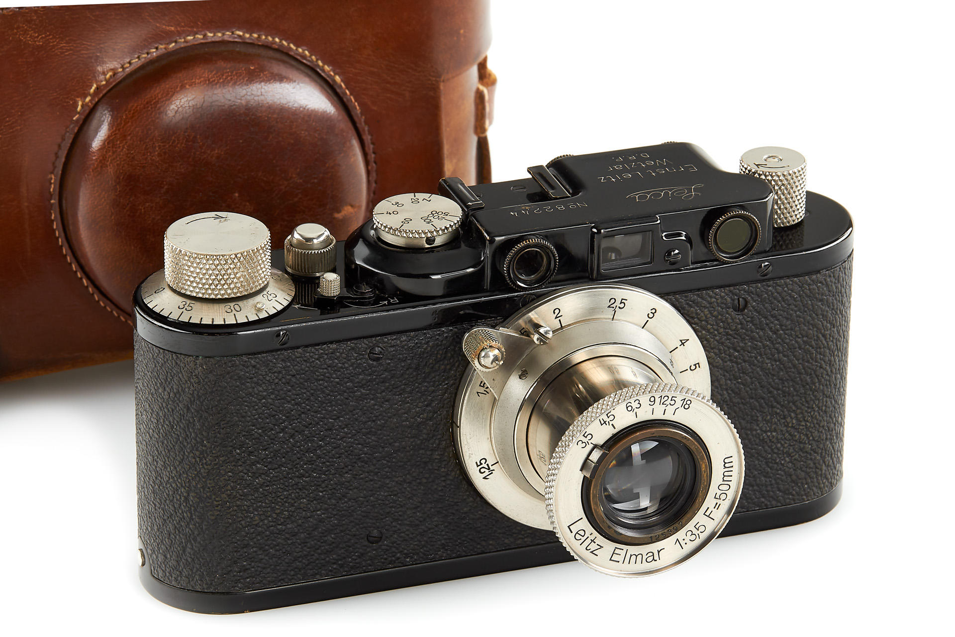 in near mint original condition and good working order with 11 o'clock nickel Elmar 3.5/50mm no.125397 (very good lenses, black painted cap), a special 'SFM' case