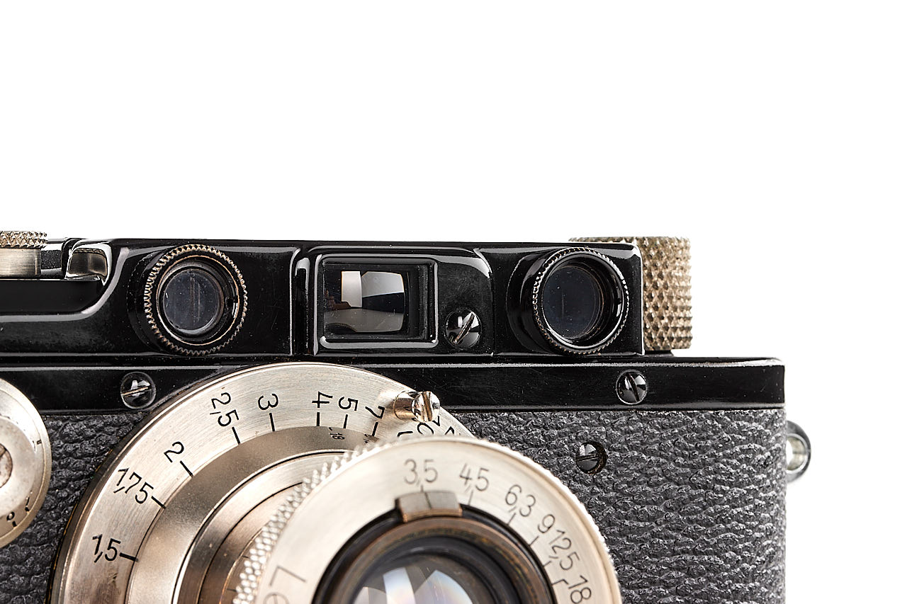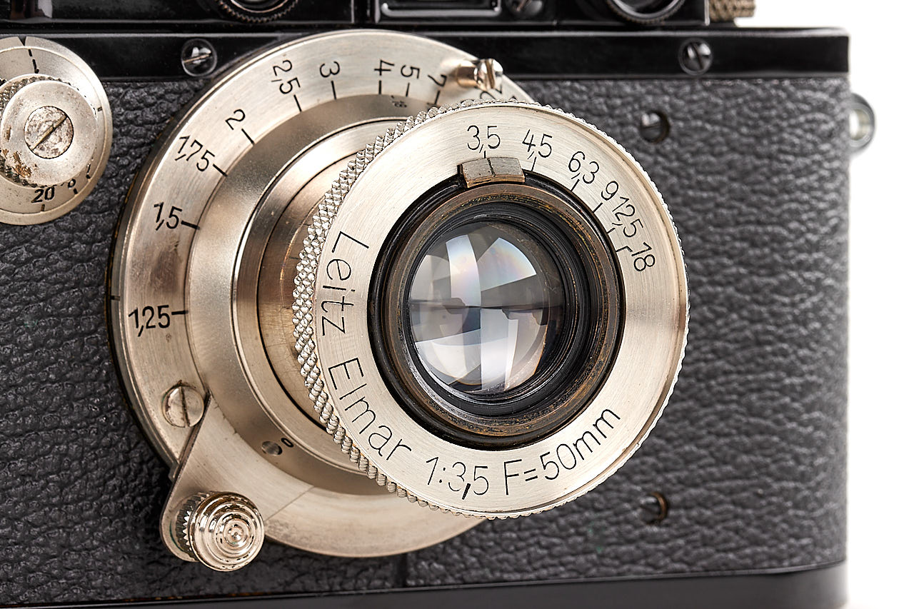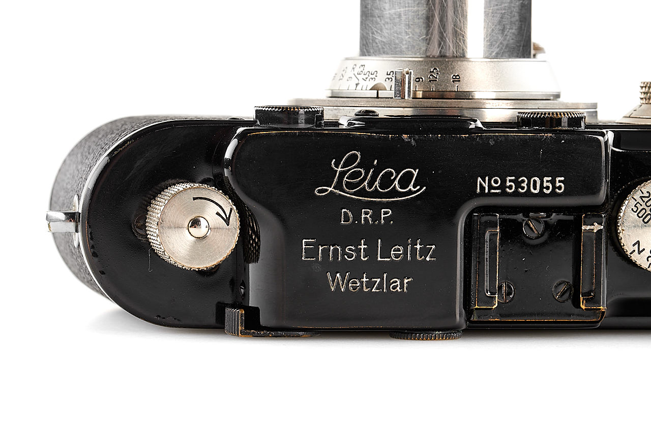 Beautiful body in almost mint condition and in working order, originally a Leica I Mod. C non-standard upgraded to III Mod. F specifications in 1938, with unnumbered standardized nickel Elmar 3.5/50mm.
