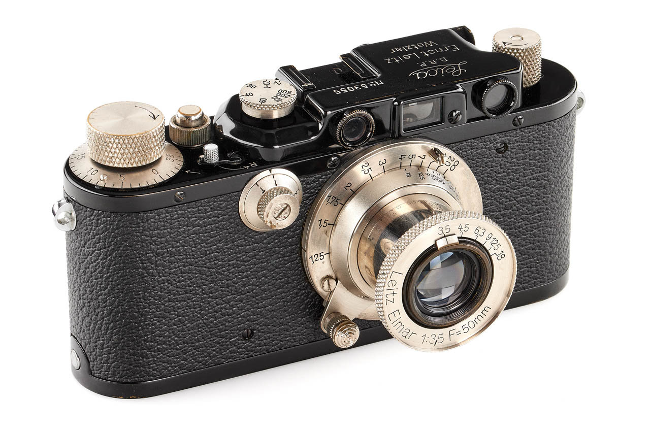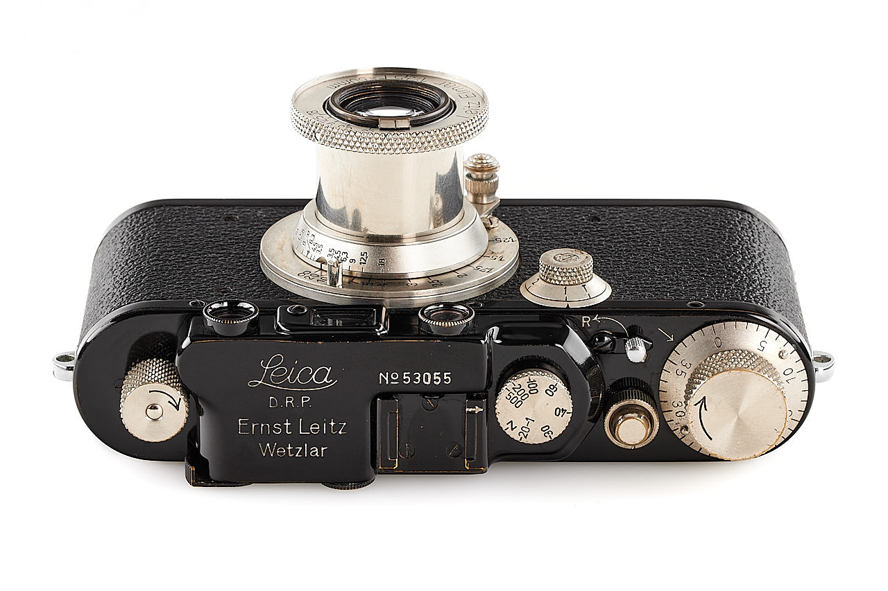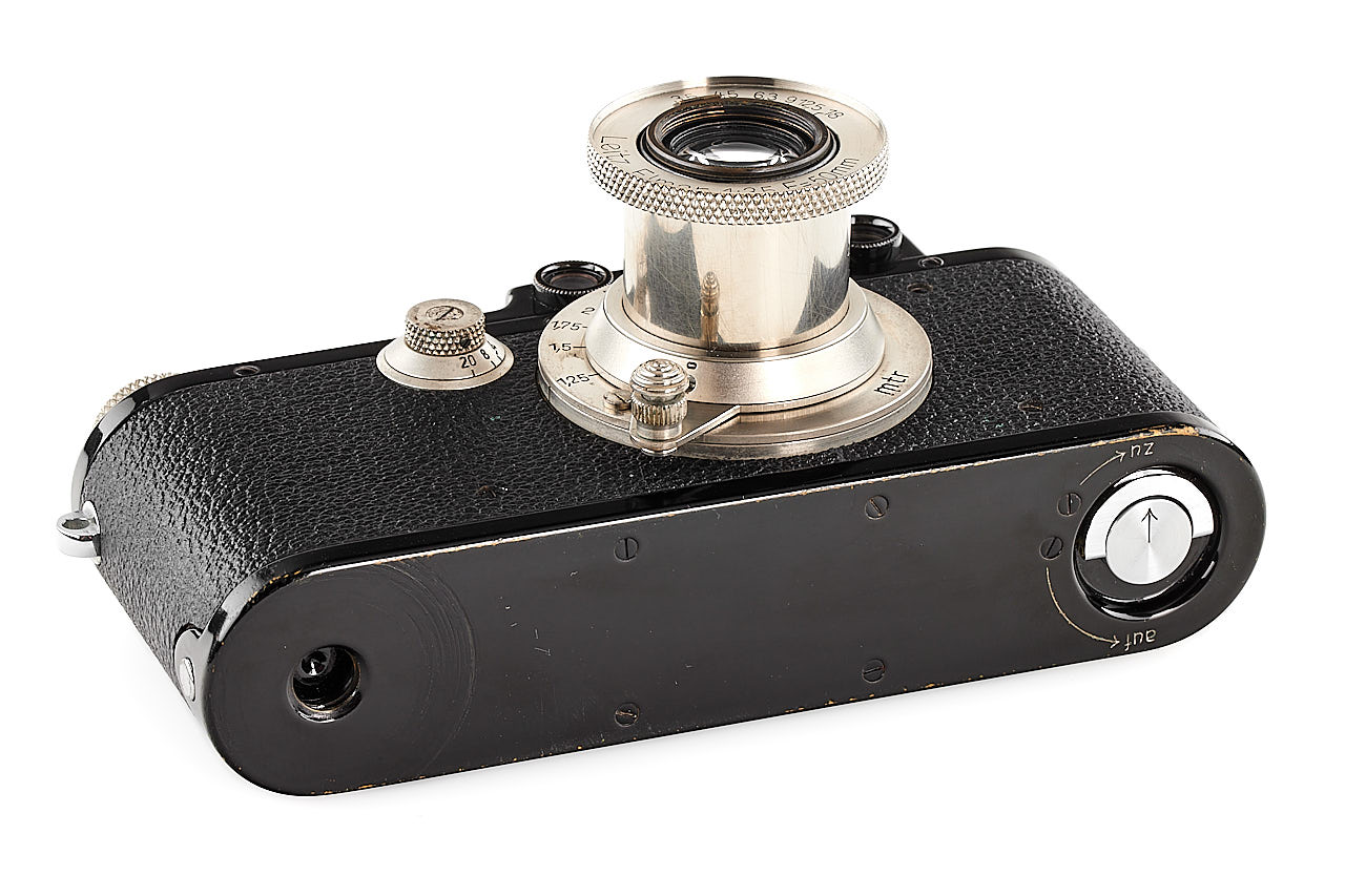 Beautiful body in almost mint condition and in working order, originally a Leica I Mod. C non-standard upgraded to III Mod. F specifications in 1938, with unnumbered standardized nickel Elmar 3.5/50mm.