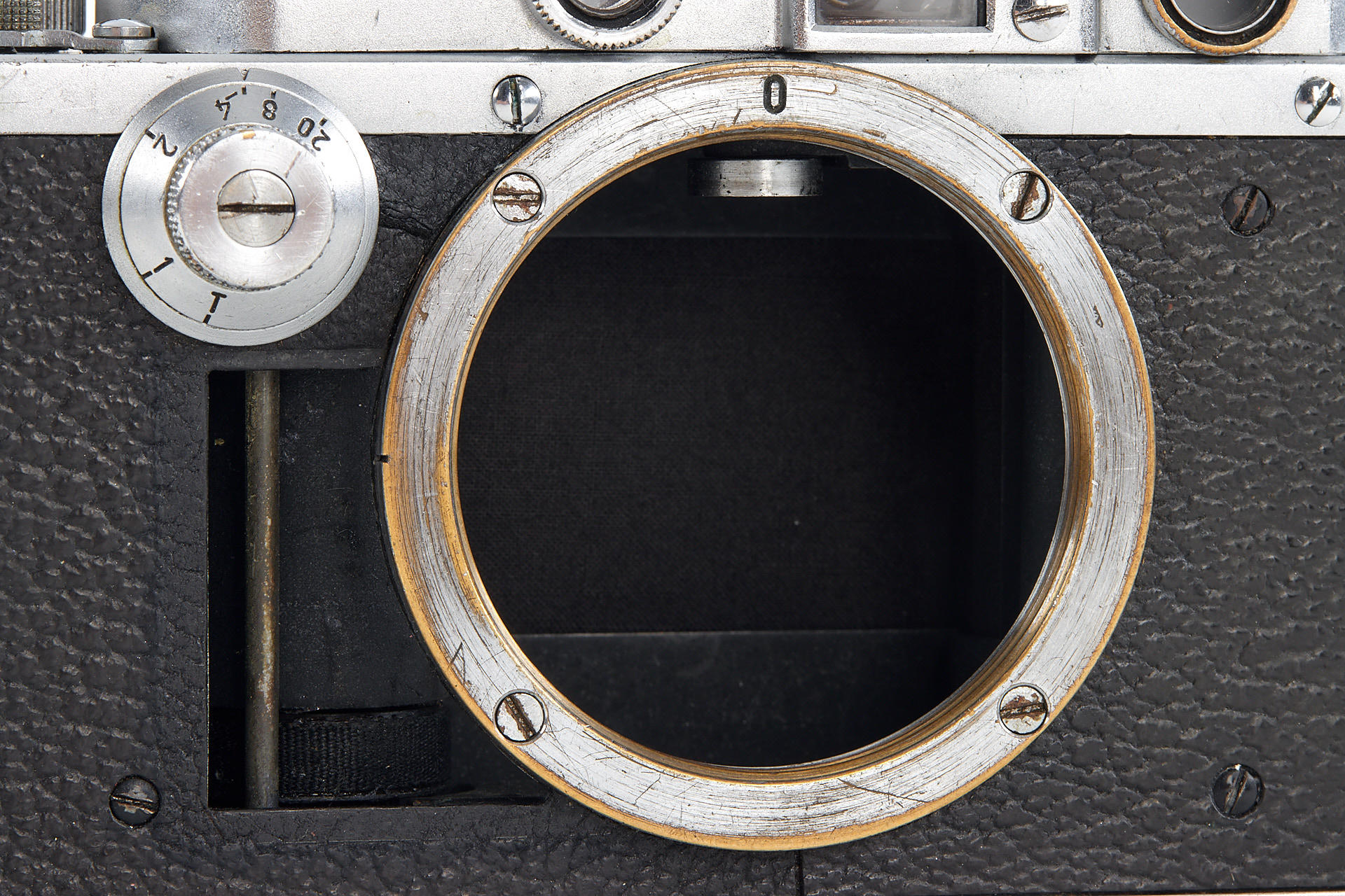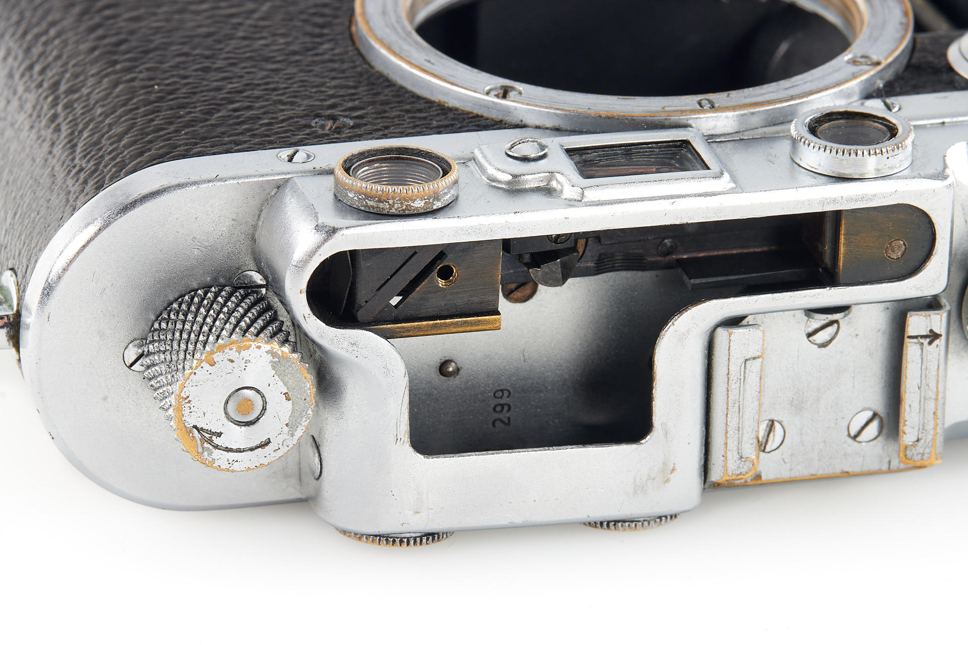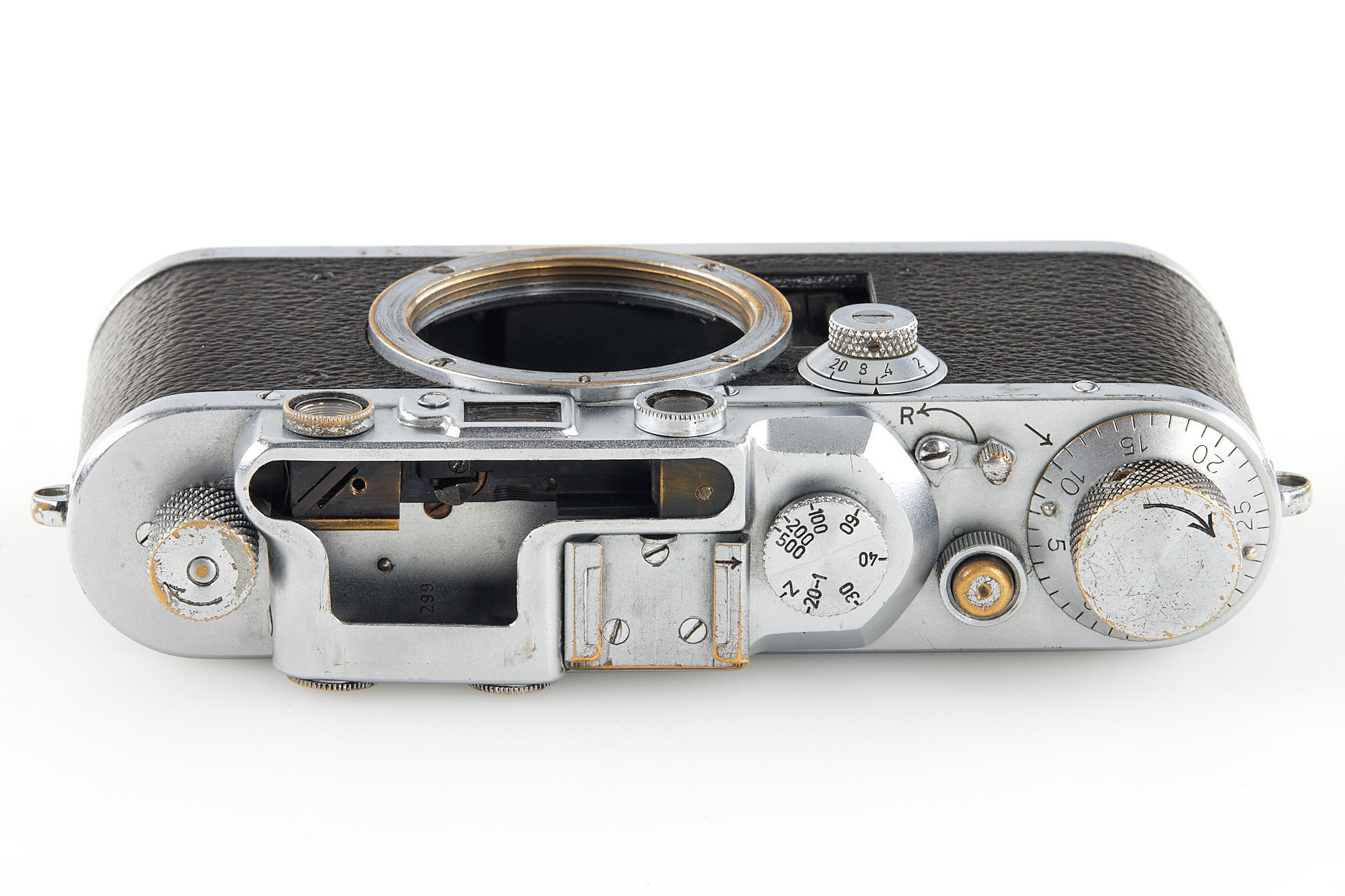 A very rare, original Leica III cut-away model, engraved on the top plate (inside of the rangefinder bay) with number '299', in very good condition and working order, an article in Vidom no.5 reveals an interesting history of this rare camera - the cut-aways have been once covered by the previous owner, to be able to use the camera for actual photography, it is now reversed to its original condition